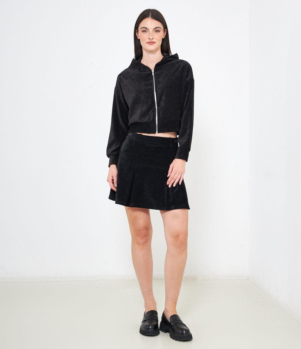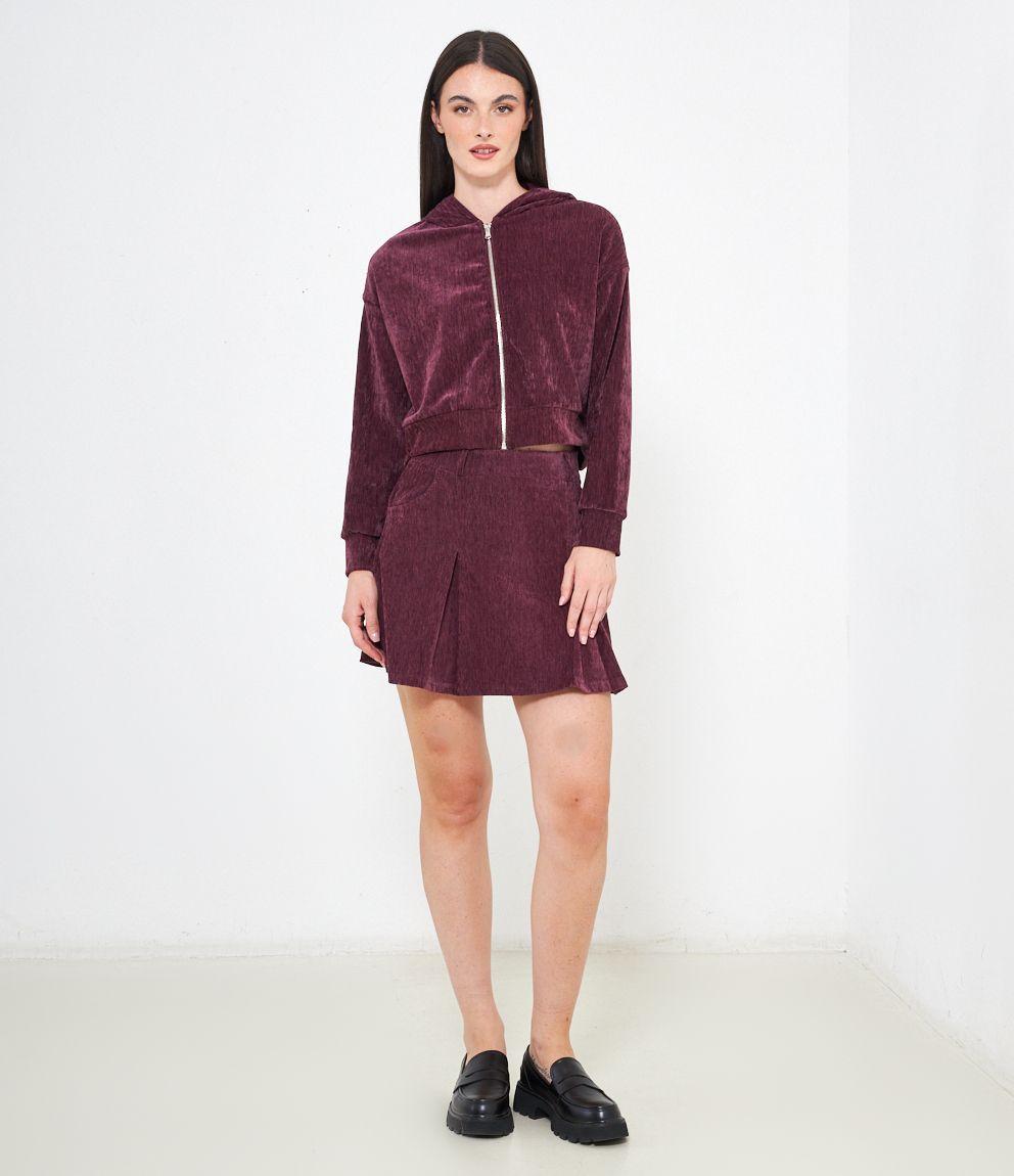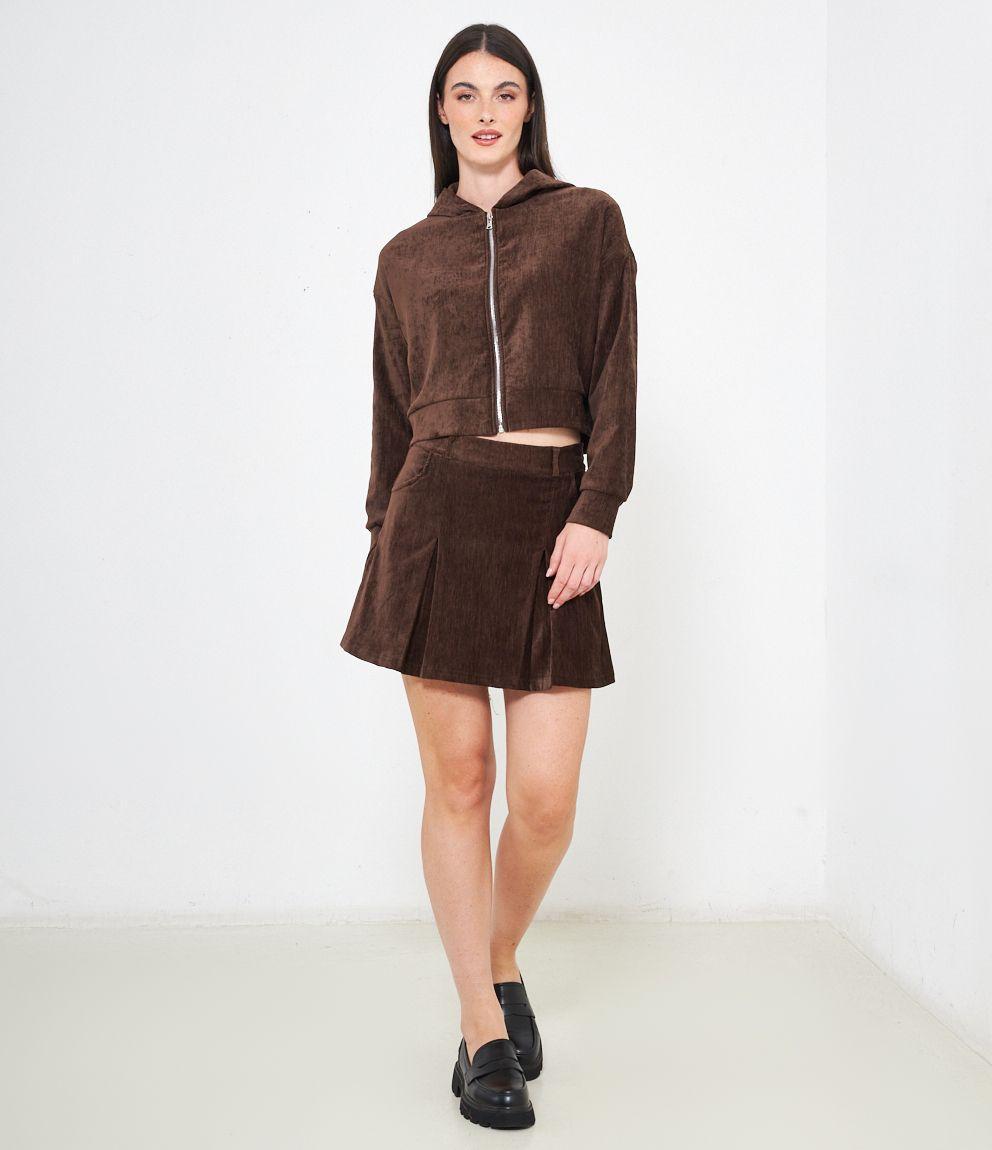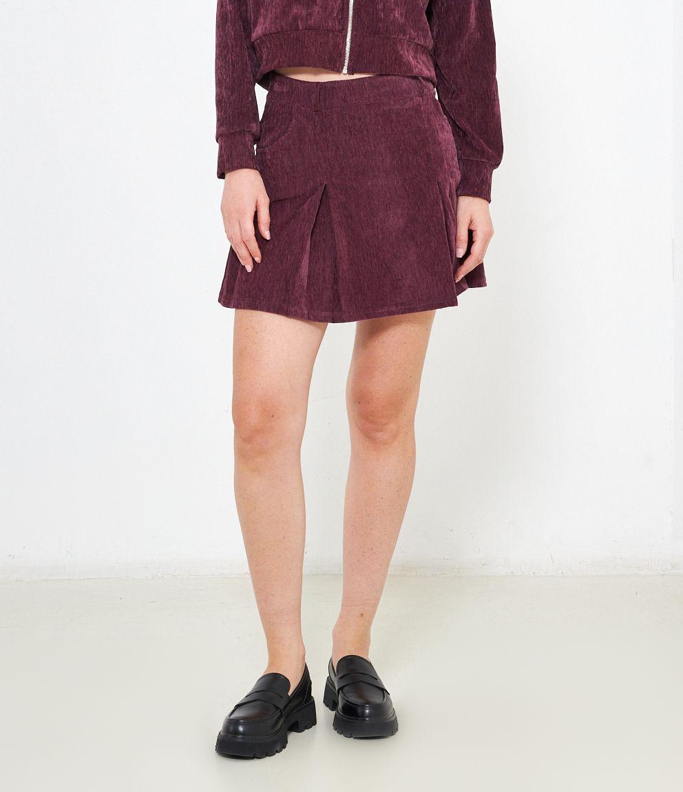 Minigonna effetto camoscio con pinces frontali e e tasche.