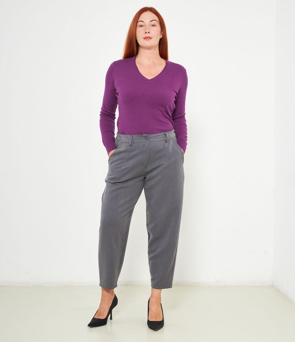 Pantaloni modello classico con tasche laterali e chiusura con zip e bottone.