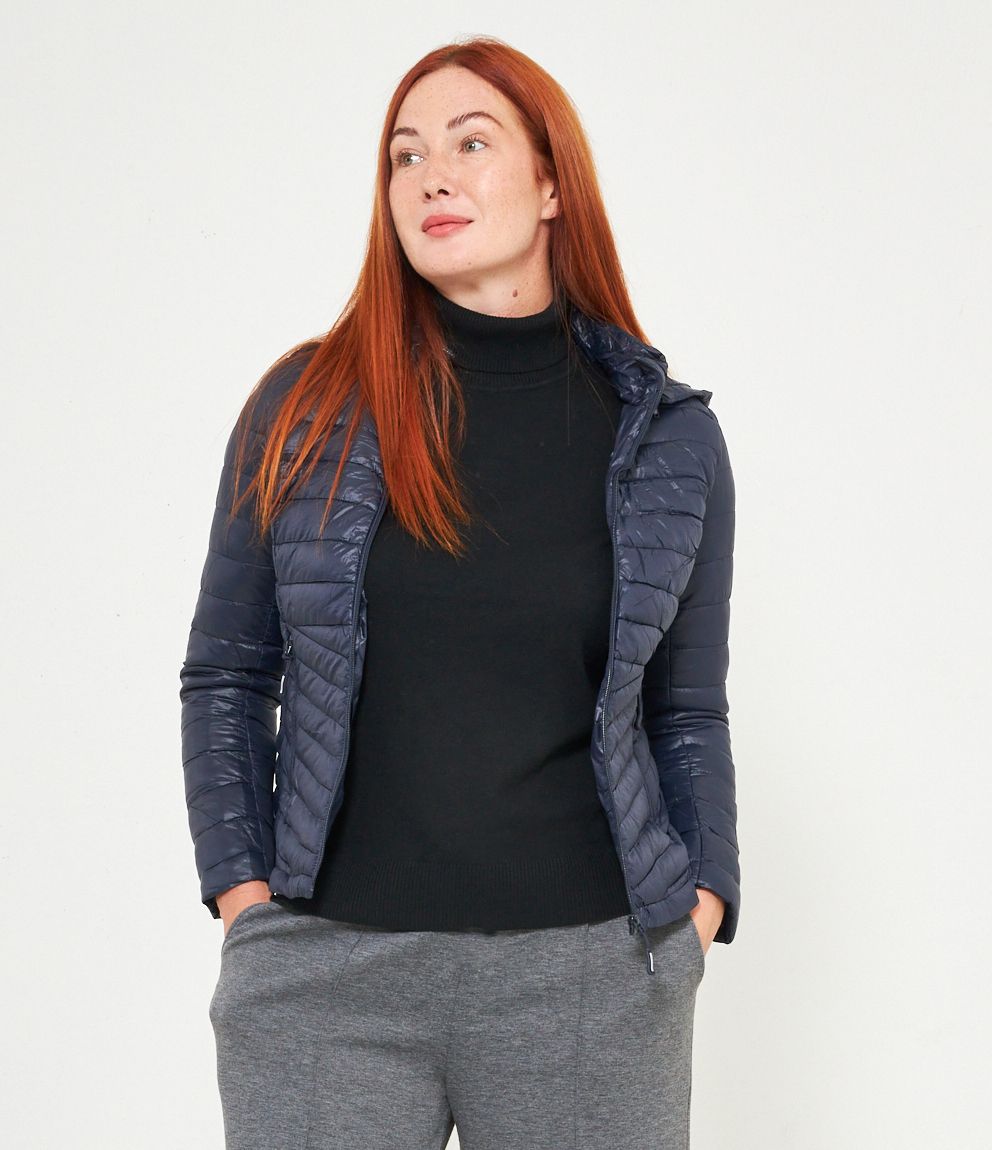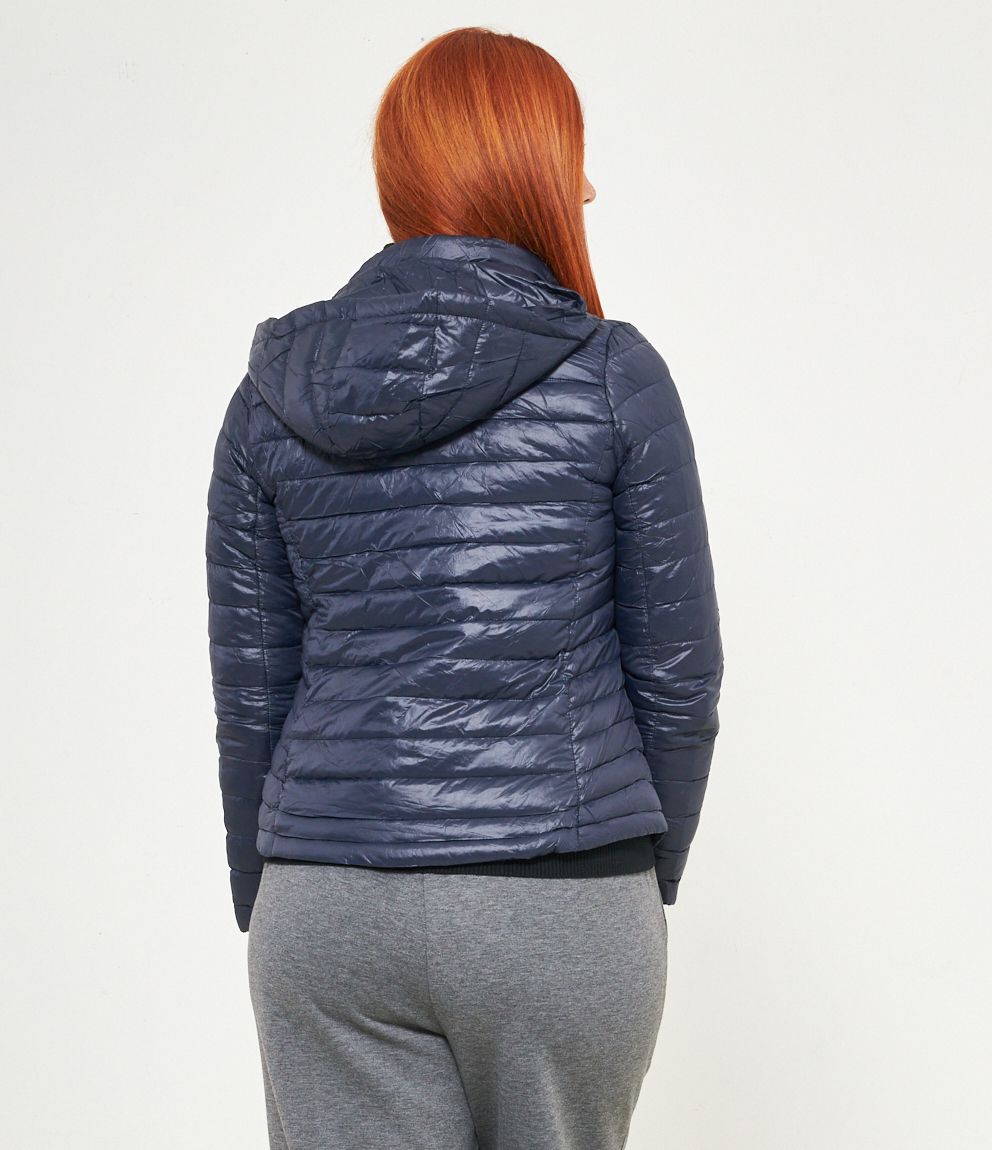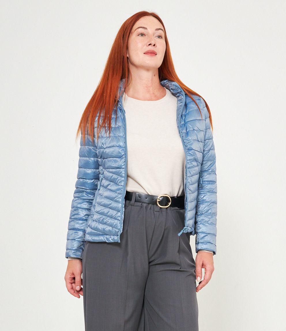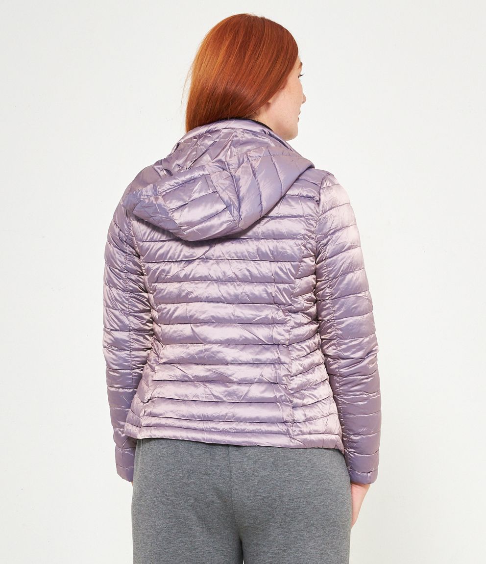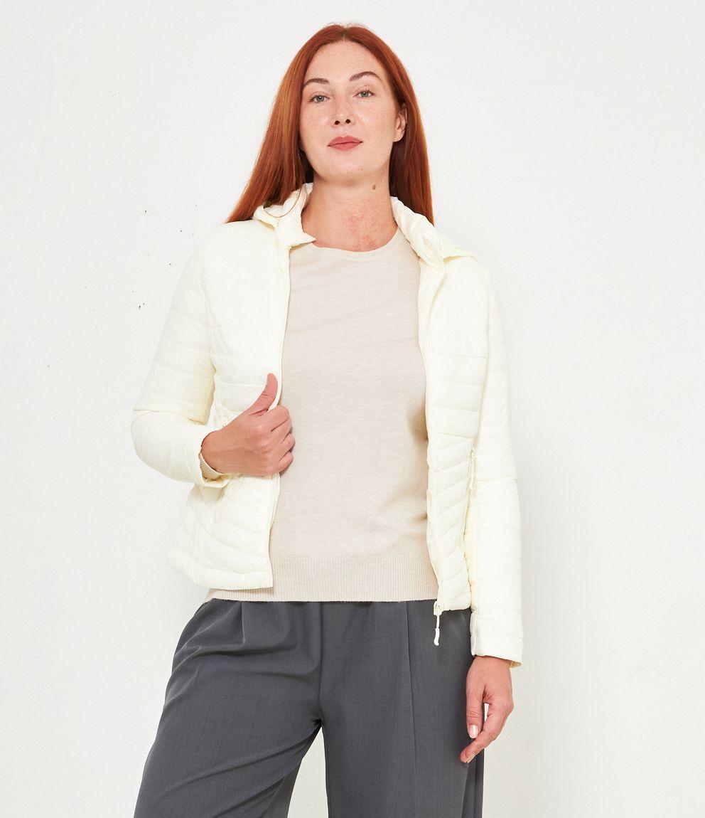 Piumino basic con cappuccio rimovibile e chiusura con zip.