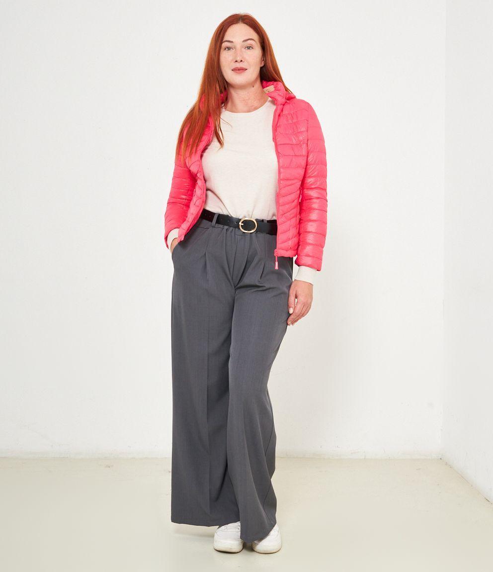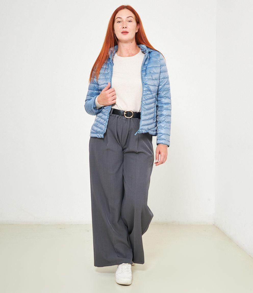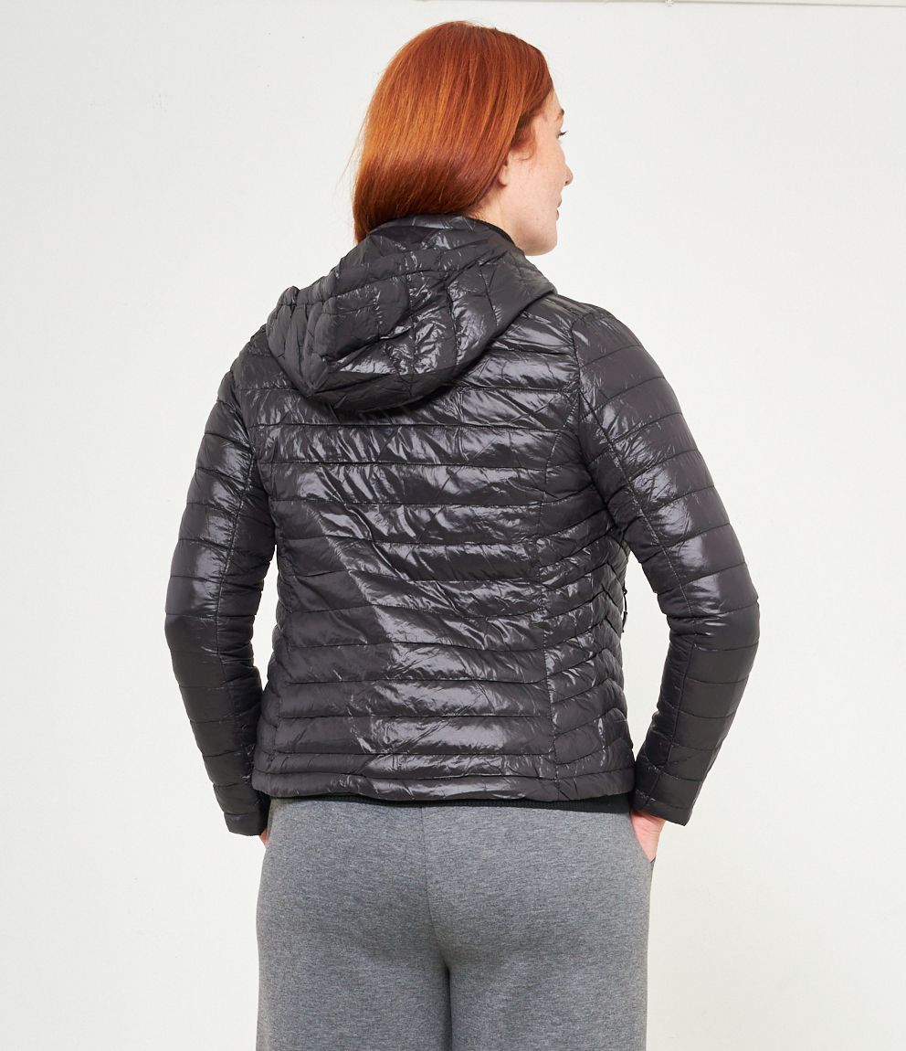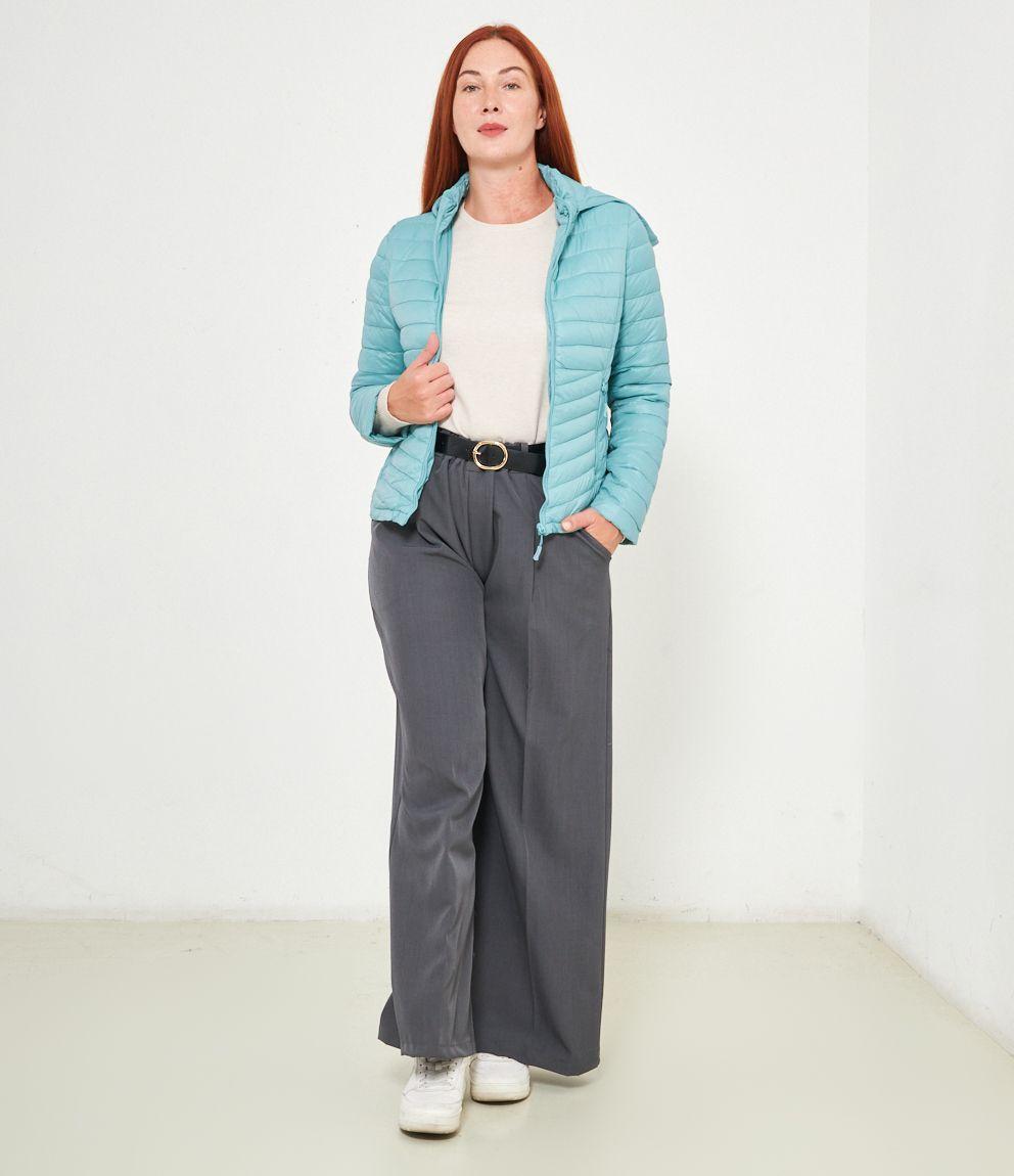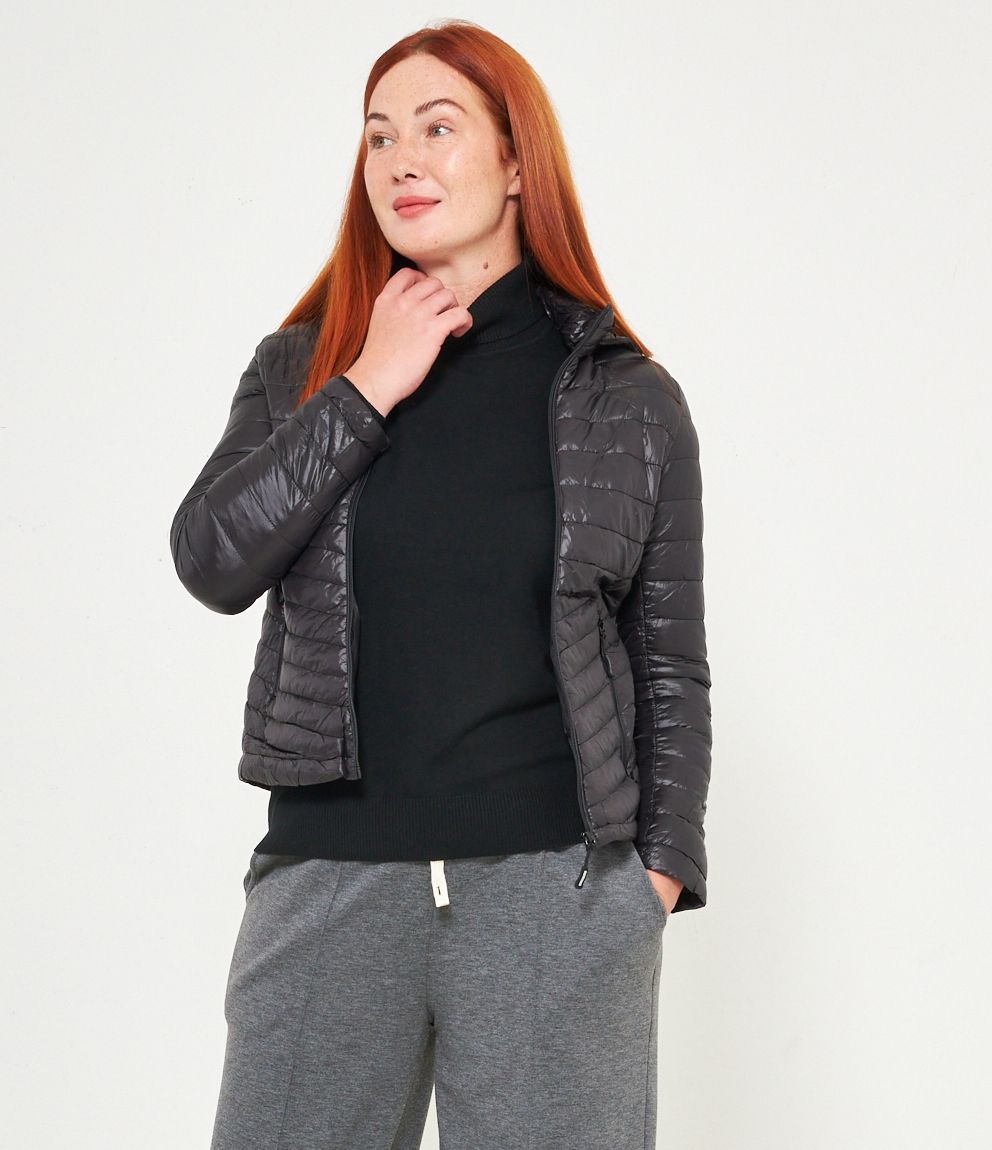 Piumino basic con cappuccio rimovibile e chiusura con zip.