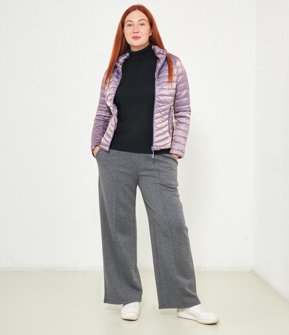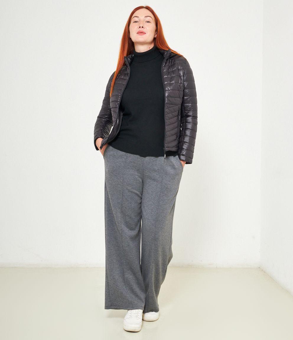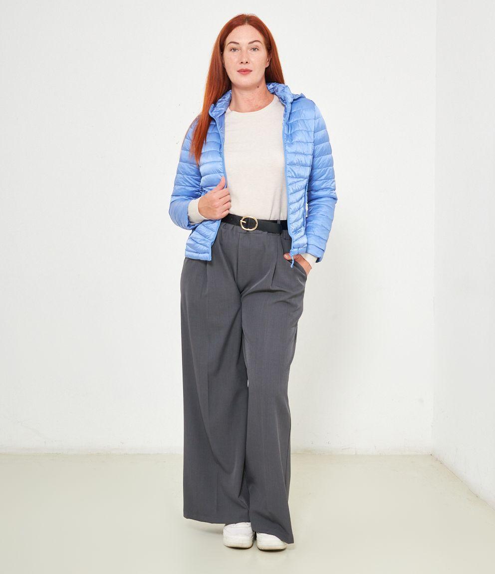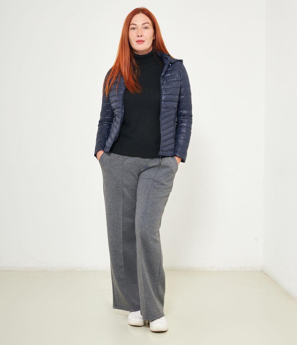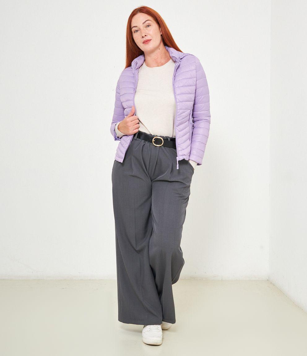 Piumino basic con cappuccio rimovibile e chiusura con zip.