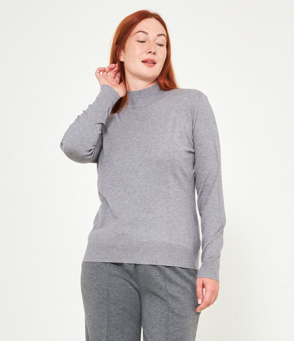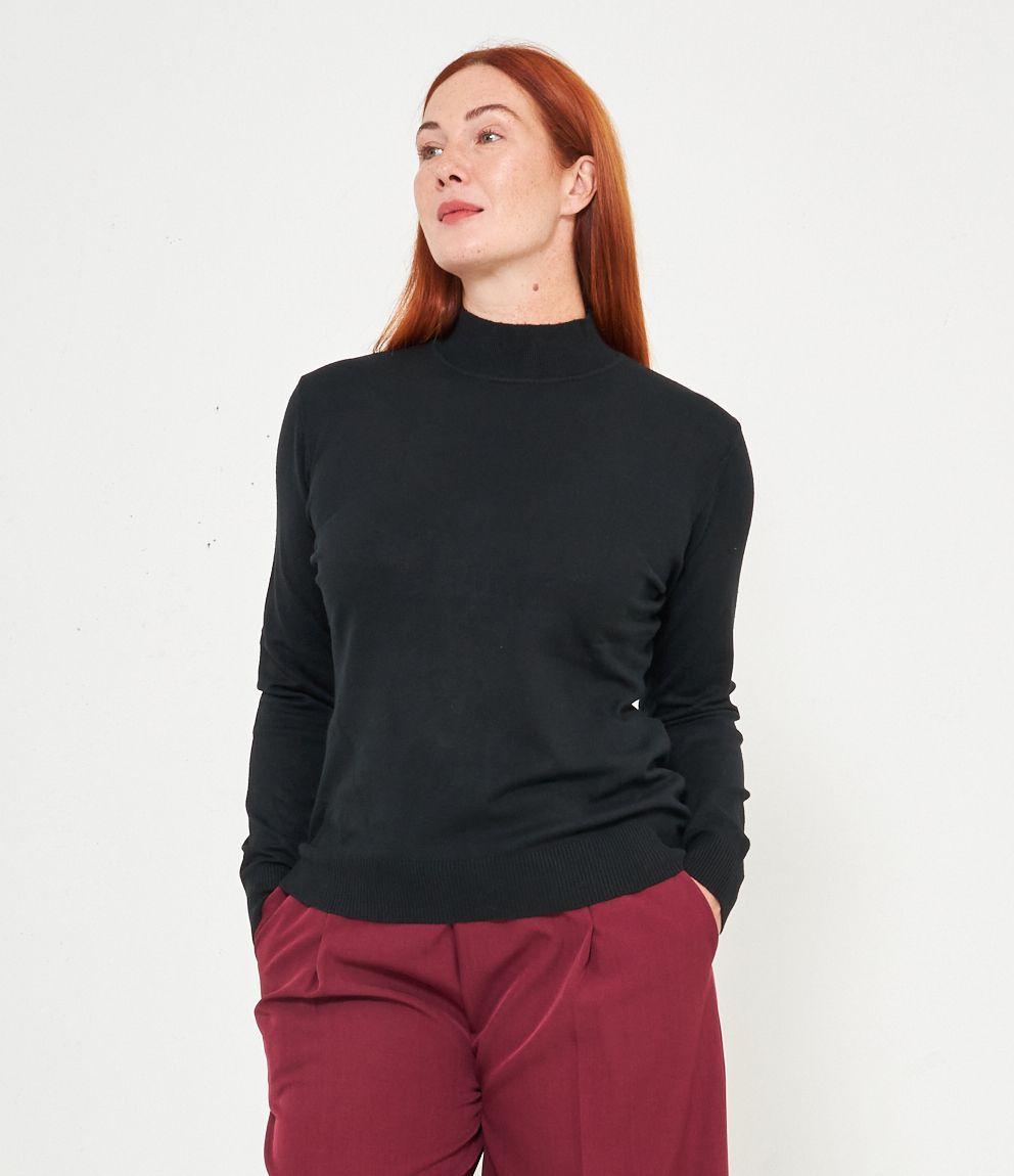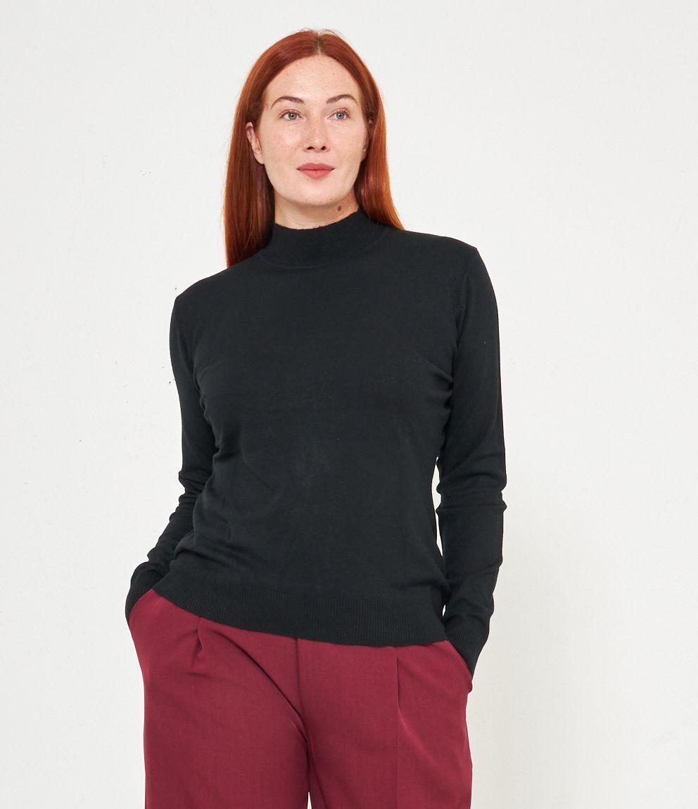 Maglia in viscosa a mezzo collo con bordi a costine.
