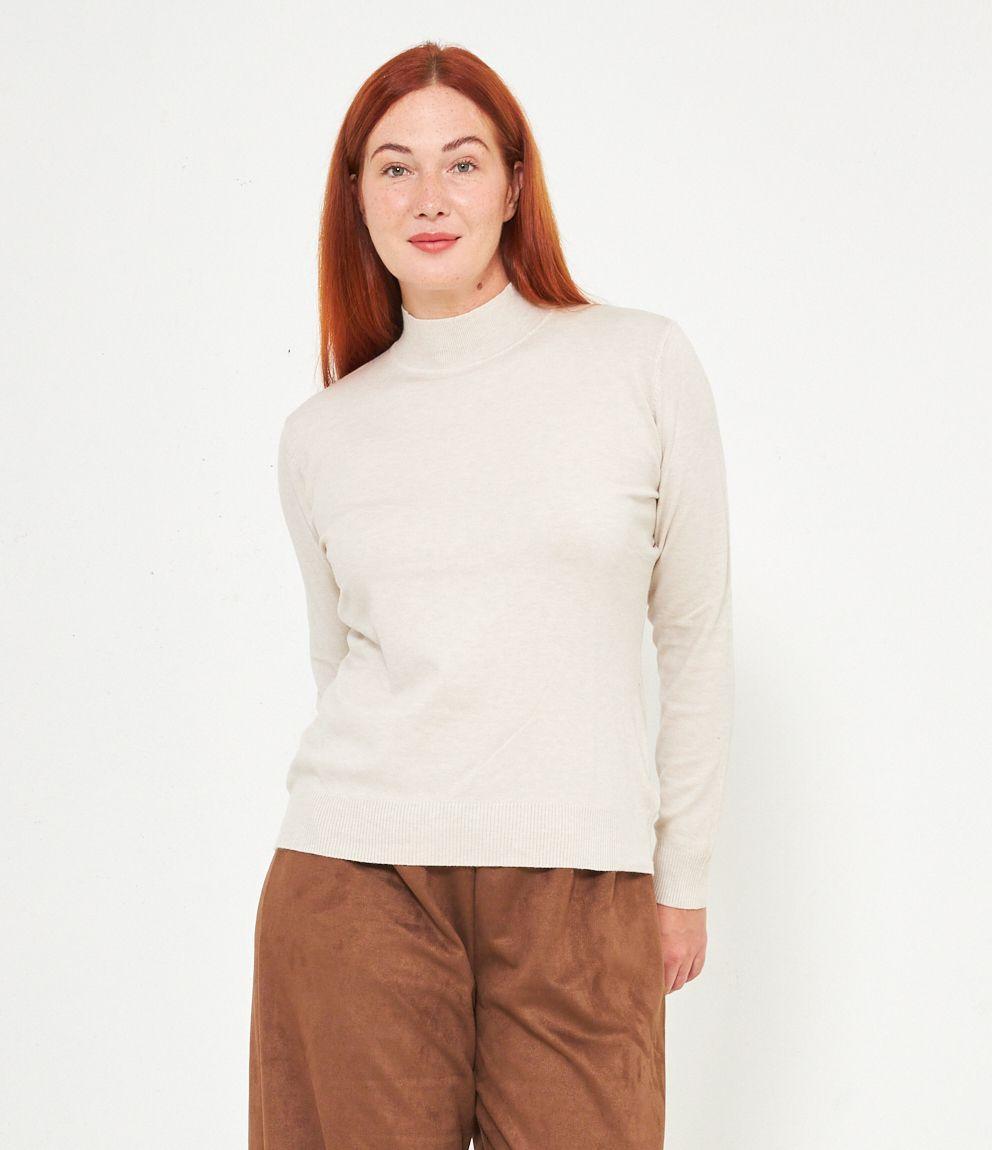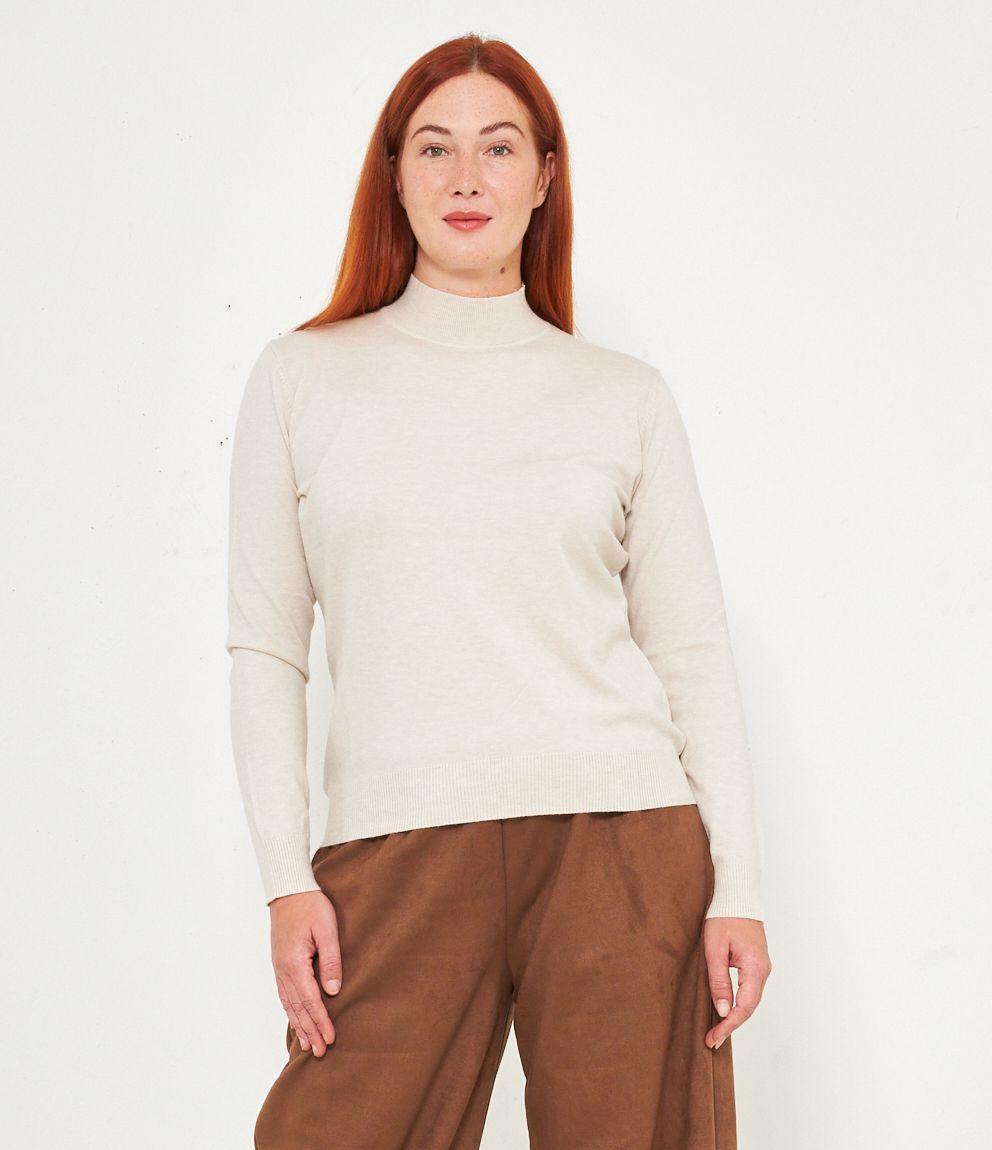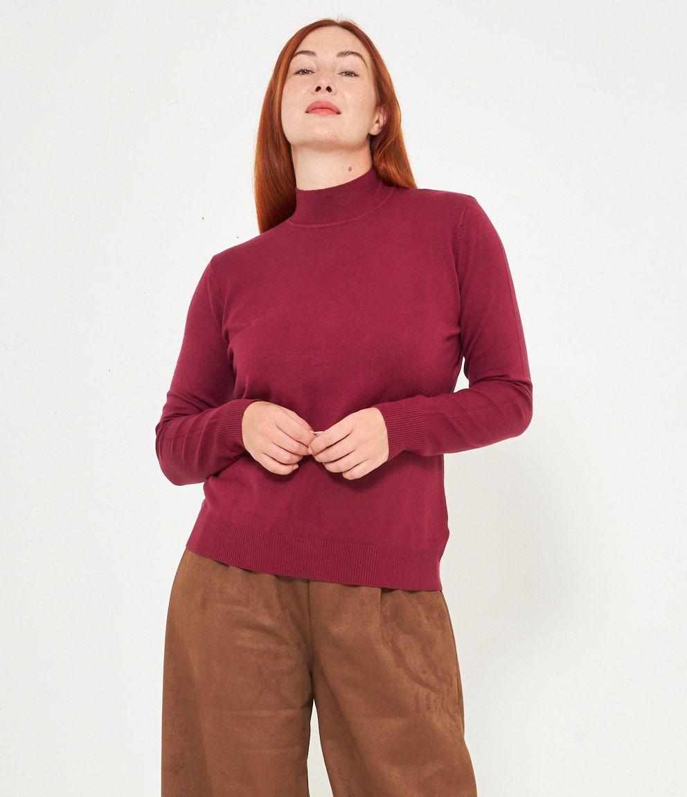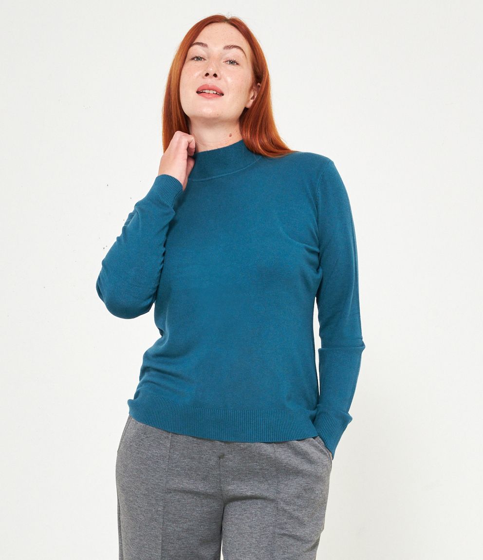Maglia in viscosa a mezzo collo con bordi a costine.