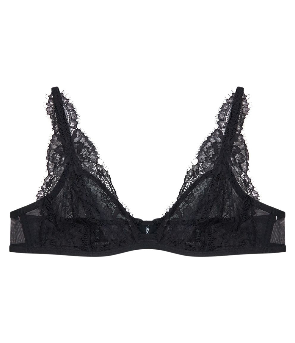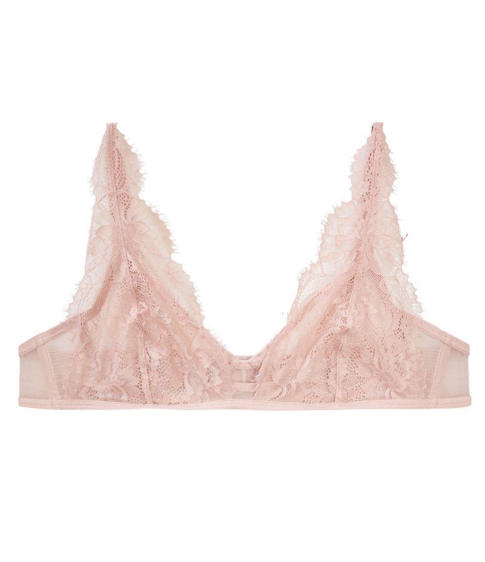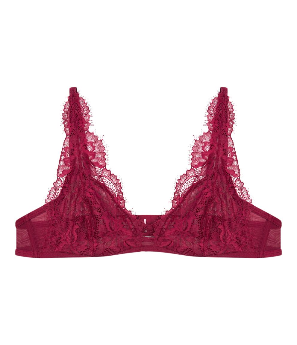 Bralette in pizzo con coppe preformate, spalline regolabili e chiusura con gancetti regolabili su tra larghezze.