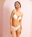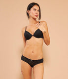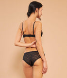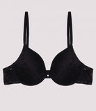 Reggiseno modello t-shirt in pizzo con coppa preformata e ferretto. Spalline sottili regolabili e chiusura con due gancetti in tre larghezze.