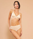Slip a vita alta, modello sagomato con dettagli in pizzo.