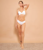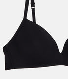 Reggiseno modello a triangolo preformato senza ferretto, spalline sottili regolabili e chiusura con due gancetti in tre larghezze.