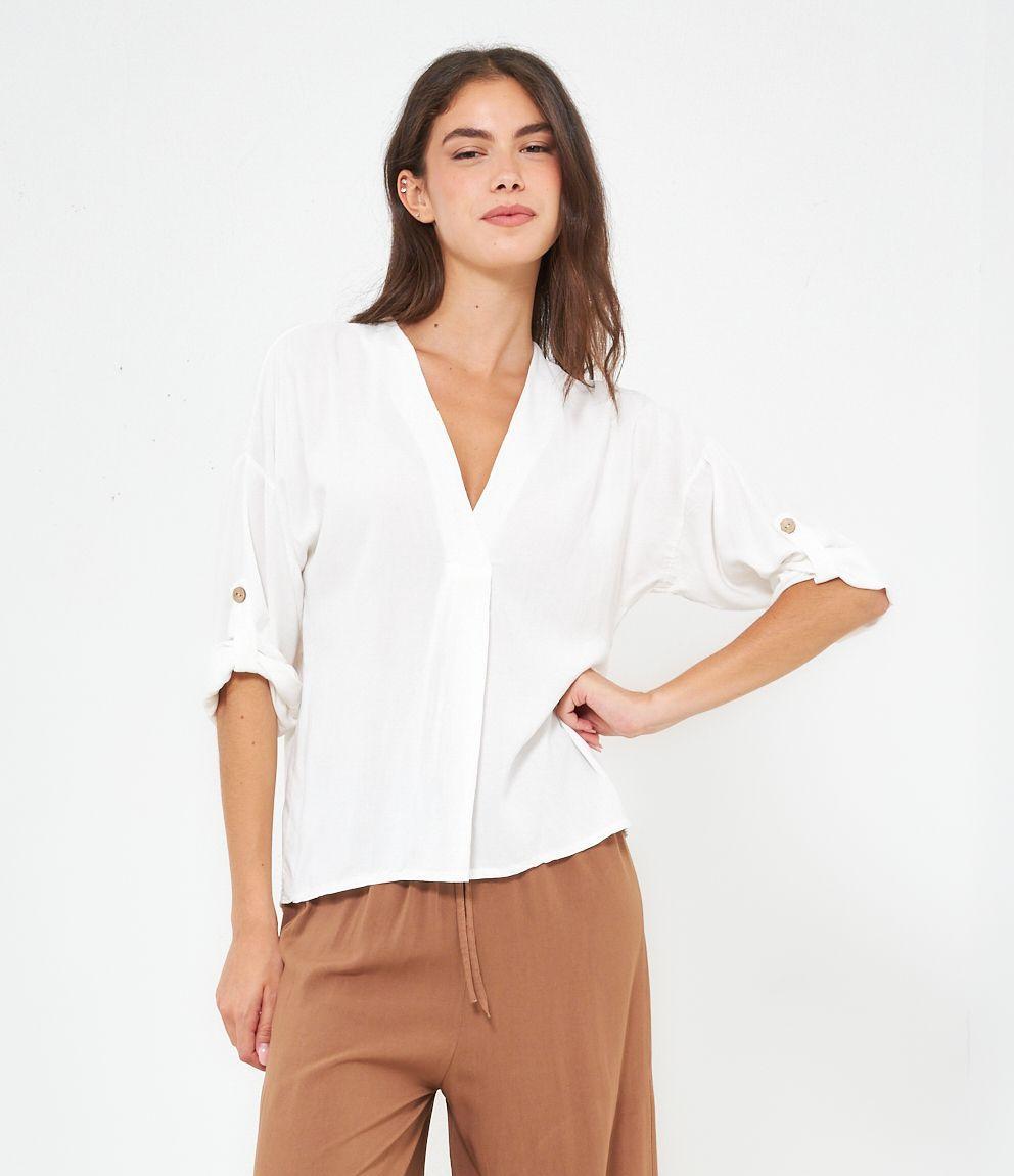 Casacca modello comfy con scollo a v, maniche con risvolti e passante.