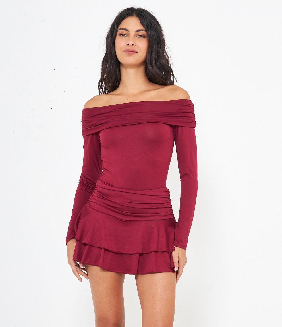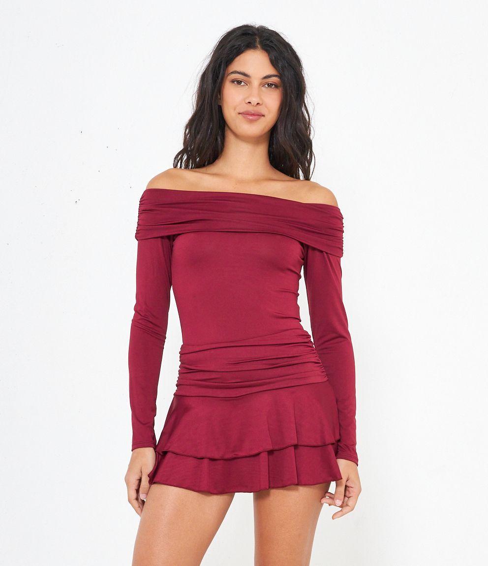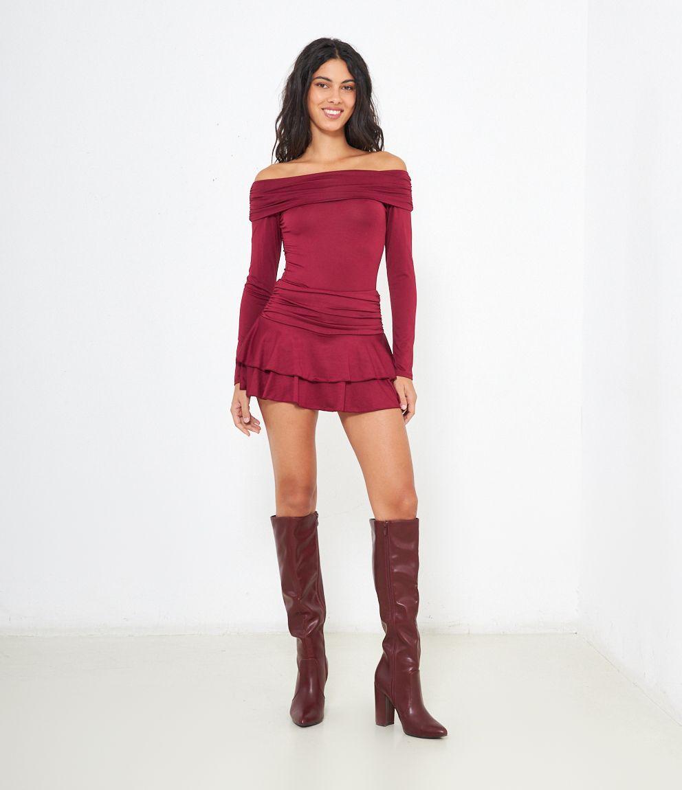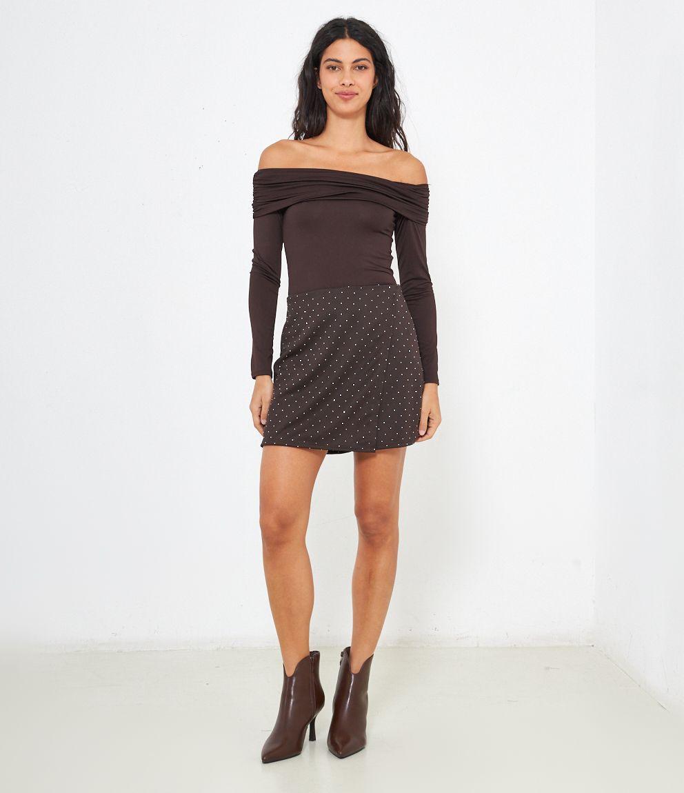 Body con scollo ampio e spalle scoperte, tessuto elastico.