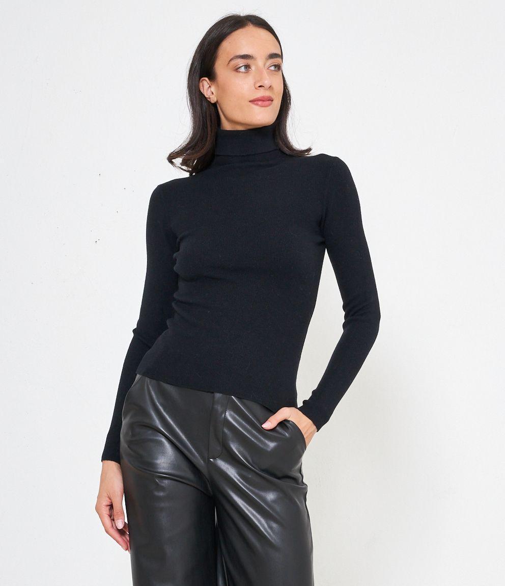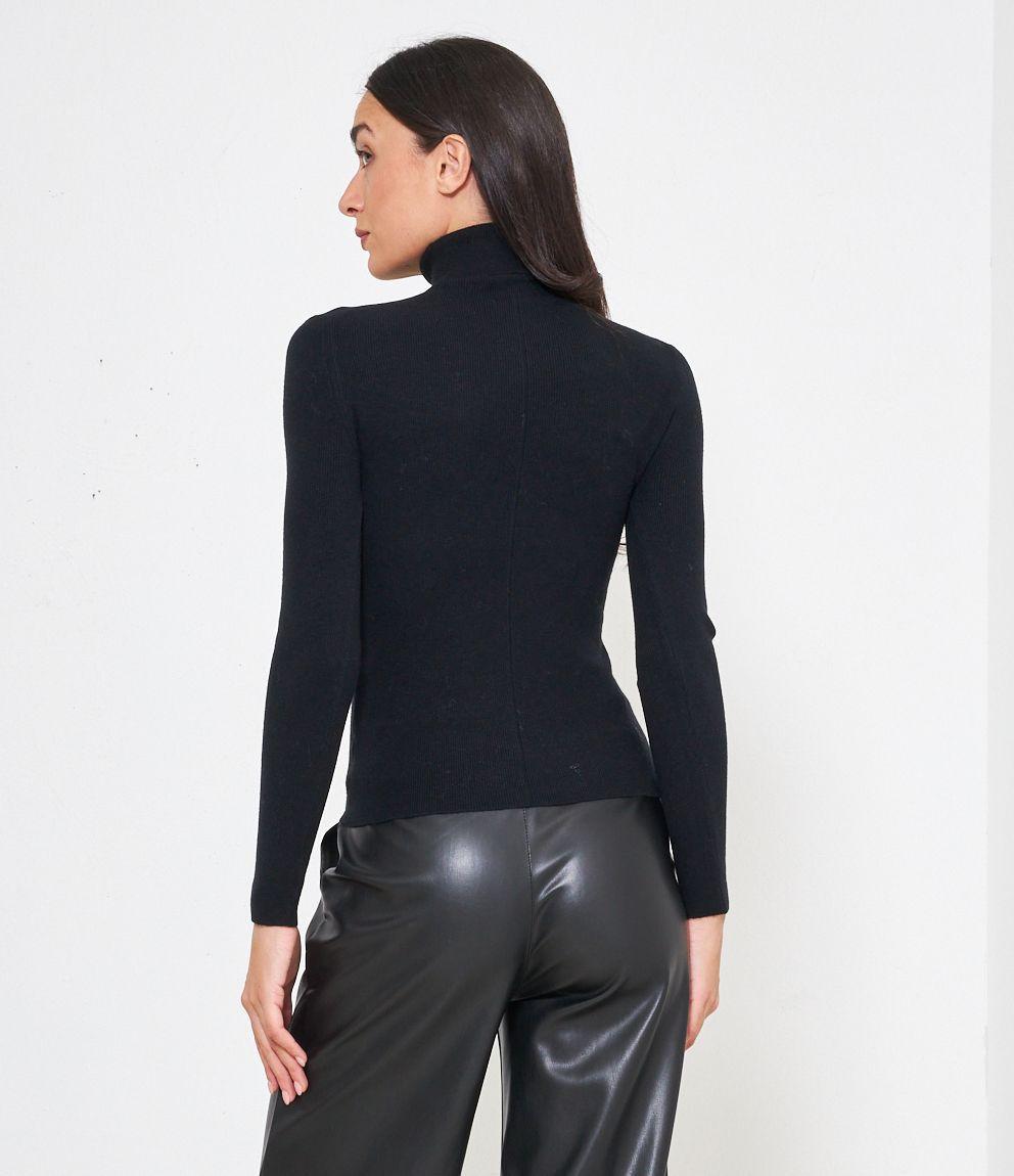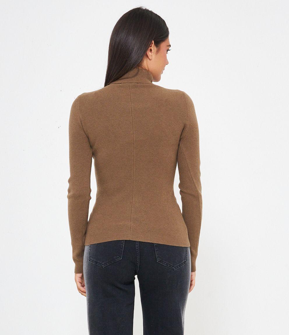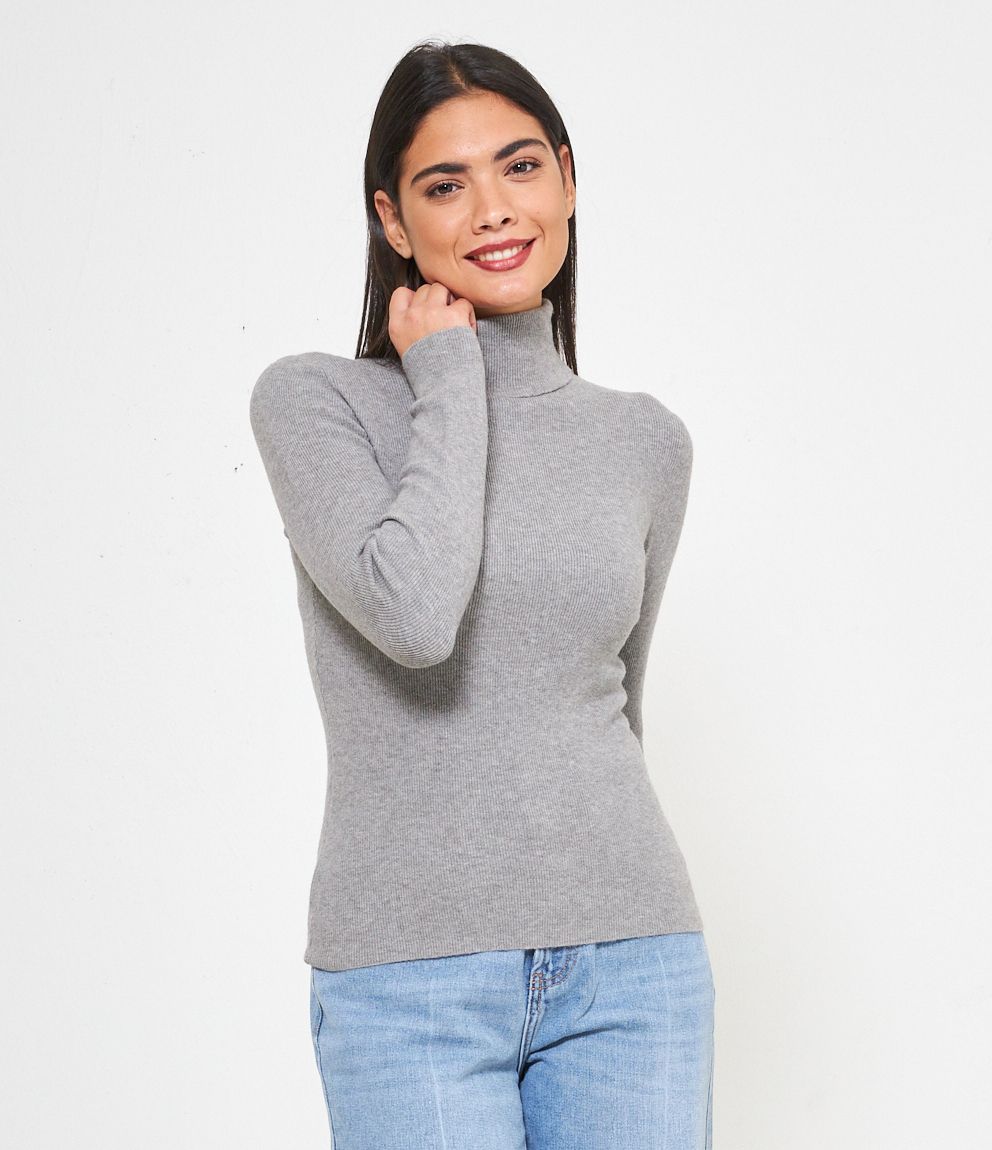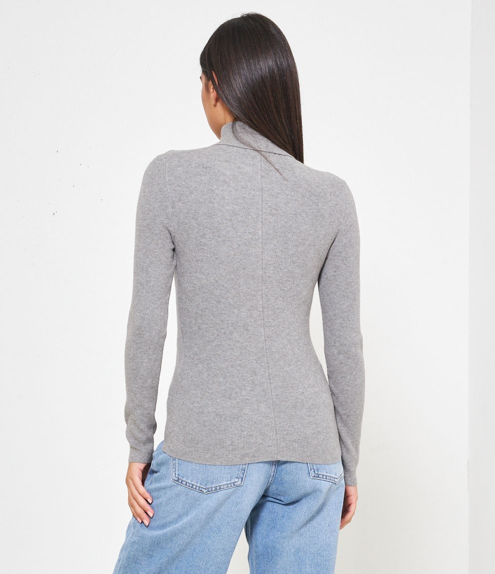 Maglia slim fit a costine, collo alto con risvolto.
