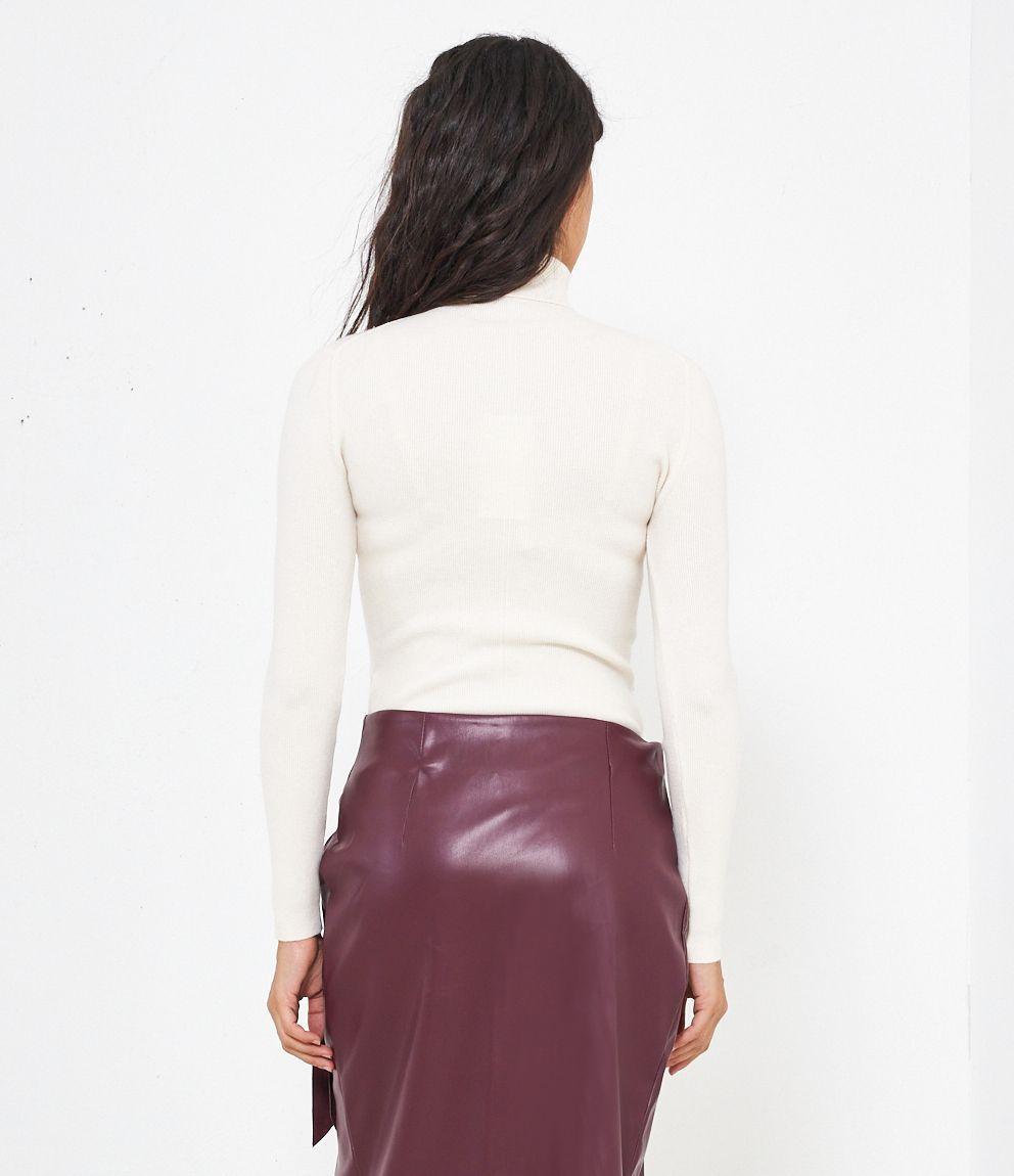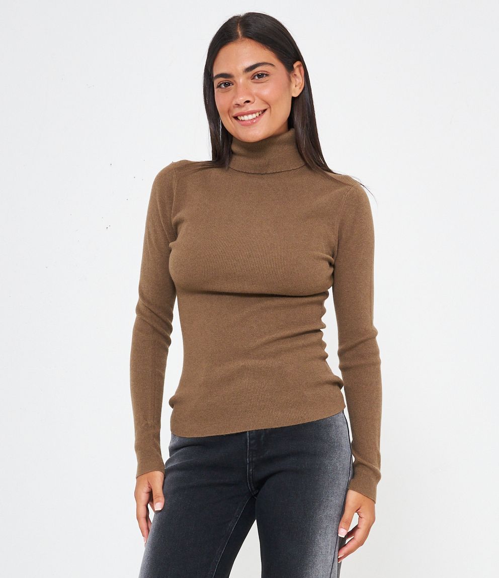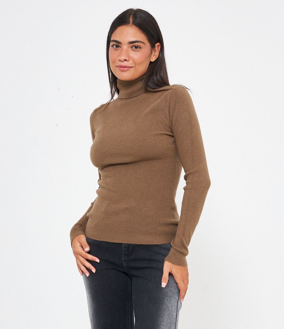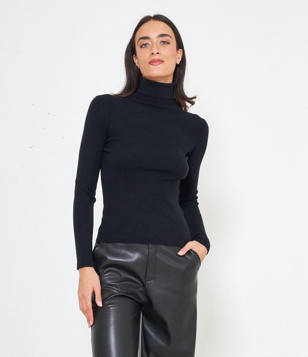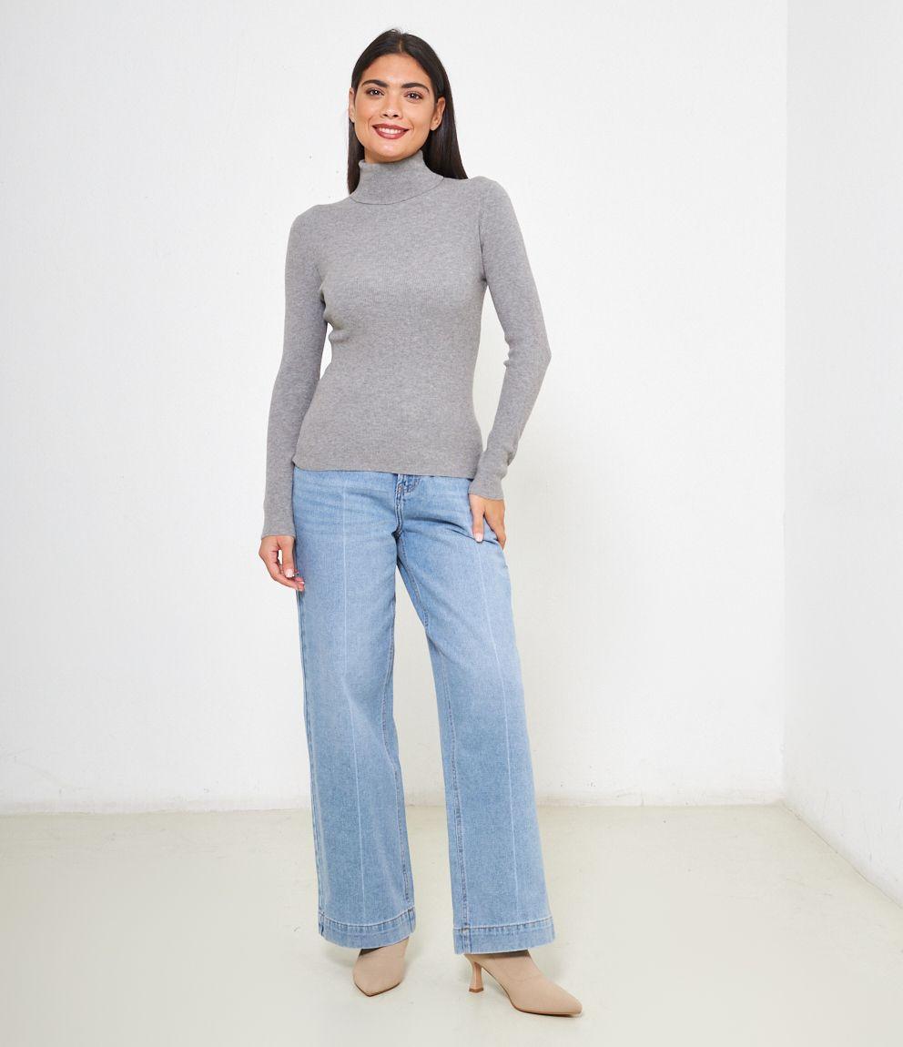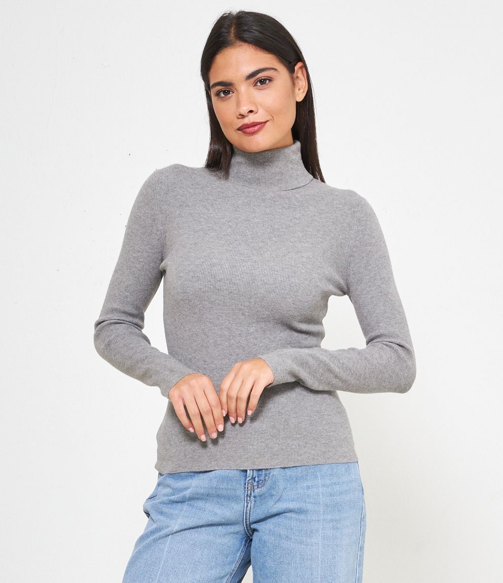 Maglia slim fit a costine, collo alto con risvolto.