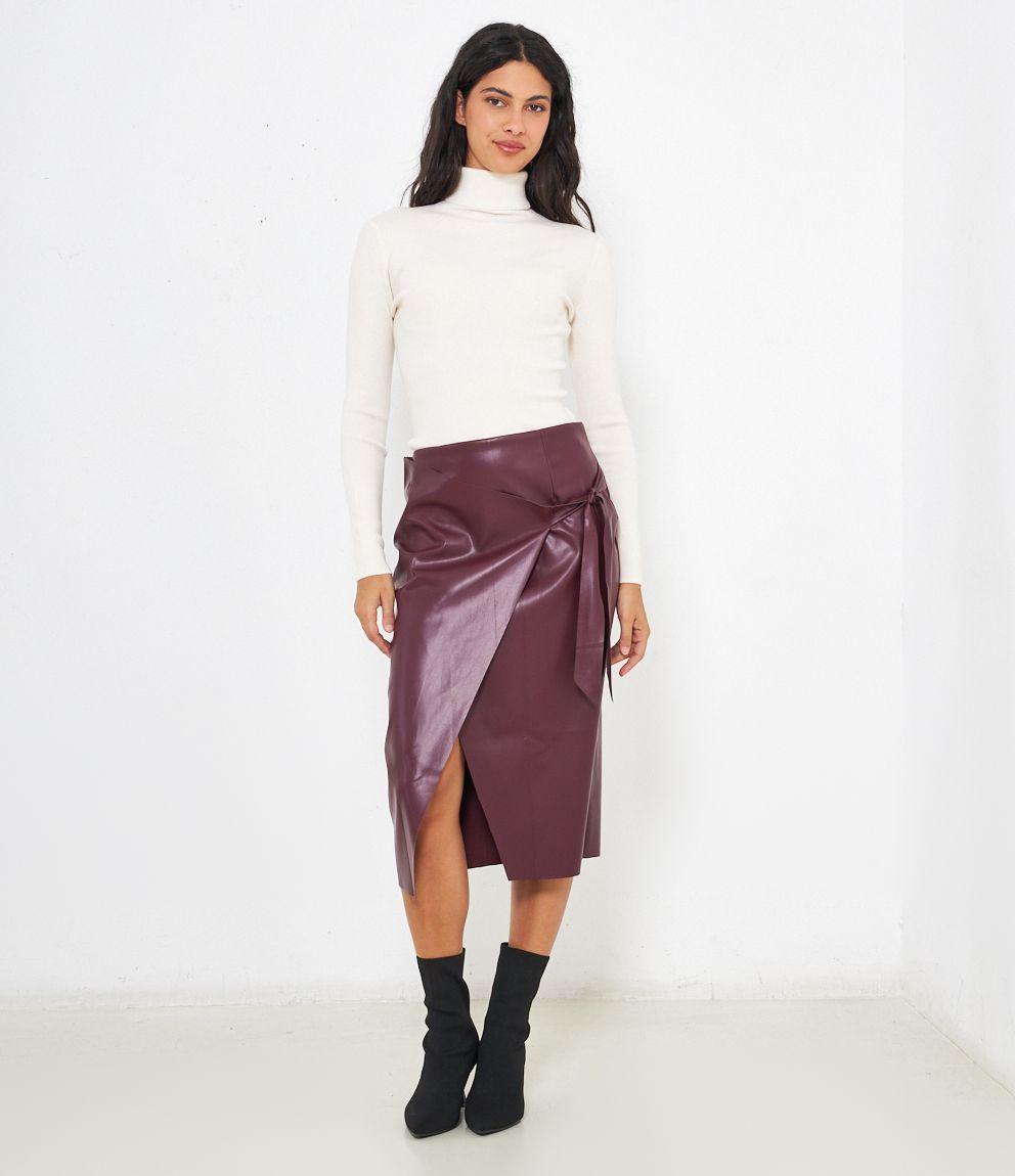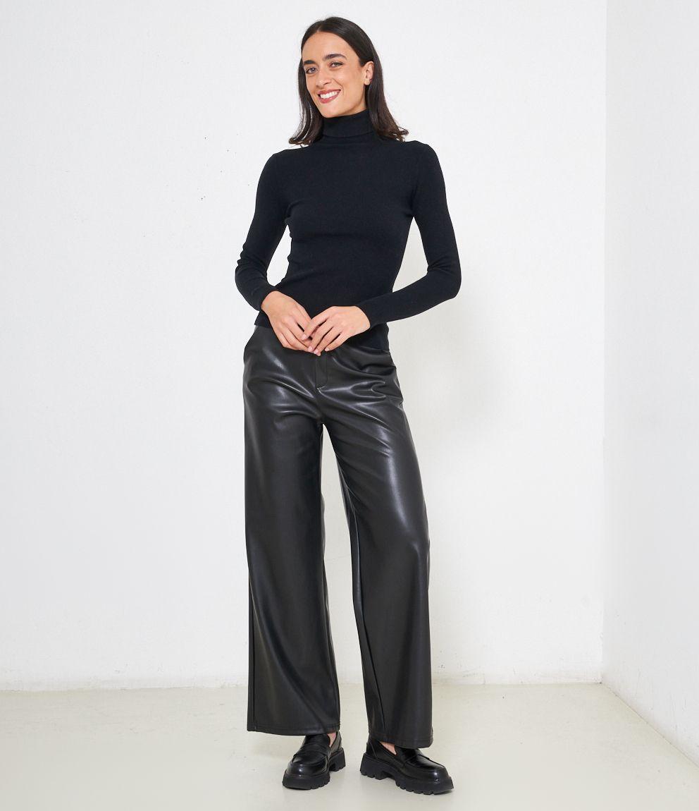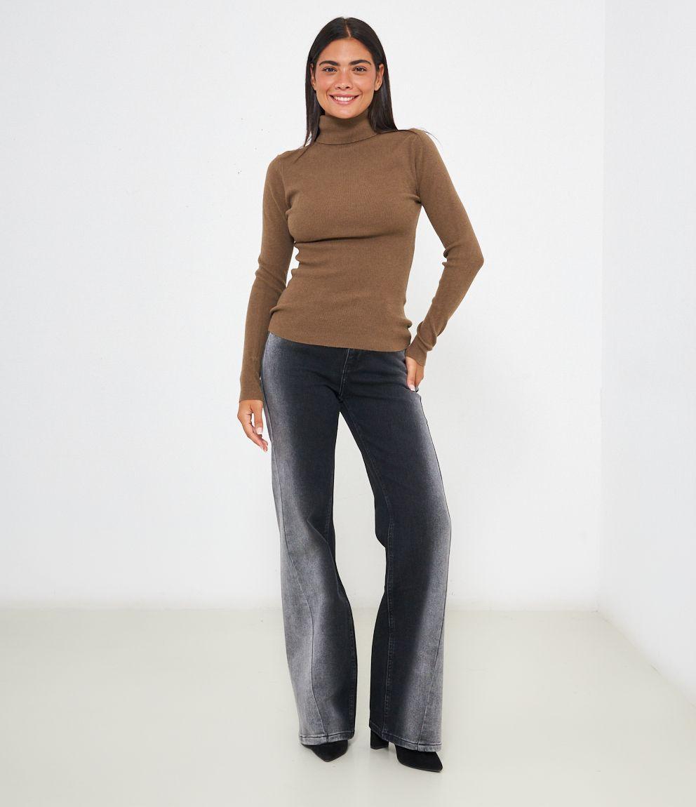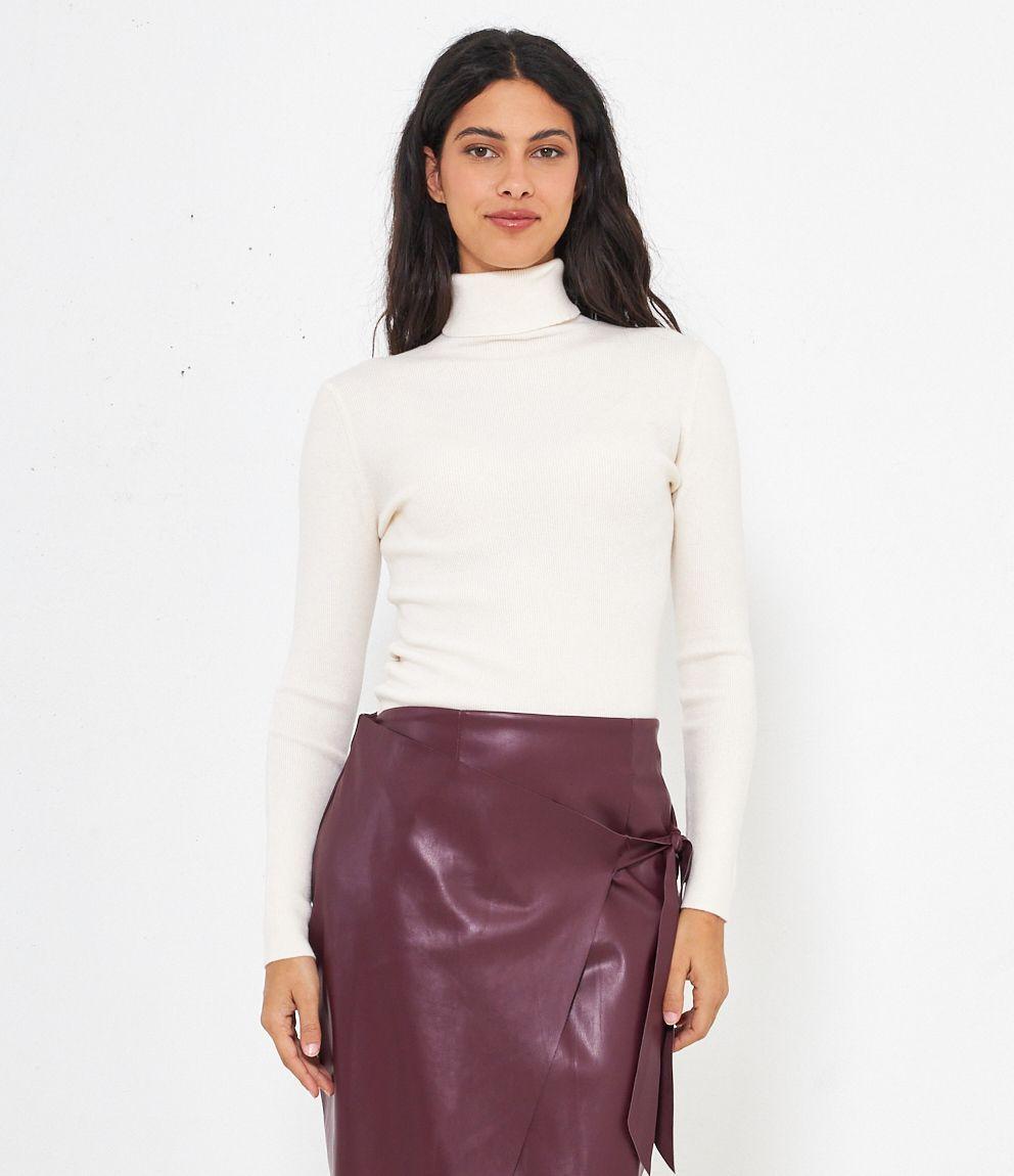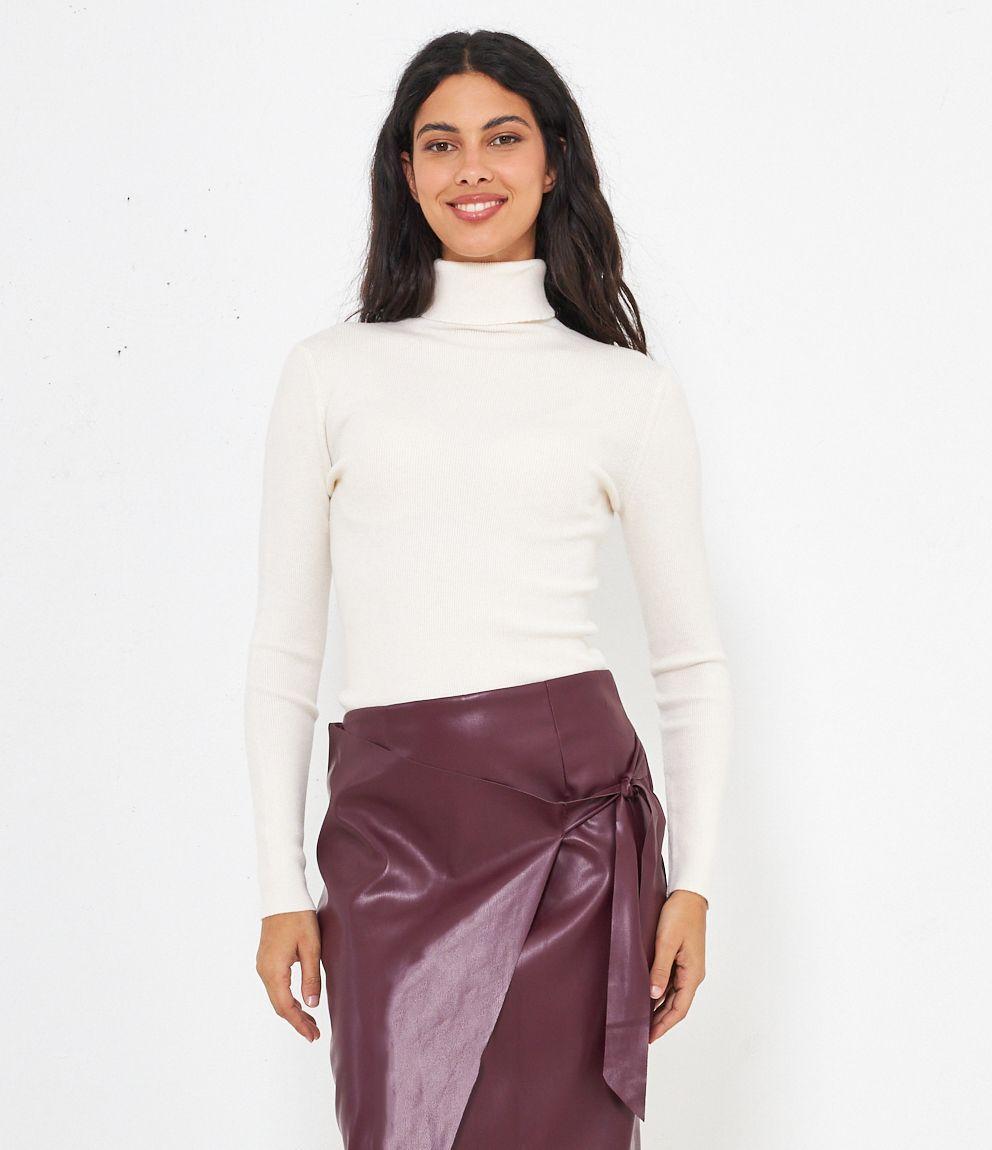 Maglia slim fit a costine, collo alto con risvolto.