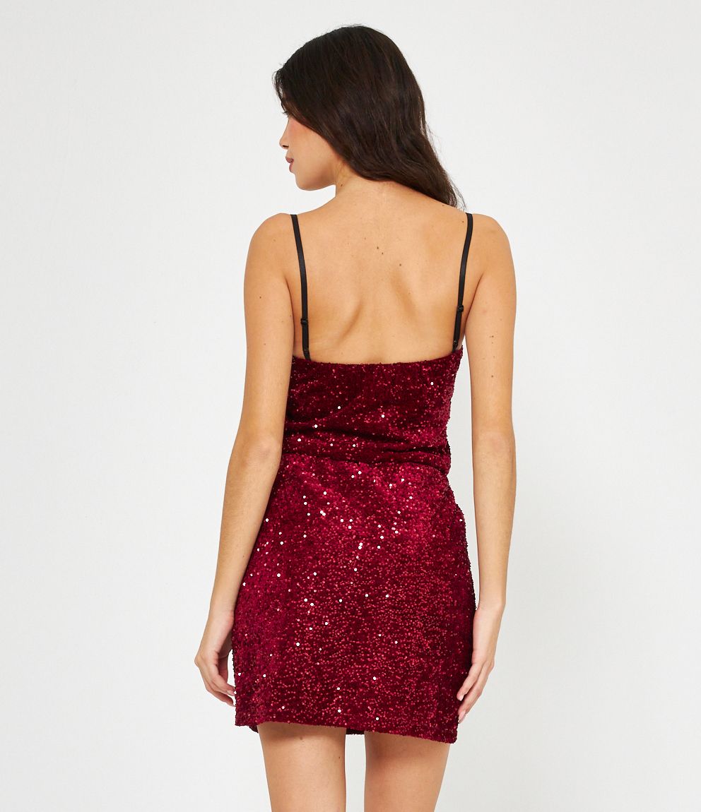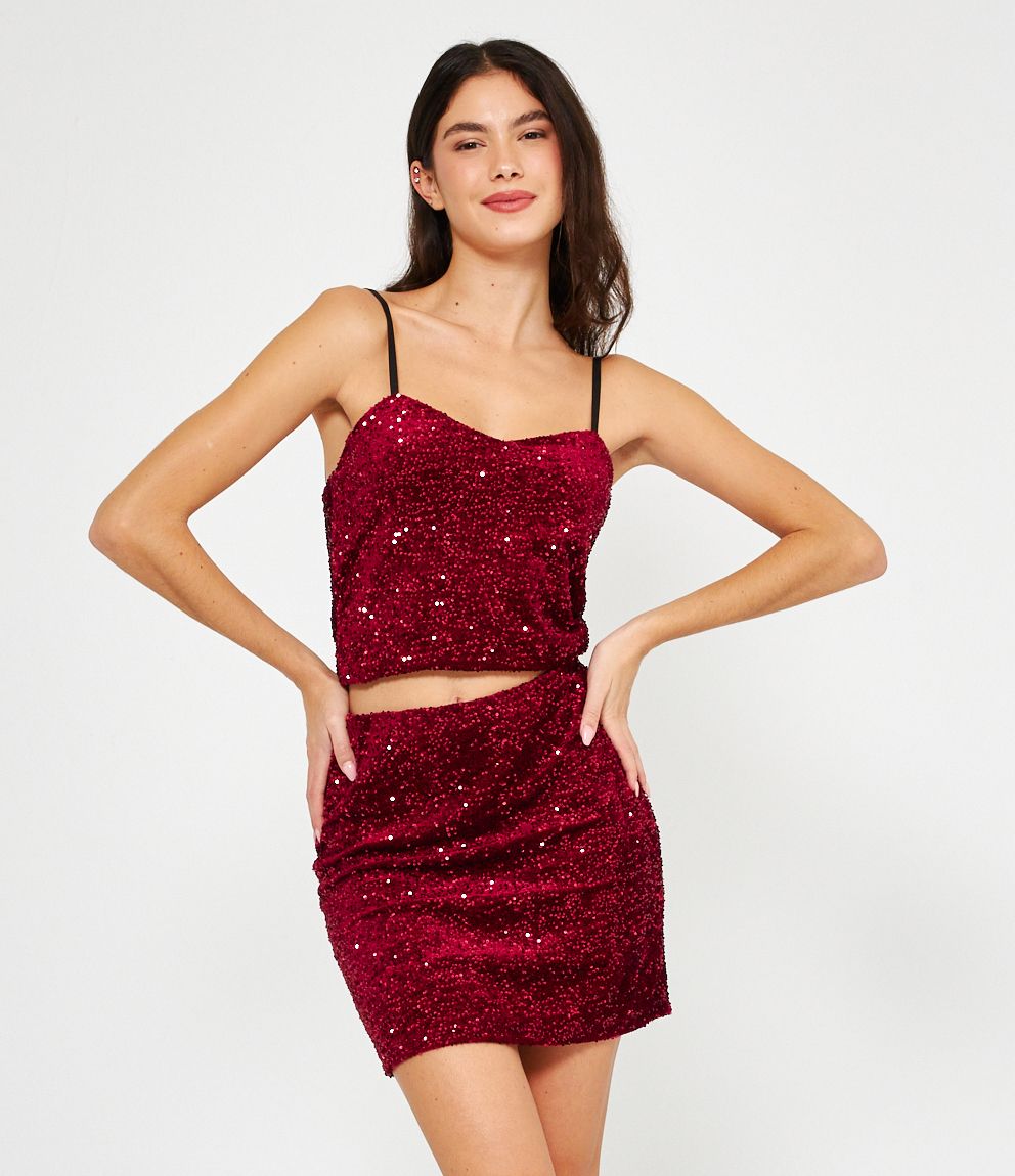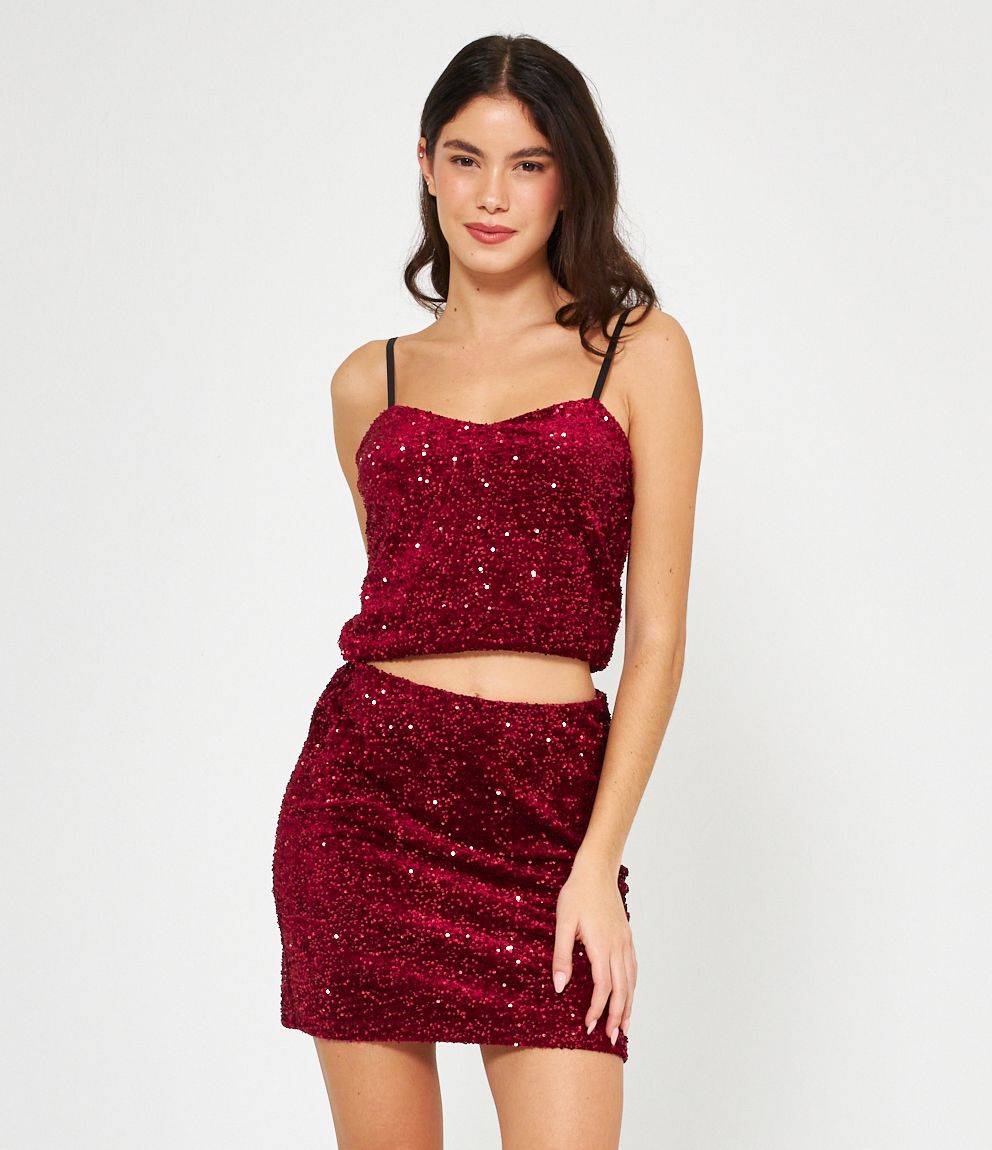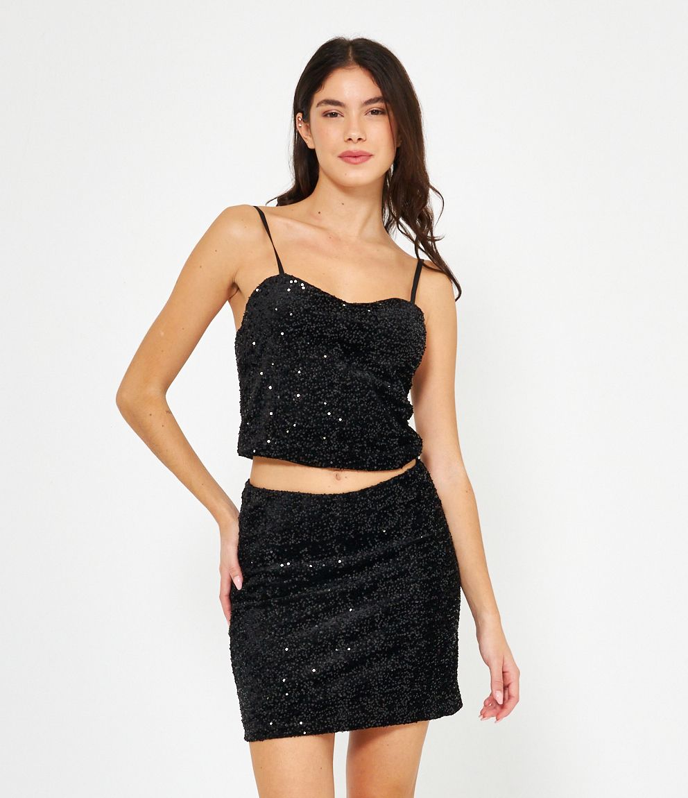 Top in ciniglia con paillettes, spalline regolabili e coppe interne.