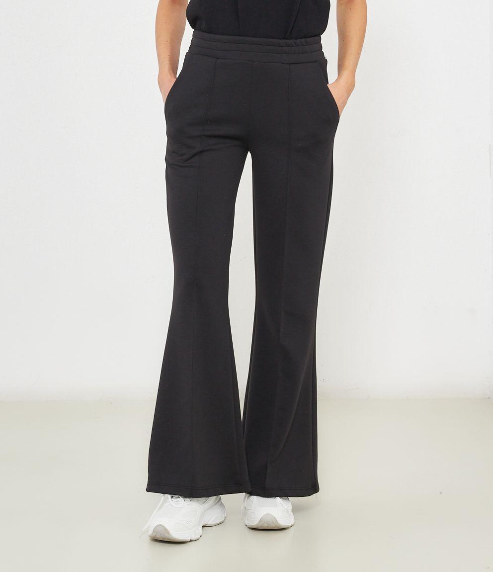 Pantaloni modello flare con tasche laterali e vita elasticizzata.