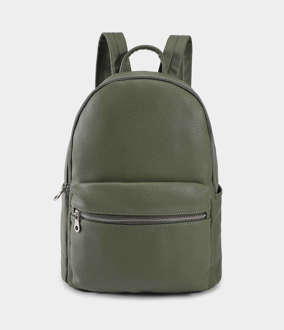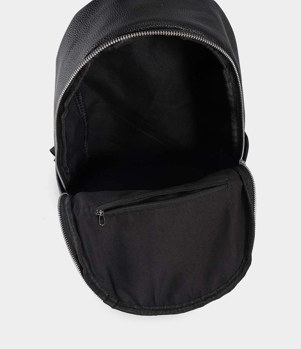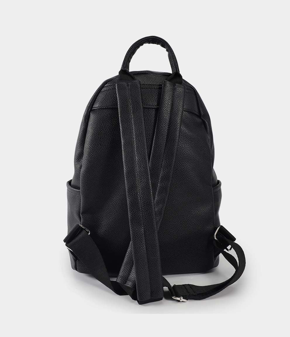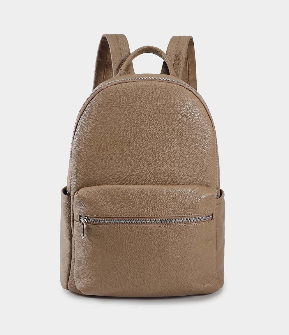 Zaino effetto pelle con tasca frontale con zip, tasche laterali e chiusura con zip. Bretelle regolabili.