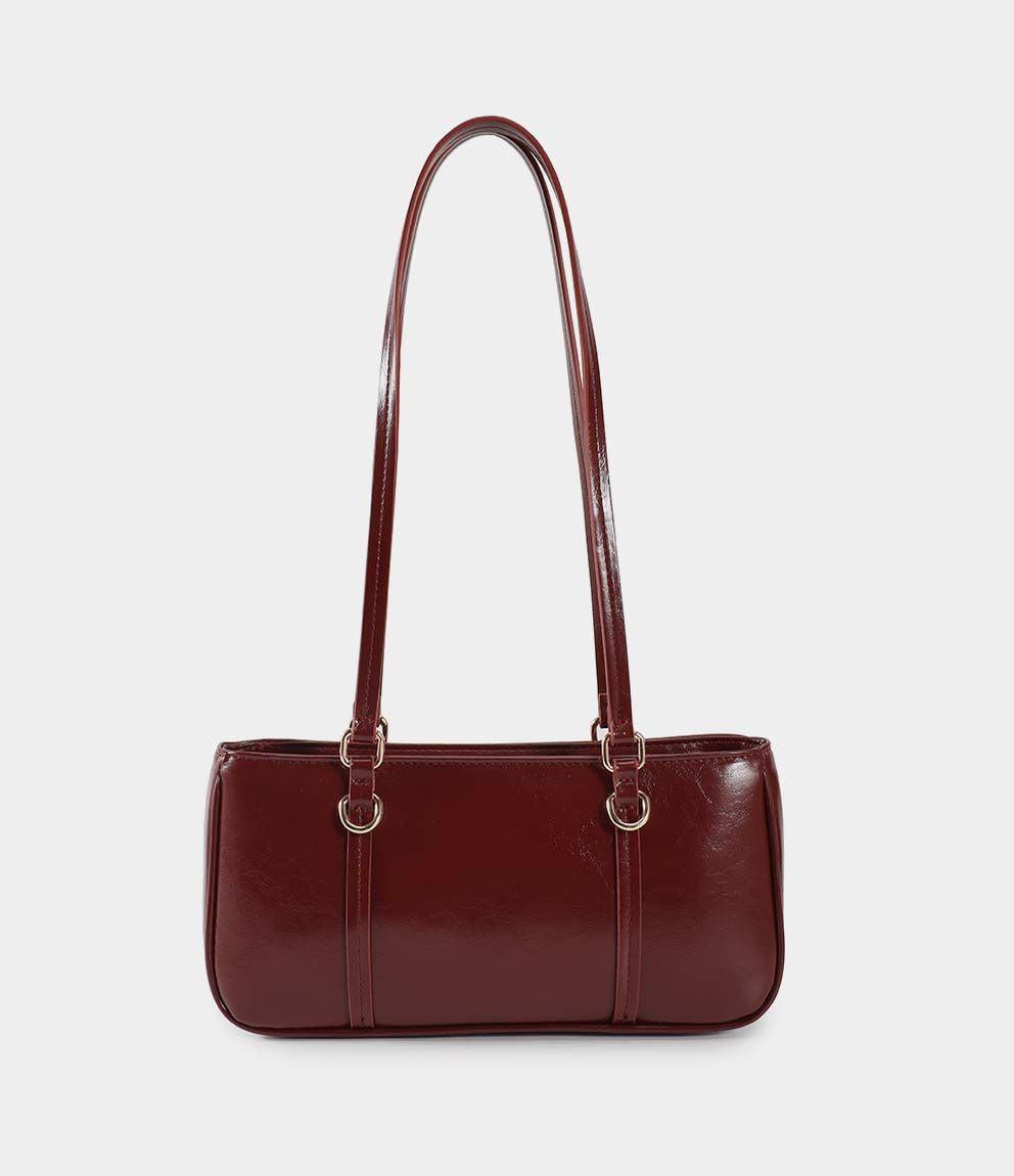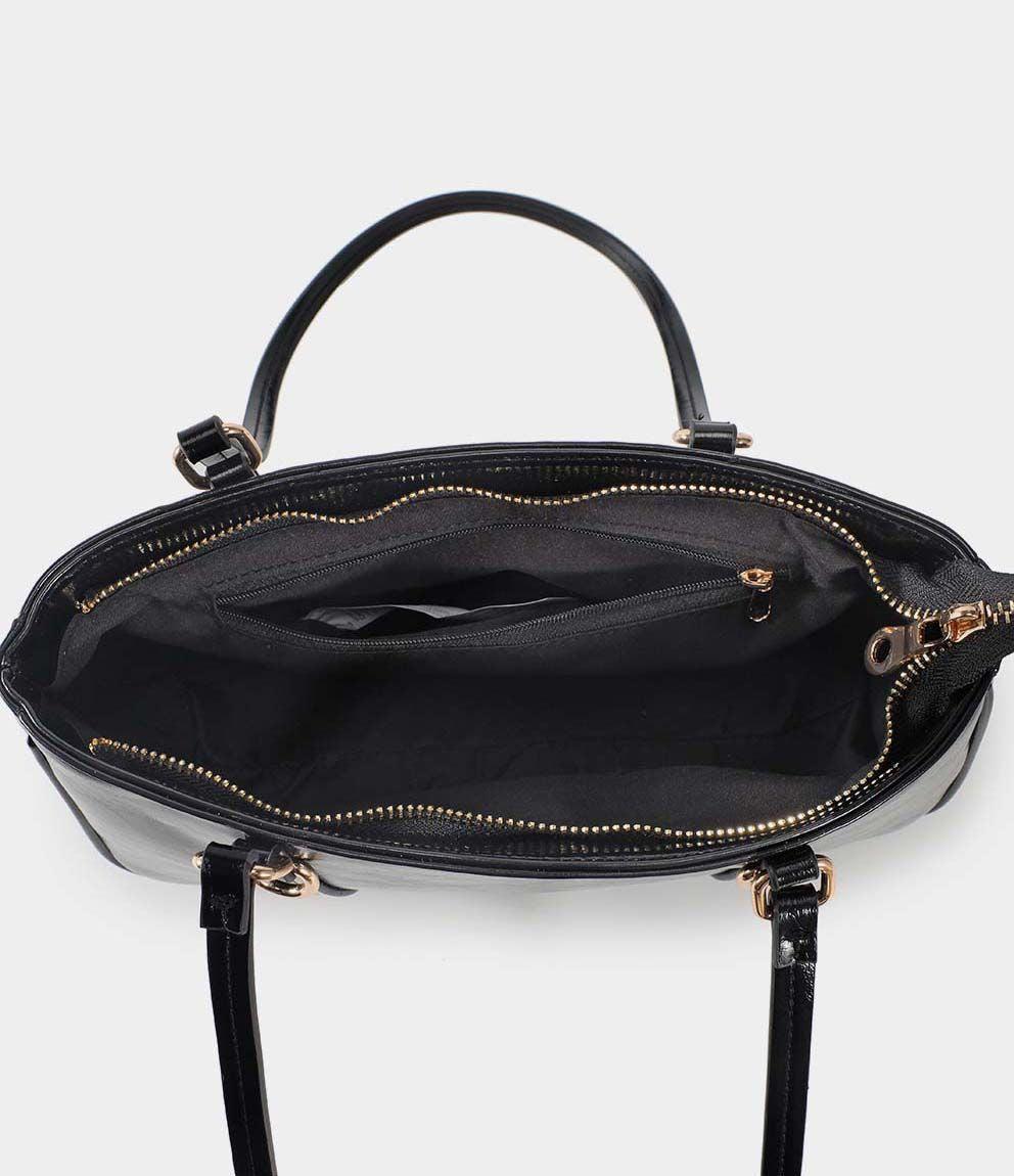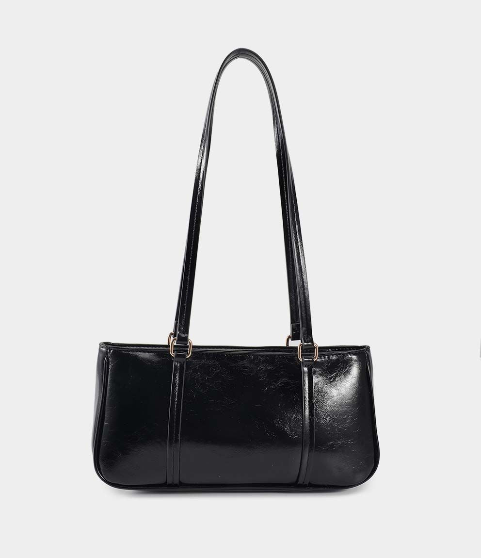 Borsa a spalla, effetto pelle con dettagli dorati. Tasca interna e chiusura con zip.