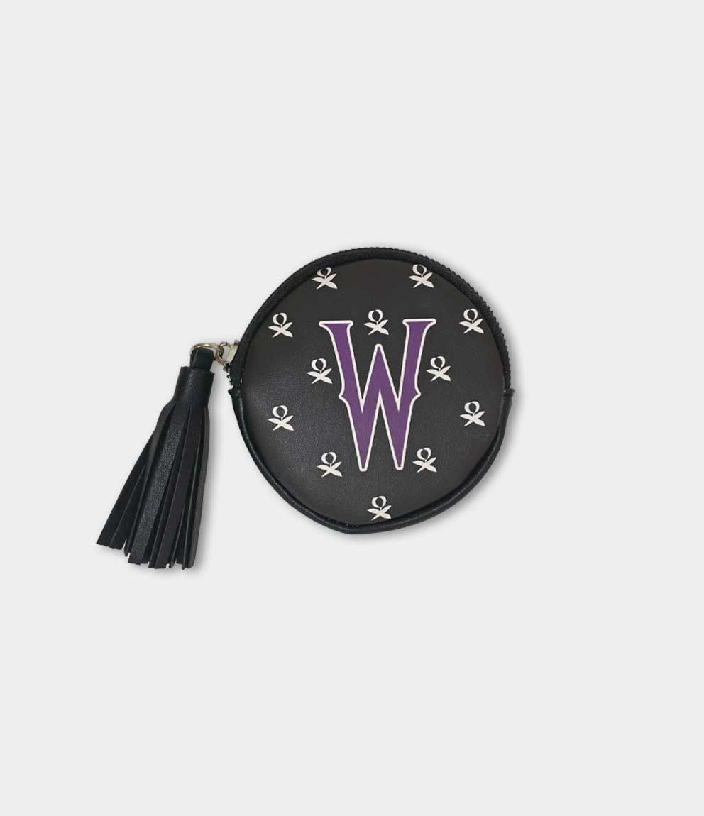 Portamonete ' Wednesday' rotondo con stampa grafica frontale e chiusura con zip.