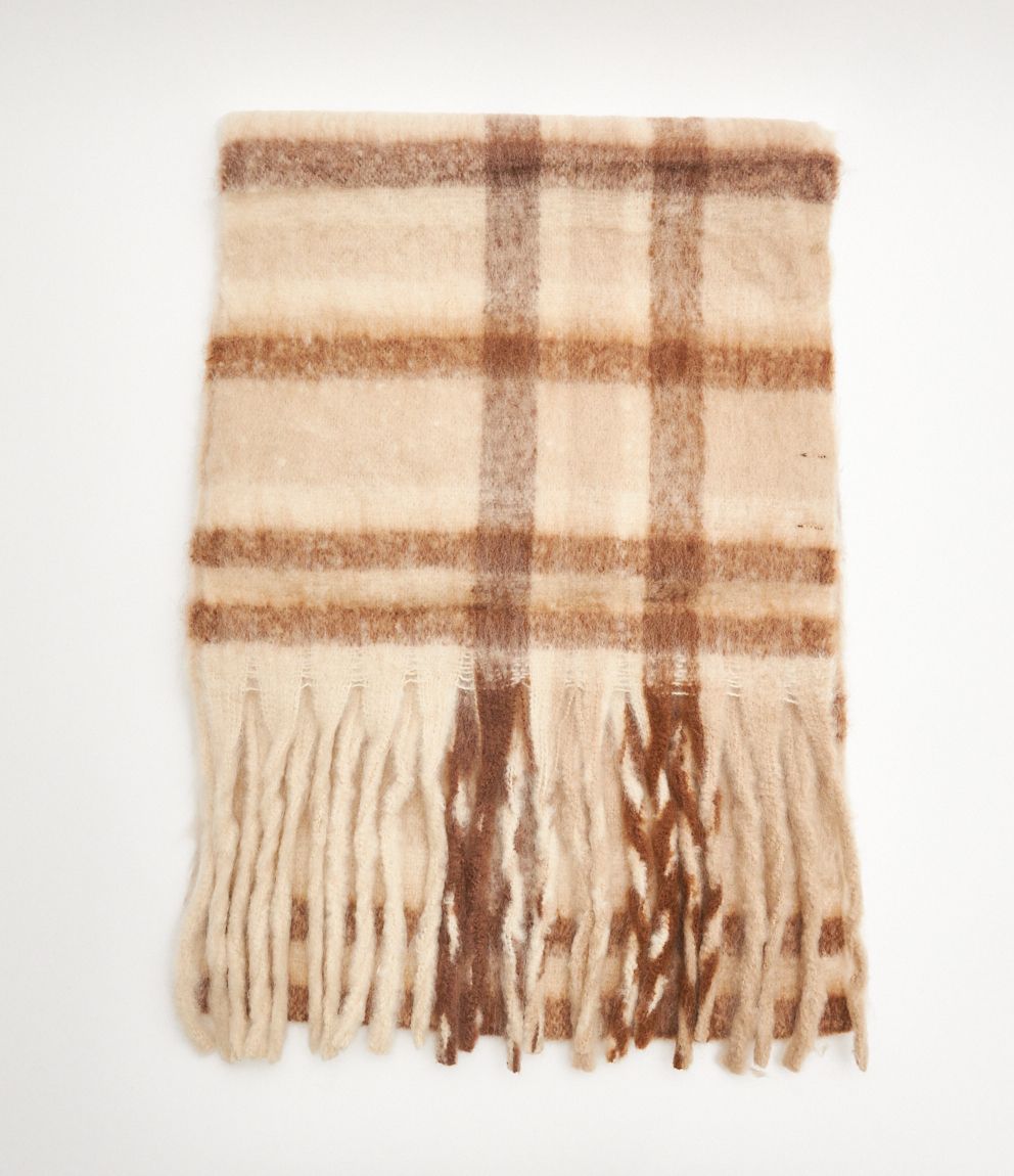 Sciarpa a quadri con frange.
