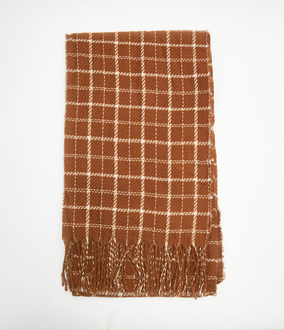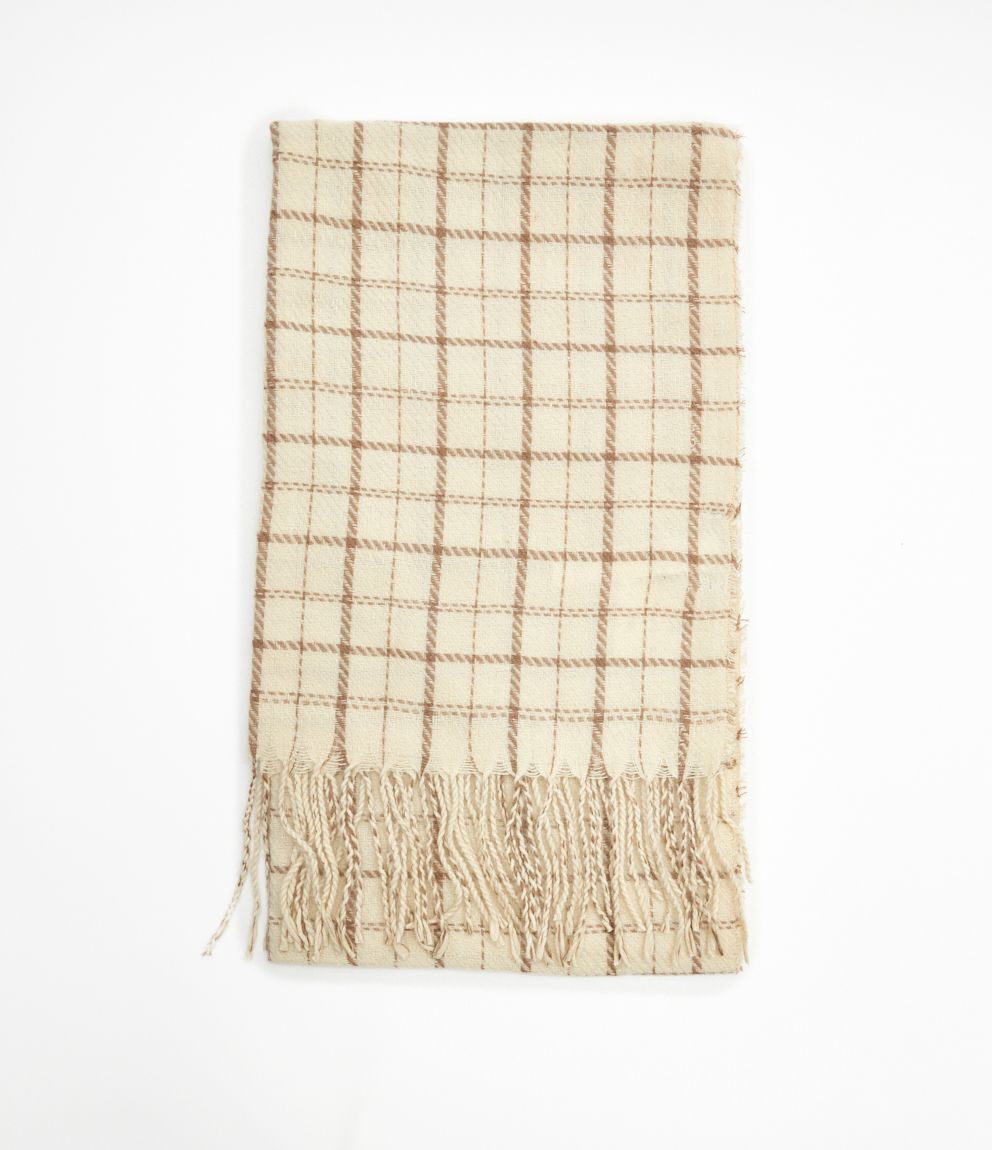 Sciarpa a quadri con frangia.
