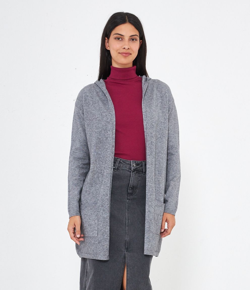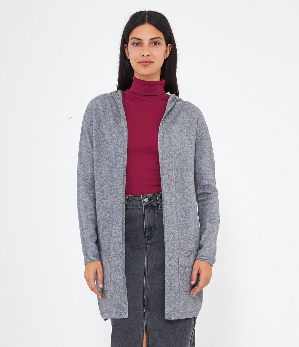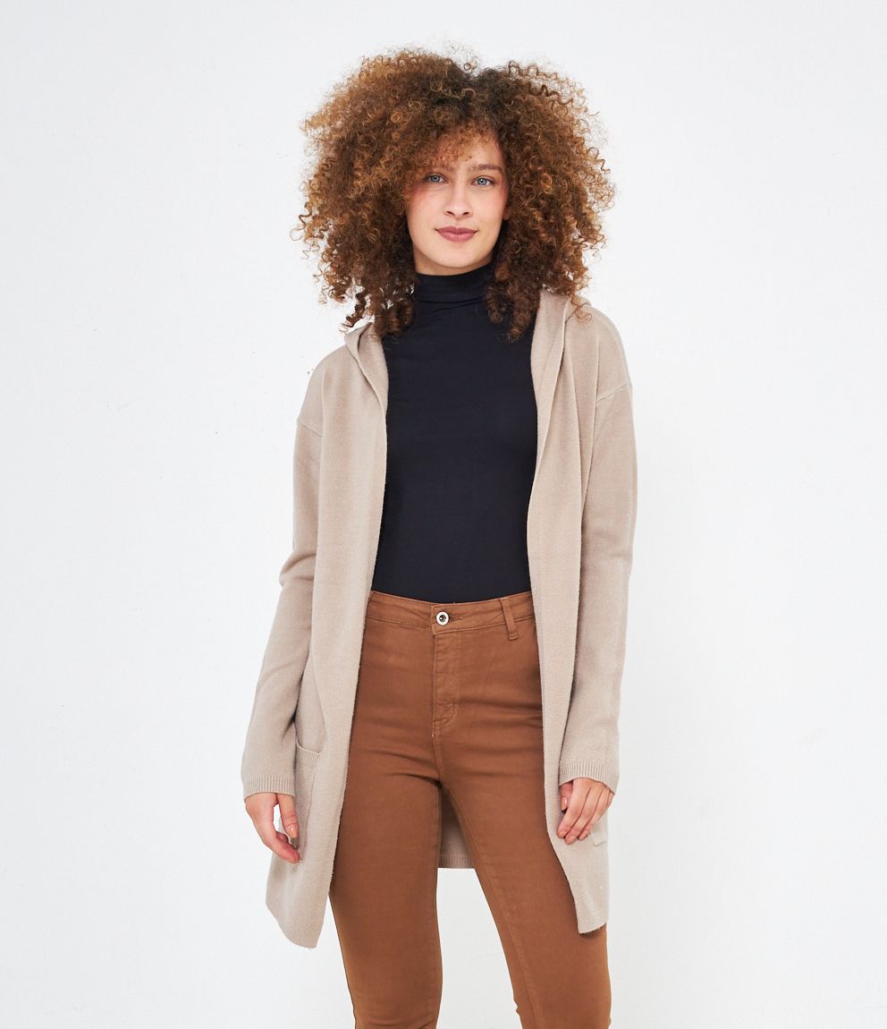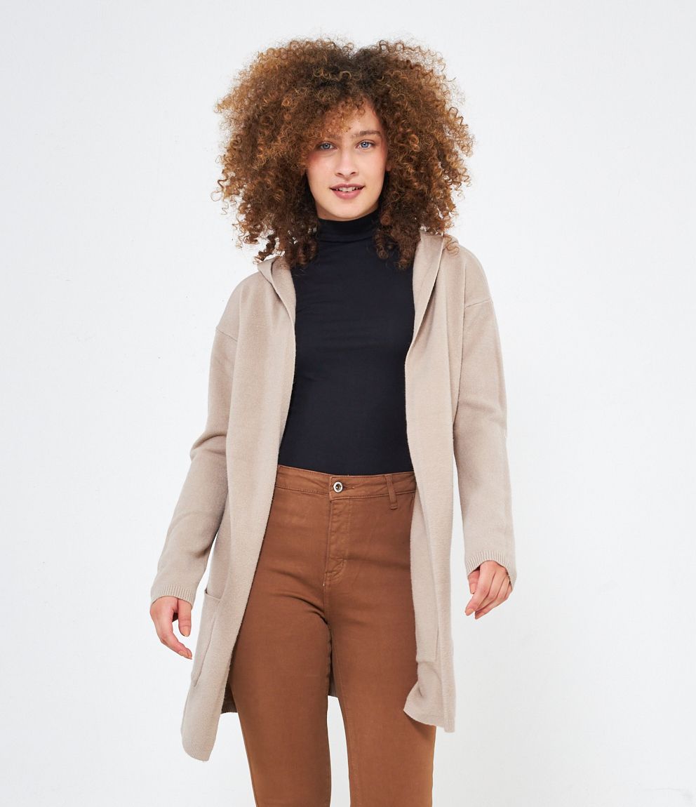 Spolverino con cappuccio in viscosa, senza chiusura.