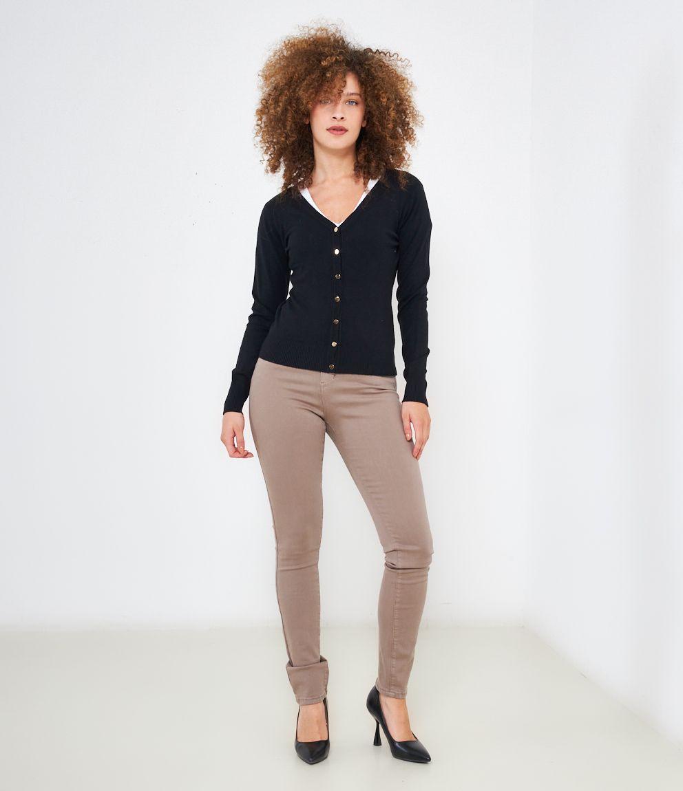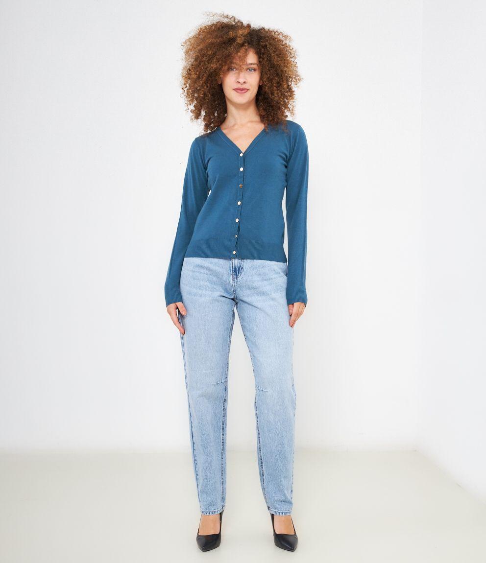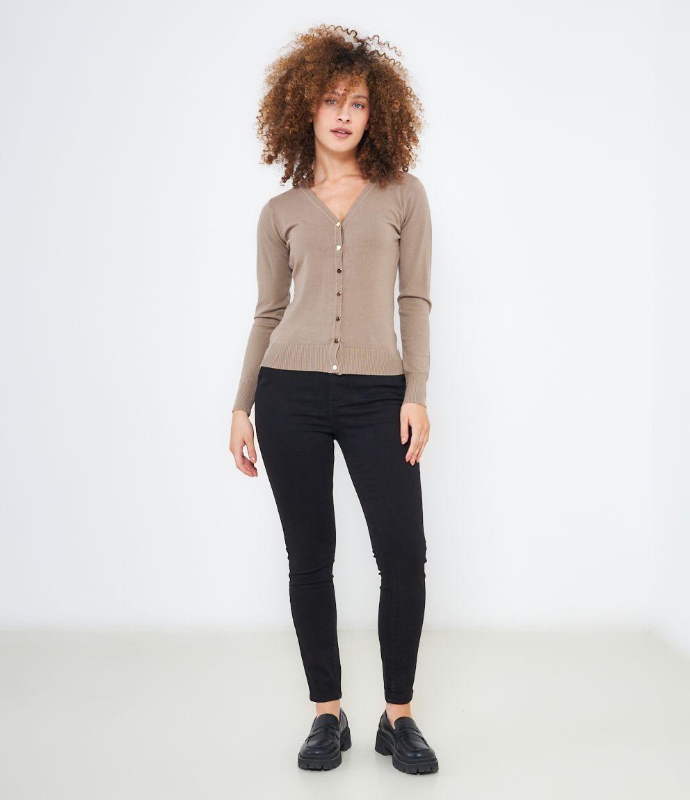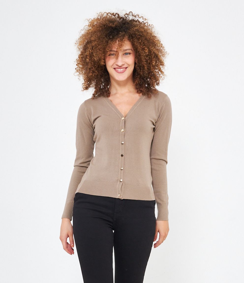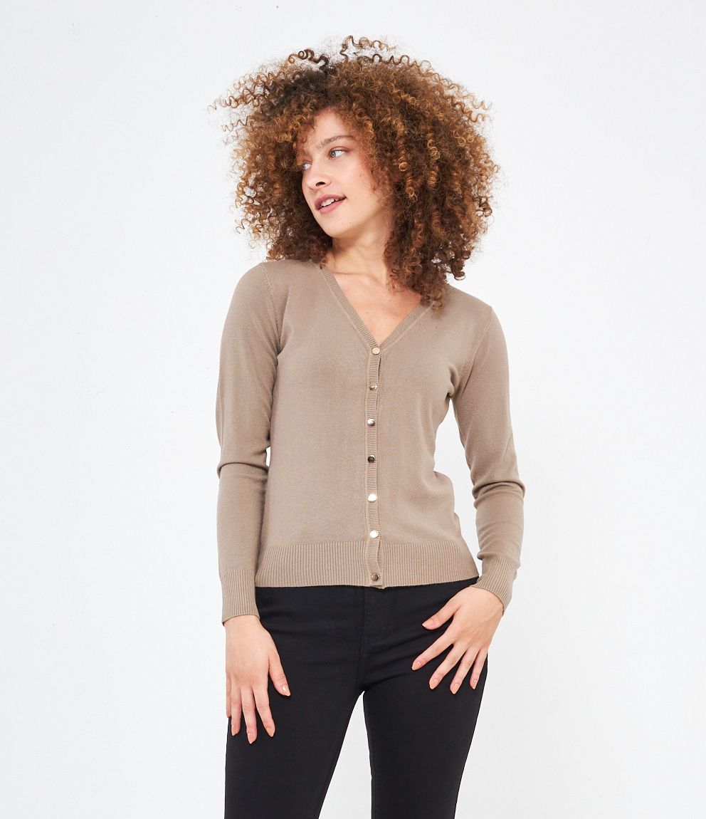 Cardigan modello regular fit in viscosa con bottoni dorati, scollo a V e bordi a costine.