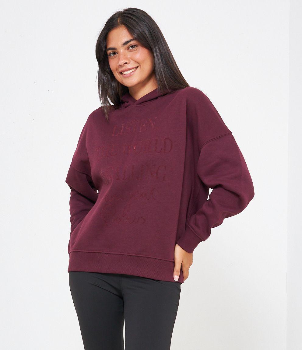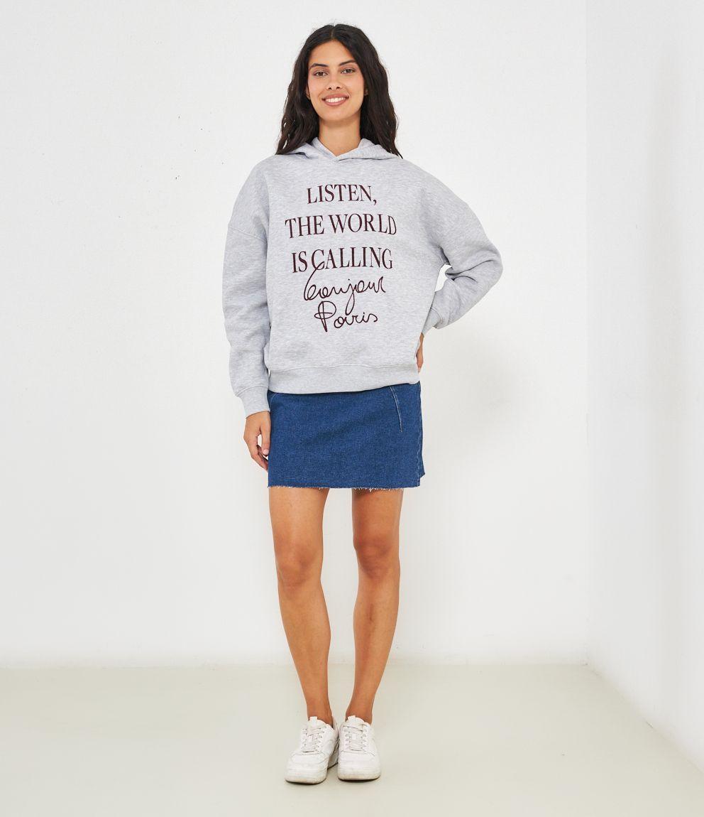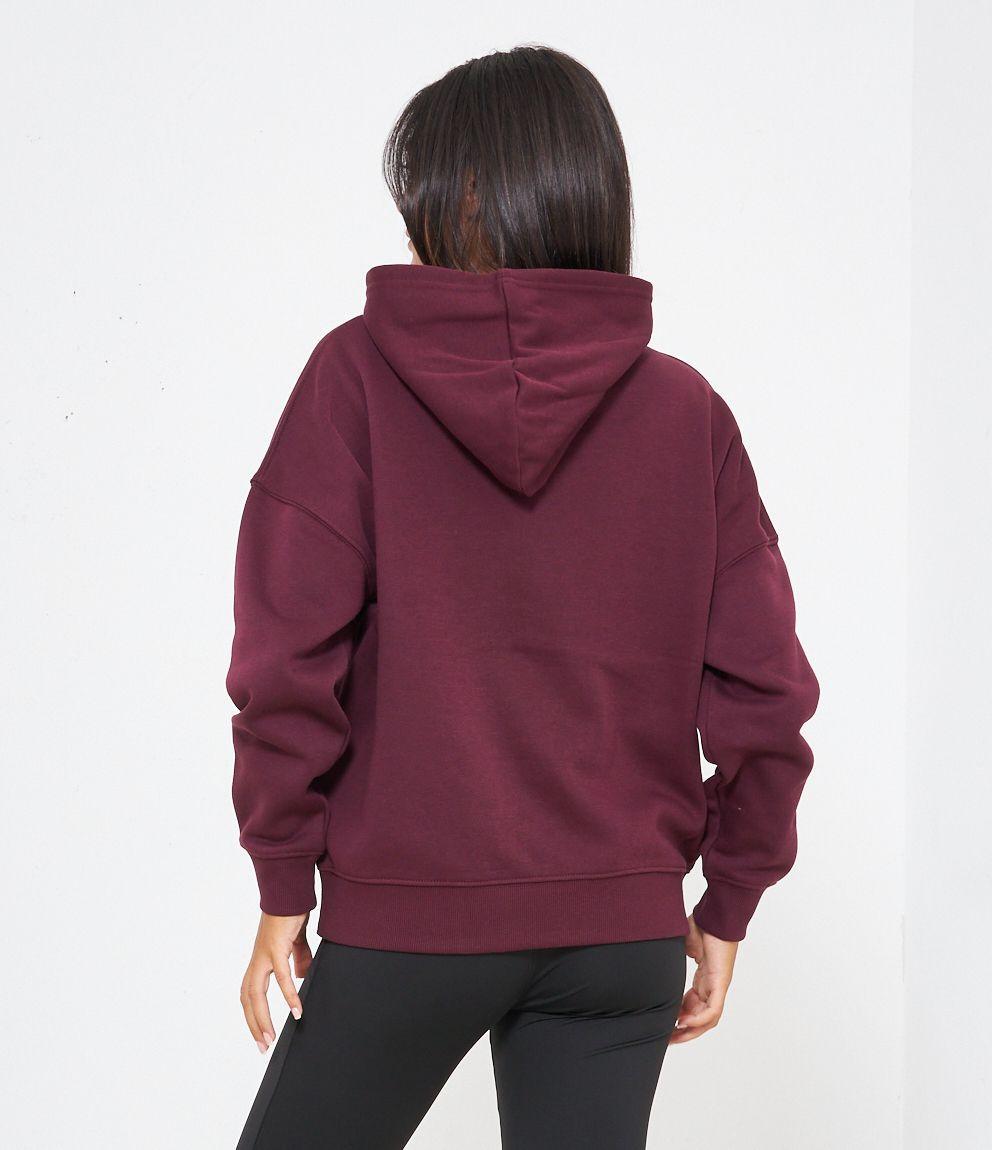 Felpa in cotone con cappuccio modello over con stampa frontale.