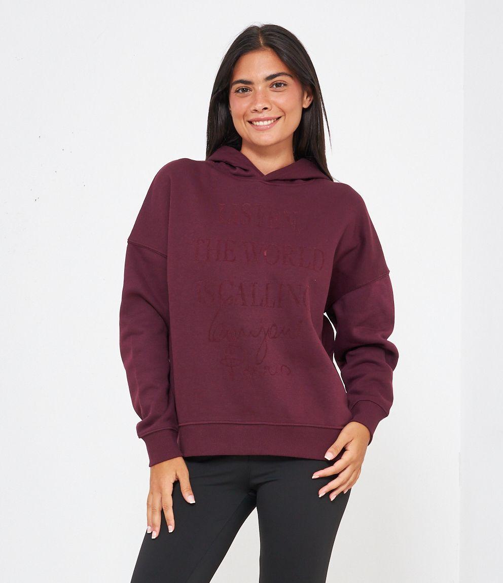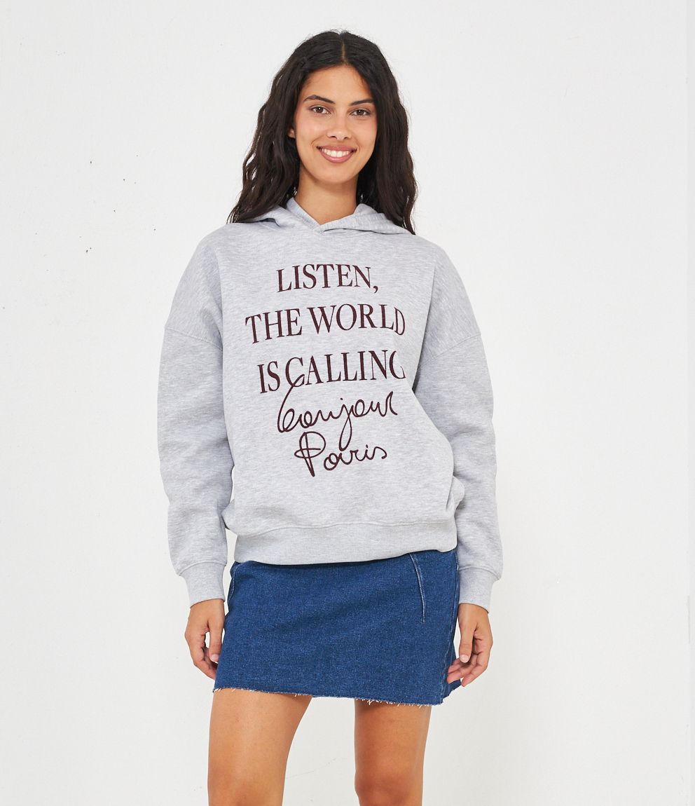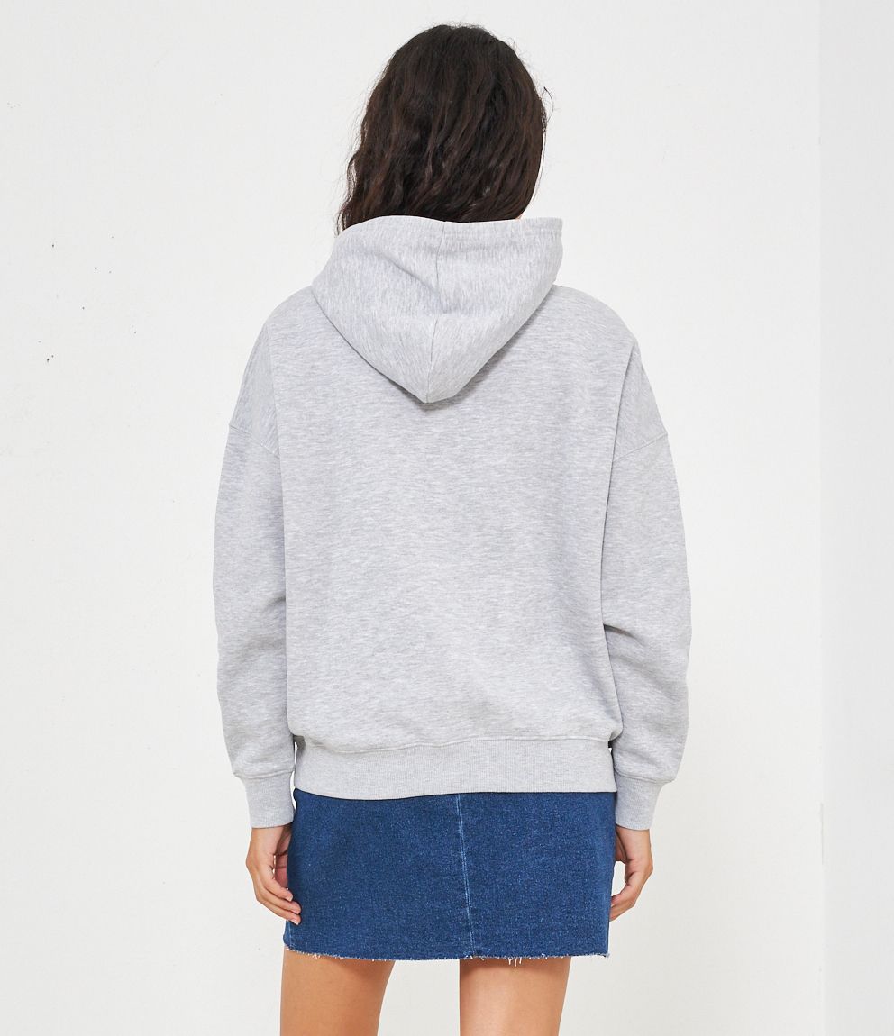 Felpa in cotone con cappuccio modello over con stampa frontale.