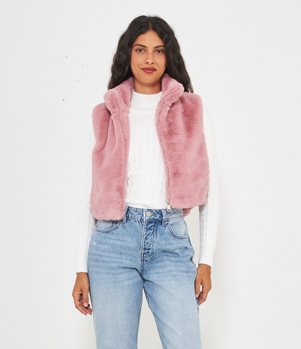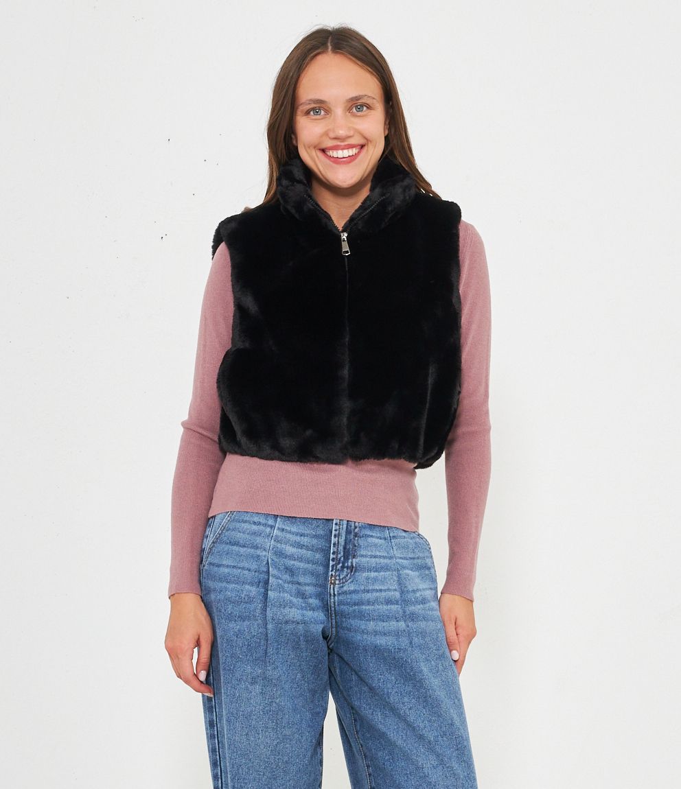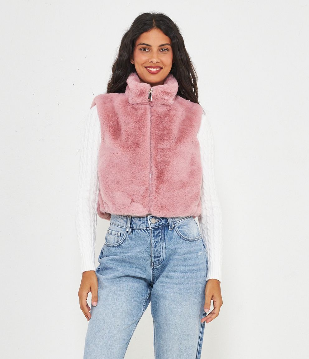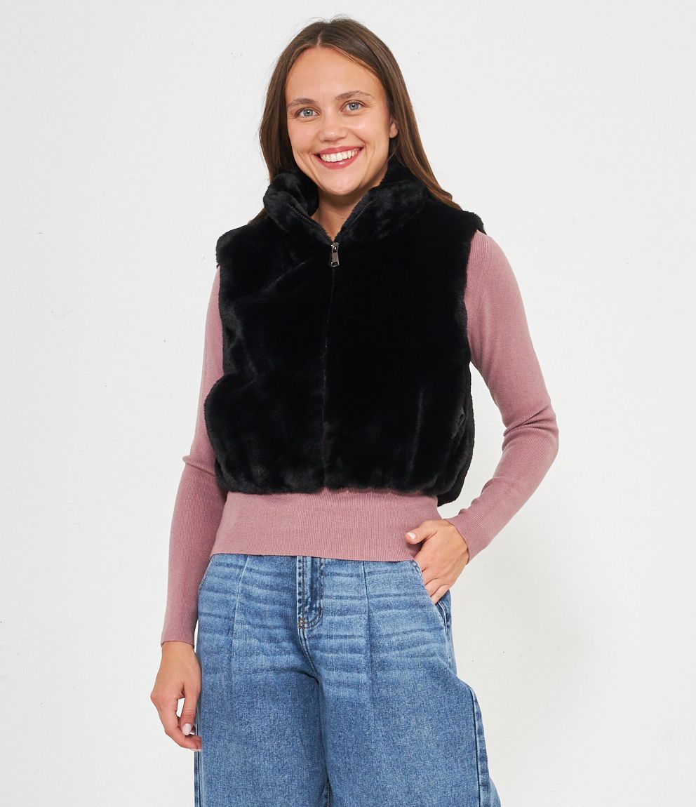 Gilet in pelliccia a collo alto con zip.