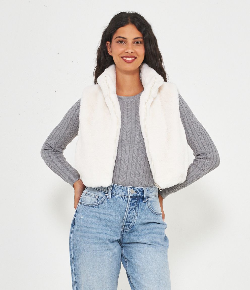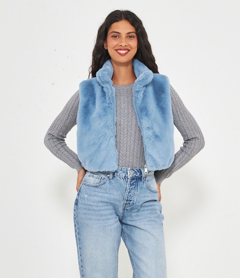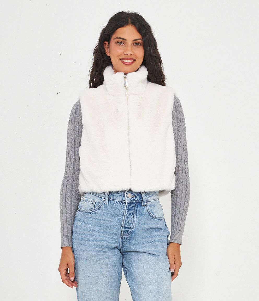 Gilet in pelliccia a collo alto con zip.