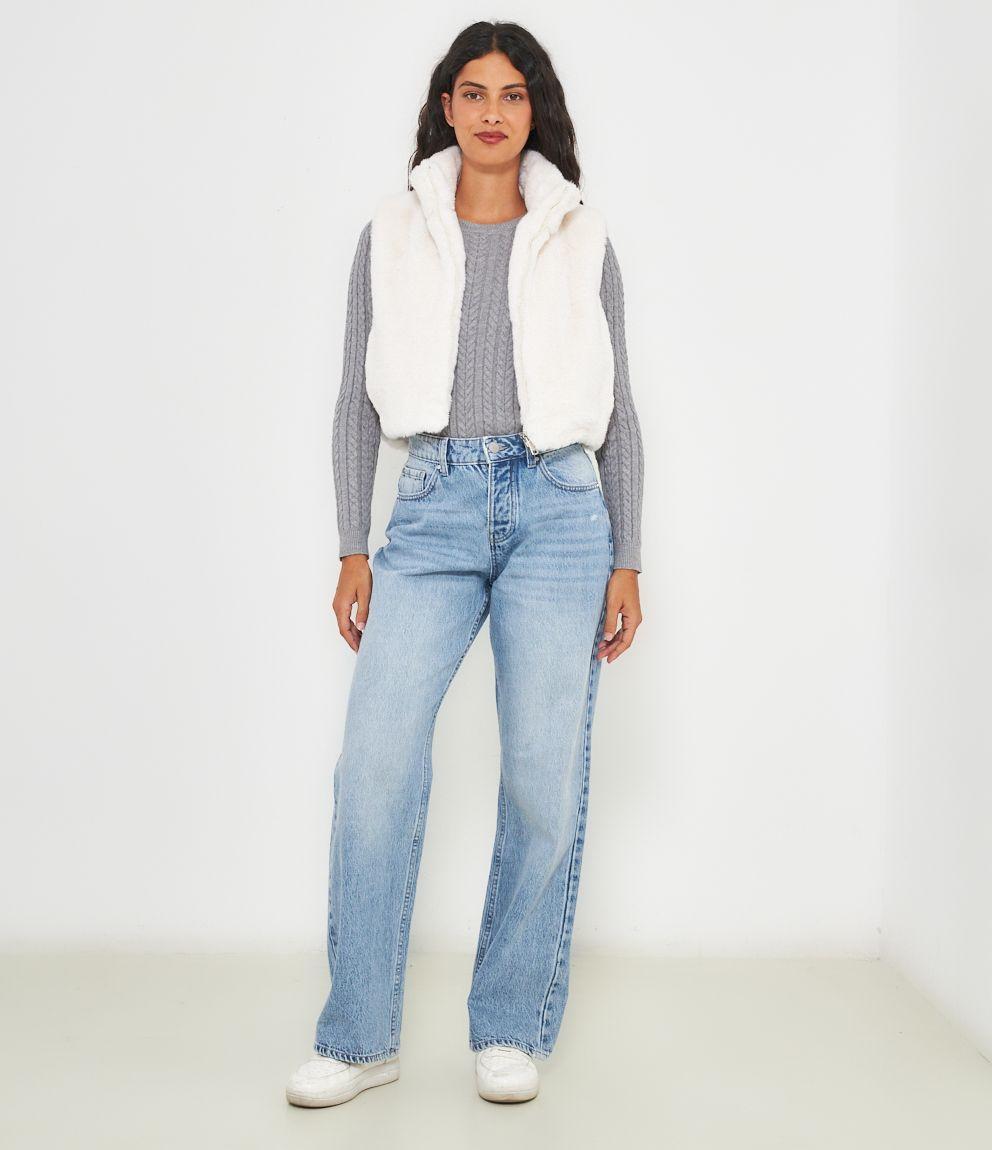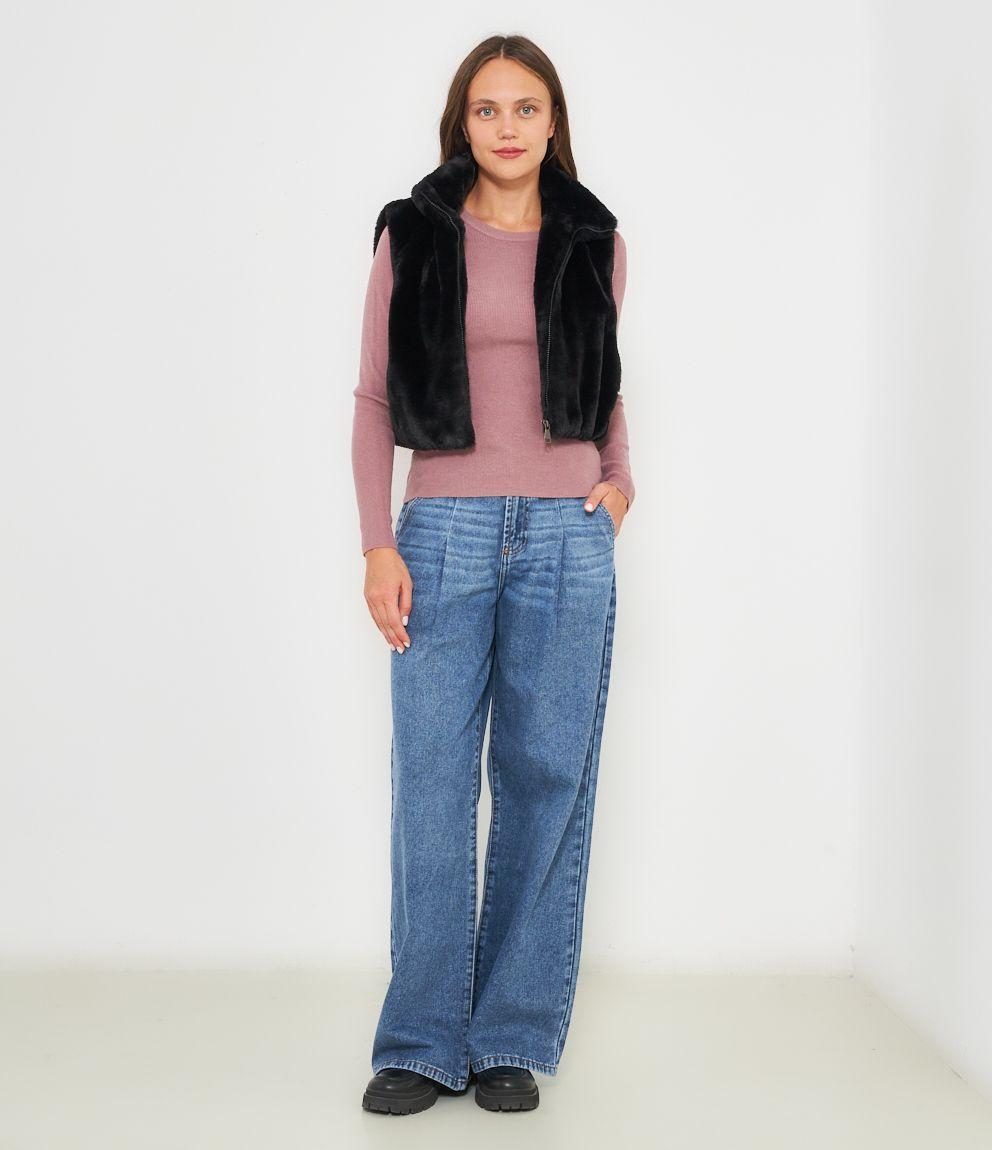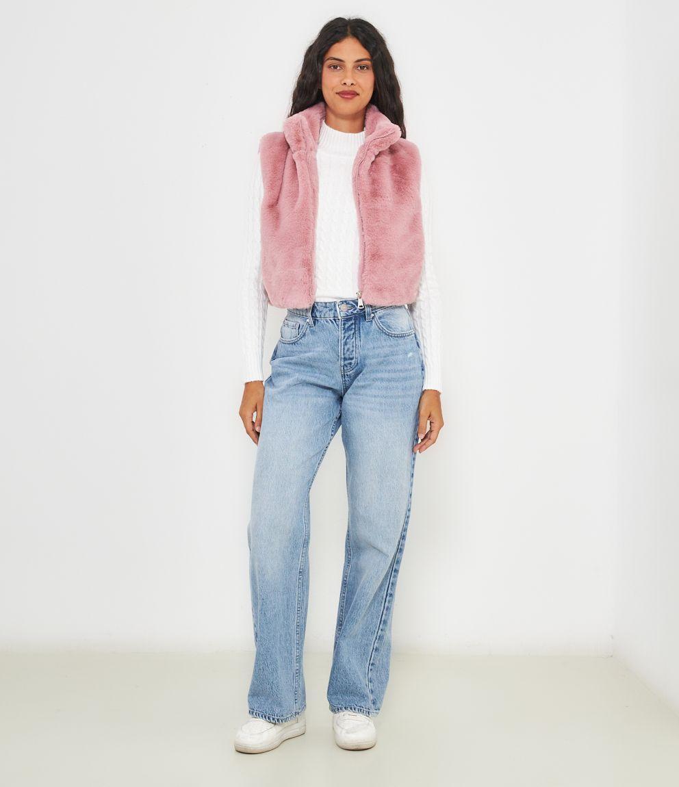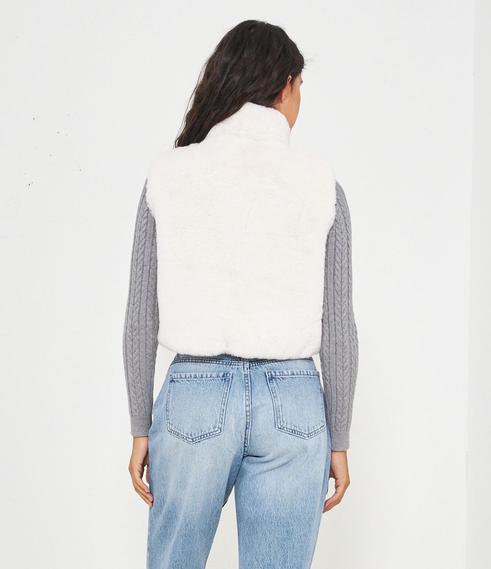 Gilet in pelliccia a collo alto con zip.
