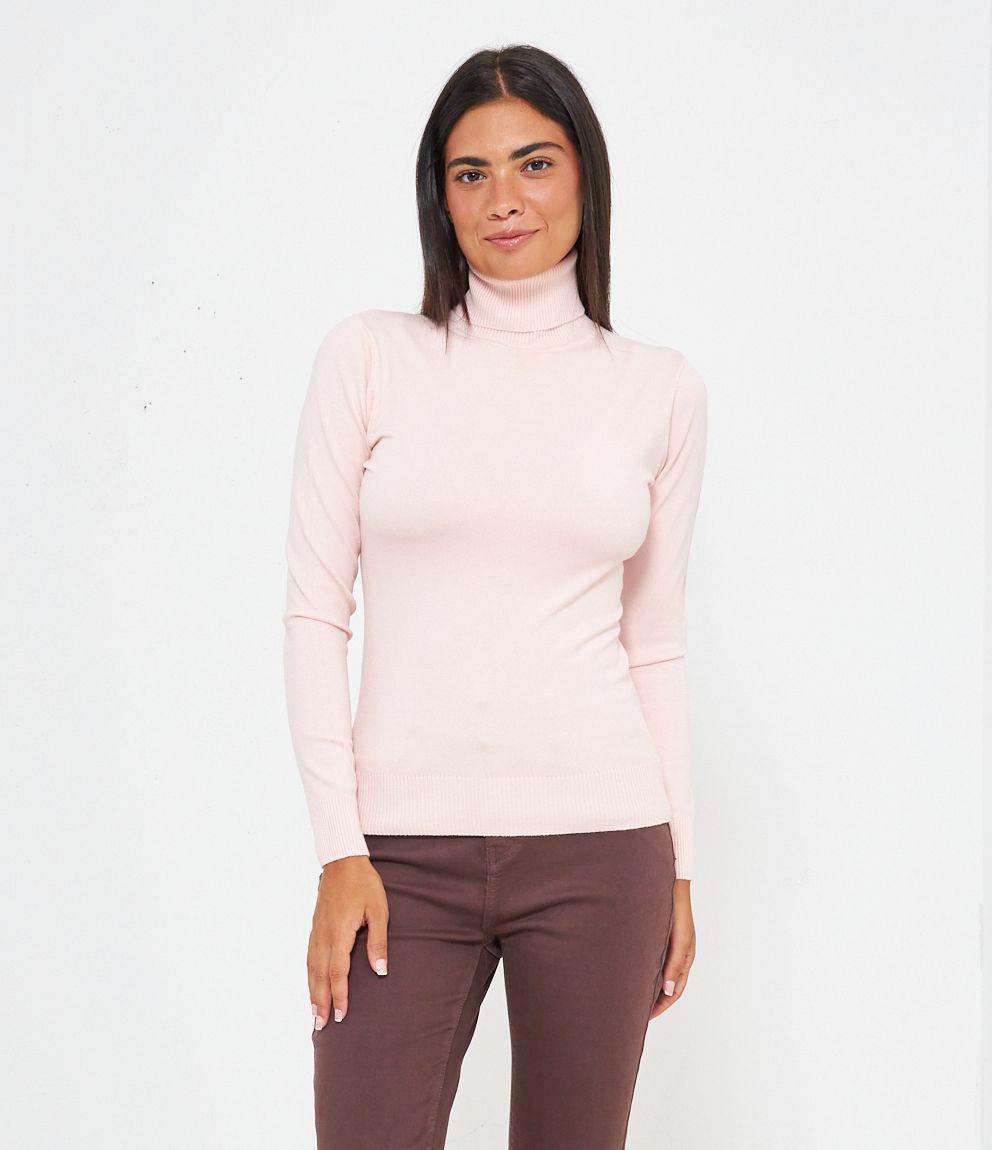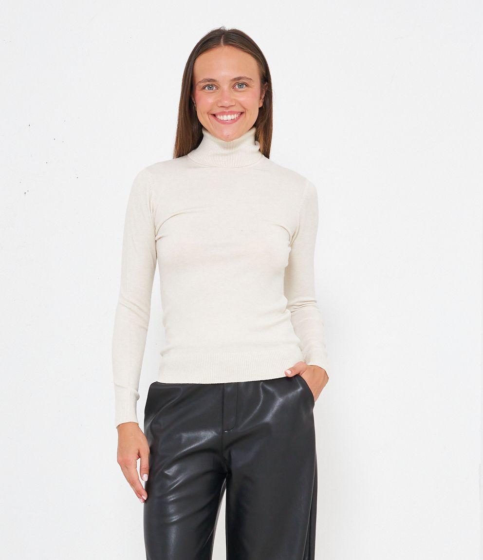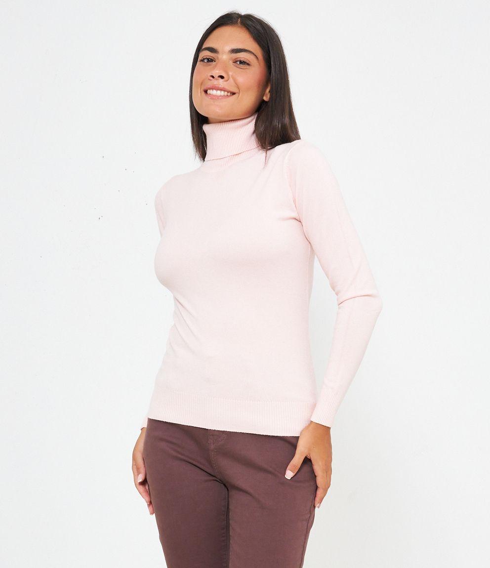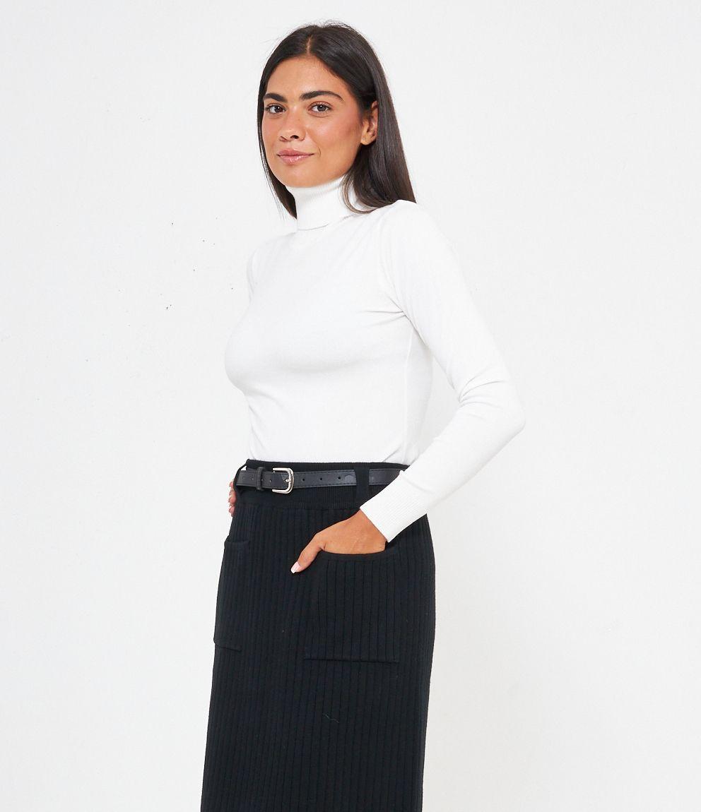 Maglia in viscosa a collo alto con risvolto, bordi a costine.