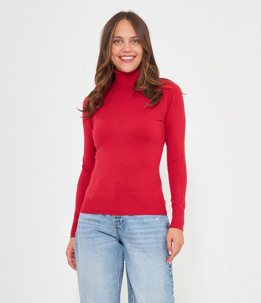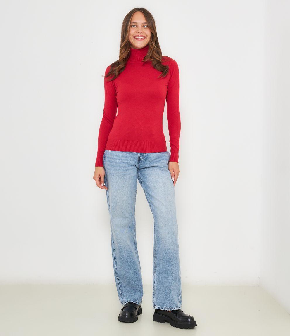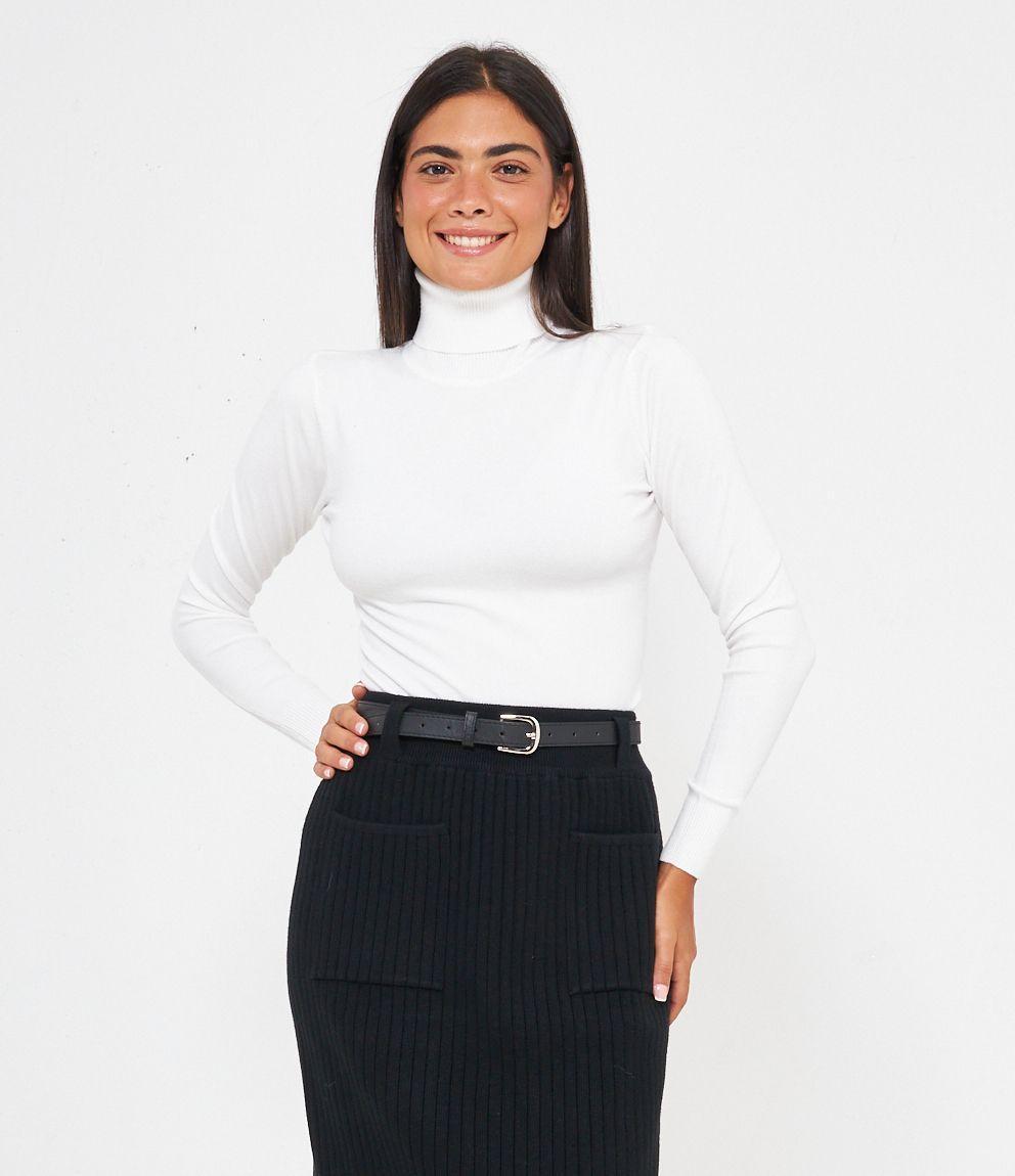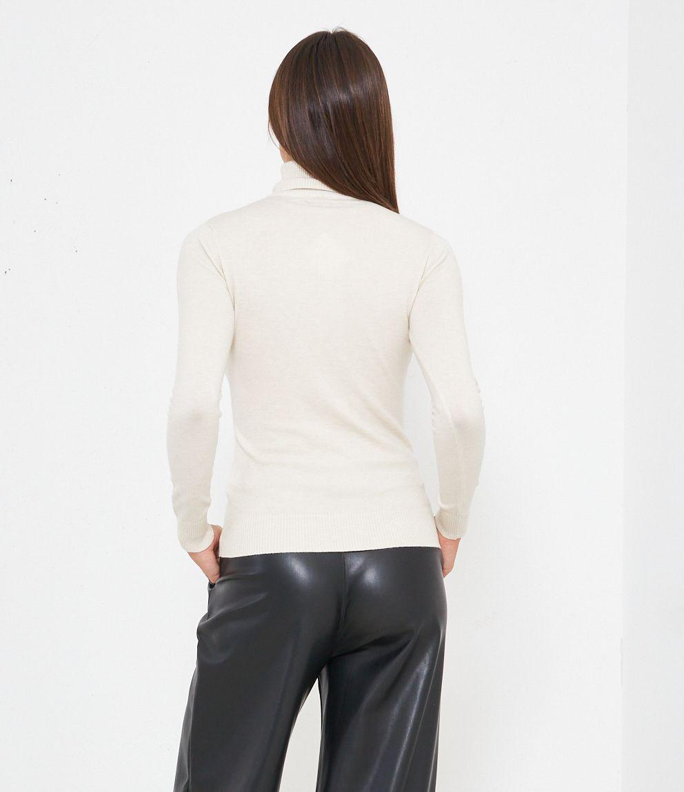 Maglia in viscosa a collo alto con risvolto, bordi a costine.