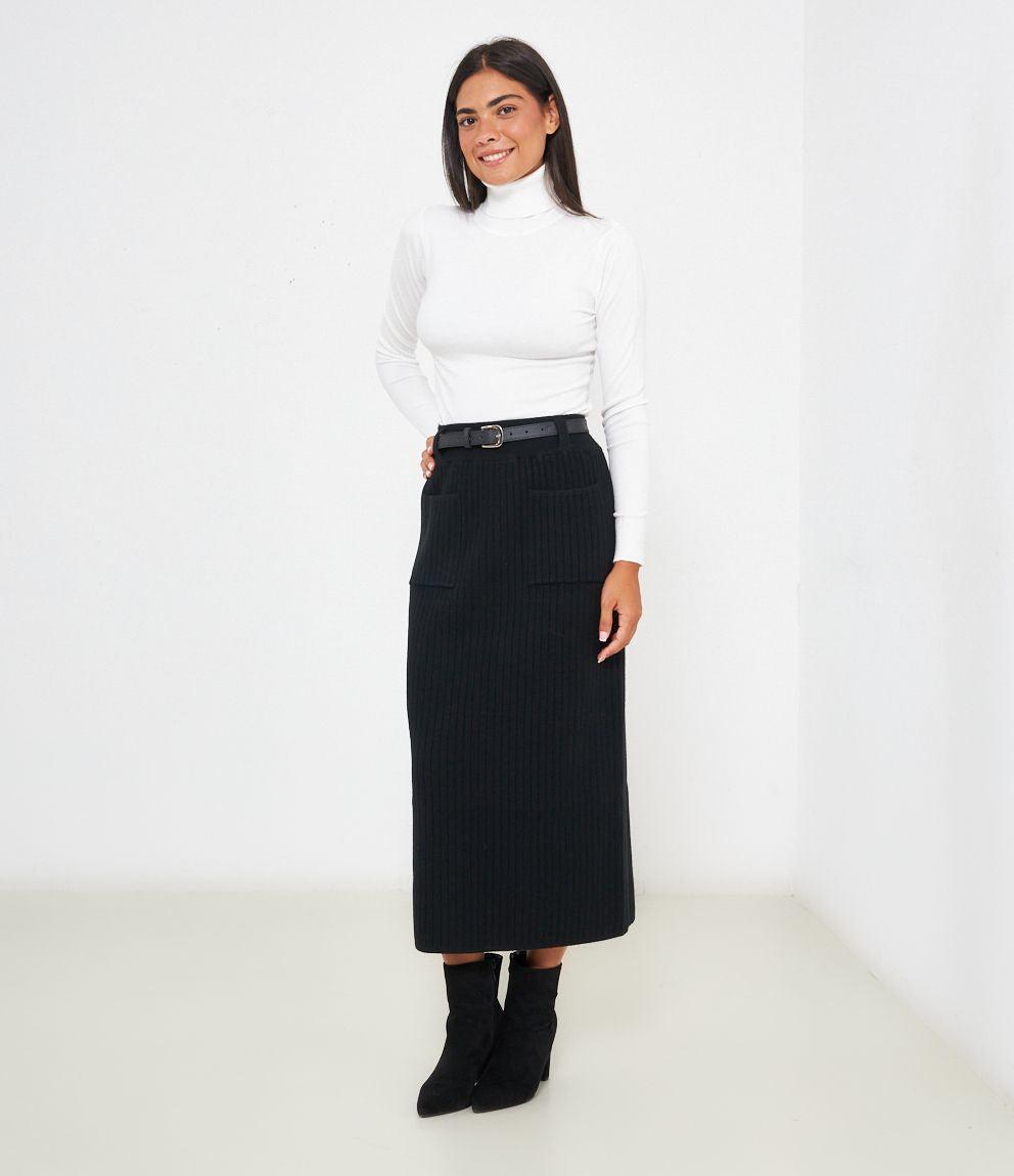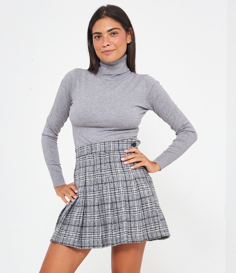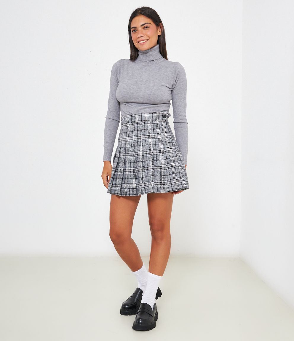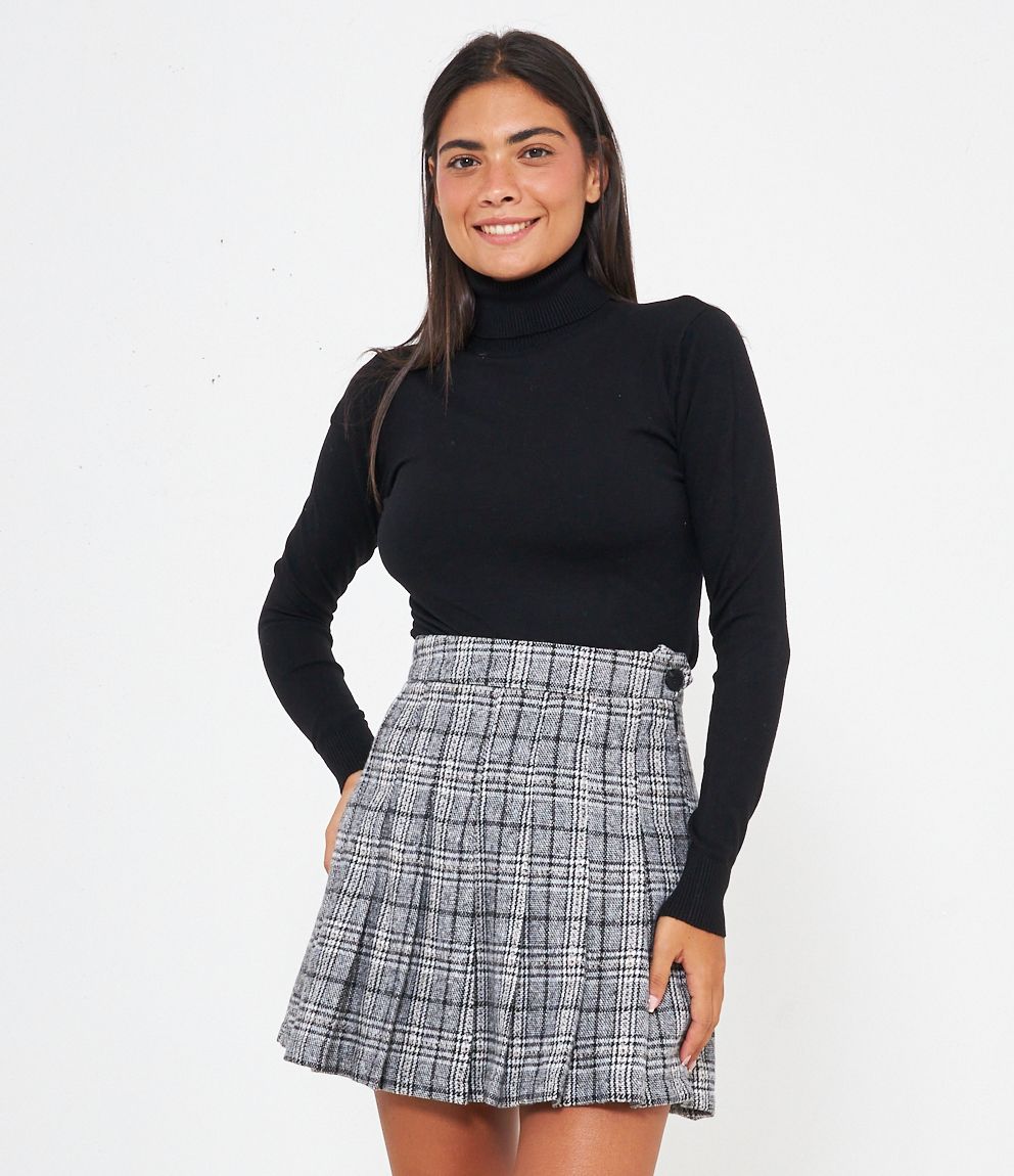 Maglia in viscosa a collo alto con risvolto, bordi a costine.