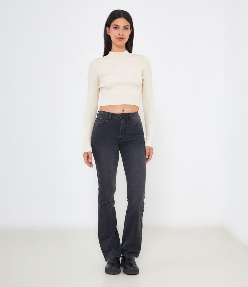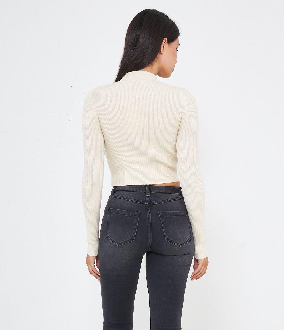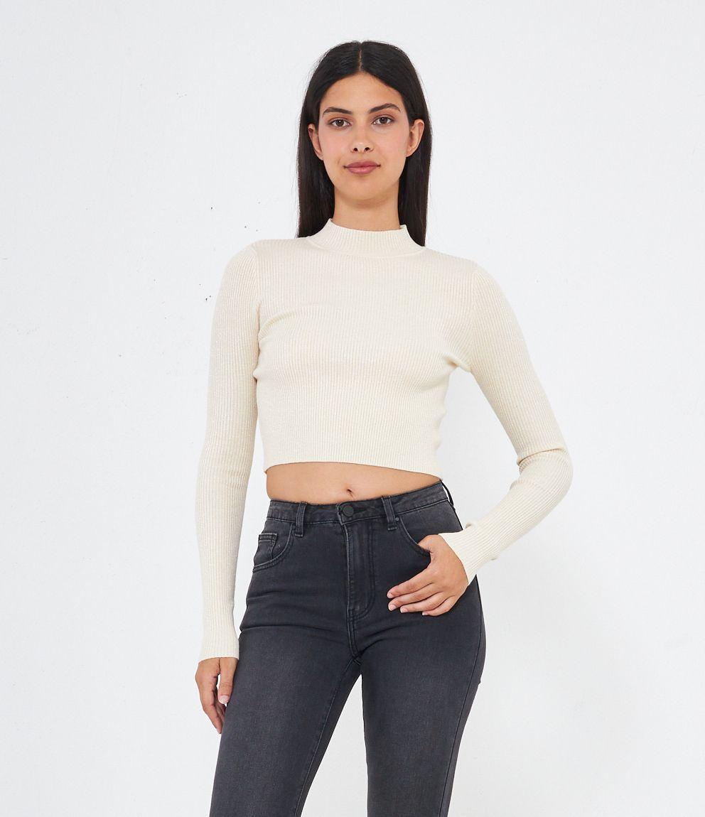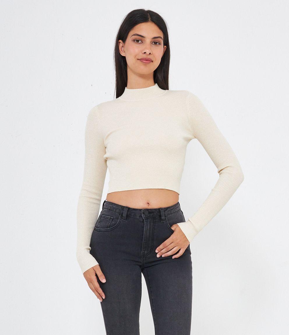 Maglia in lurex, modello crop a costine con mezzo collo.