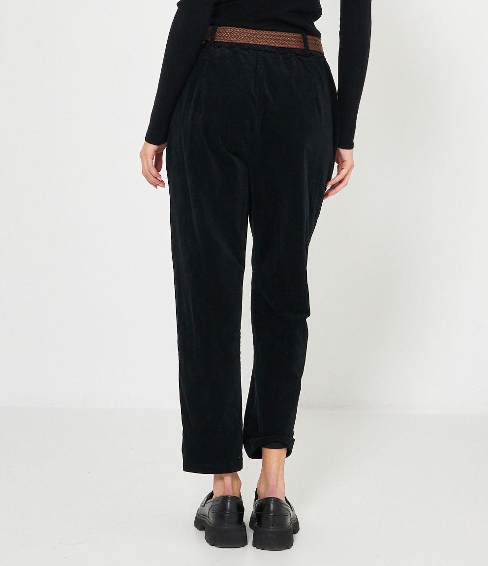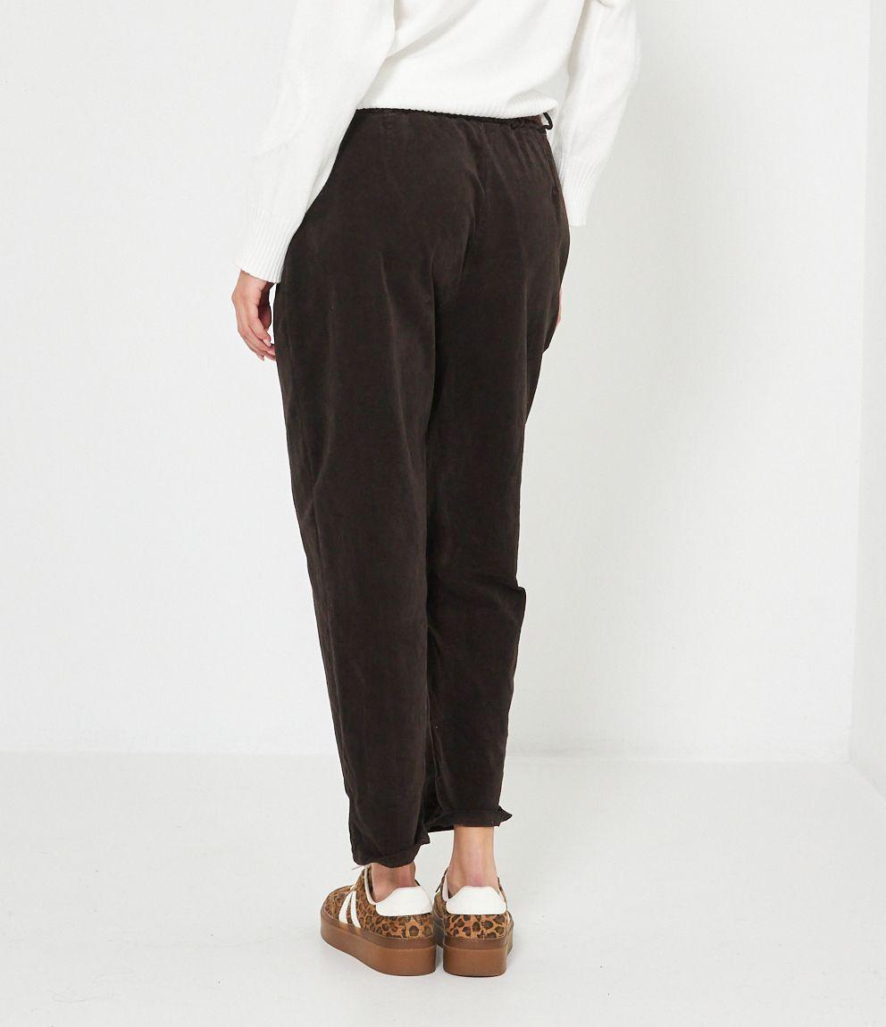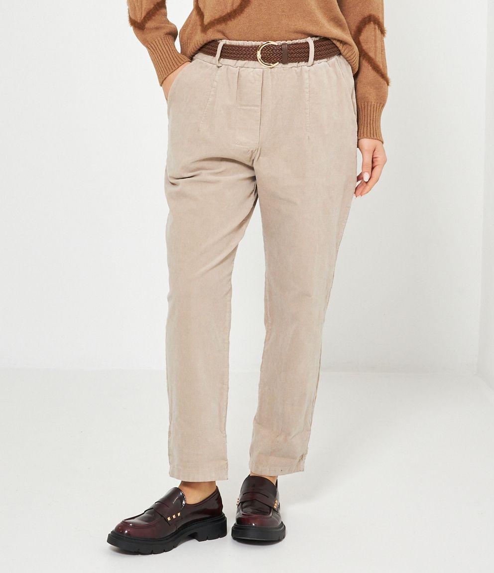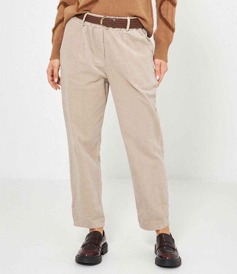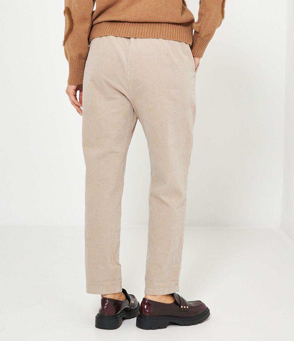 Pantaloni in ciniglia con vita elasticizzata, tasche laterali e cintura.