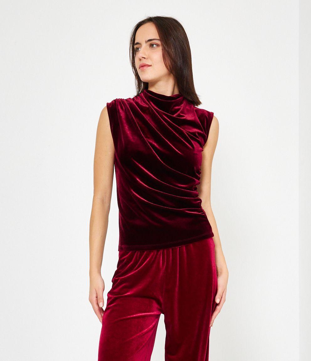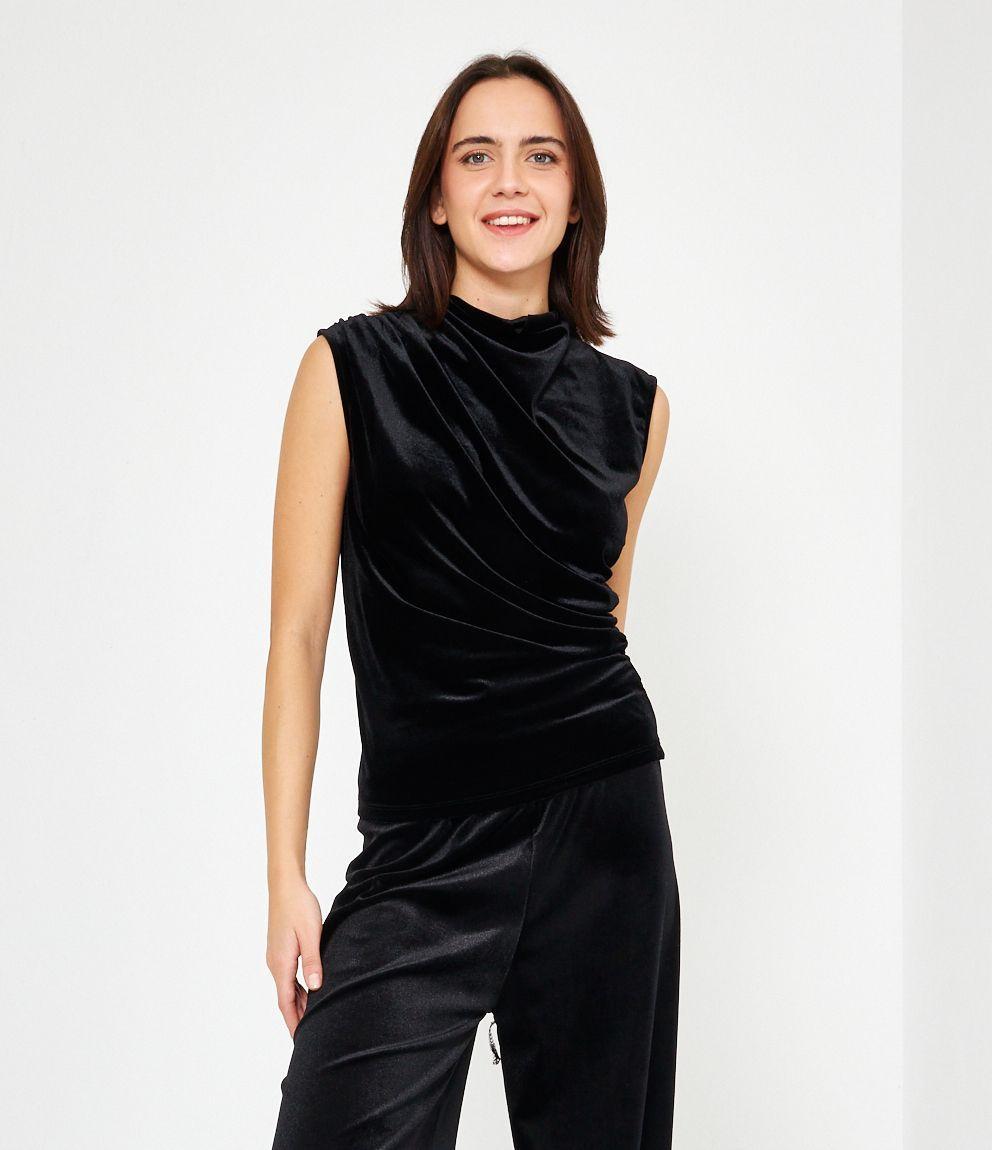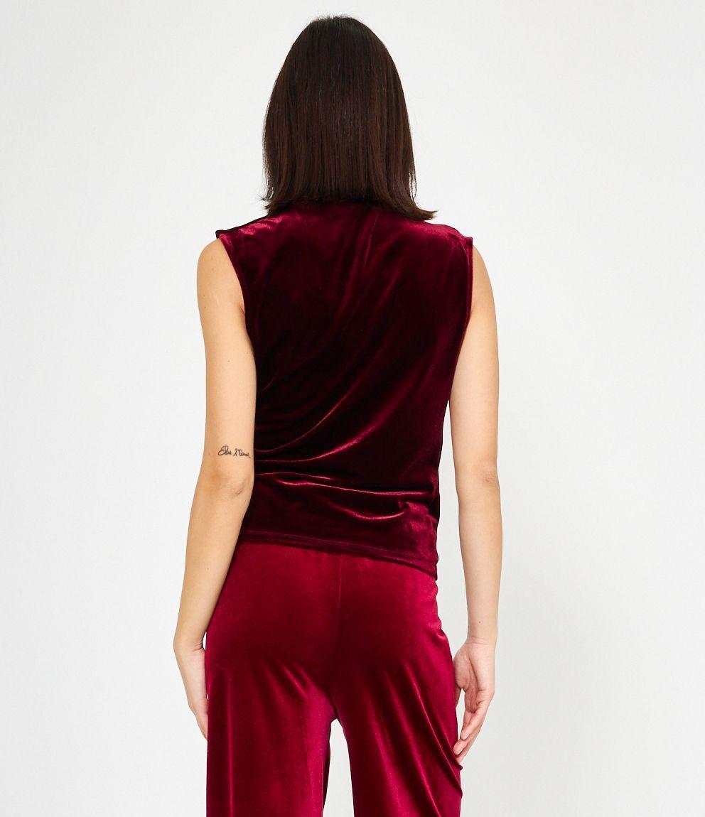 Canotta a mezzo collo in ciniglia con bottoni sul retro.