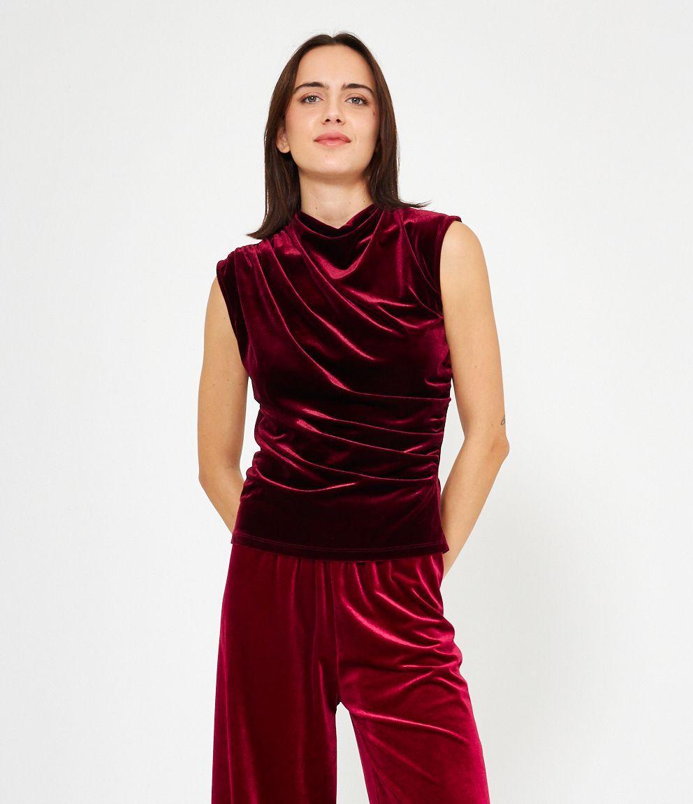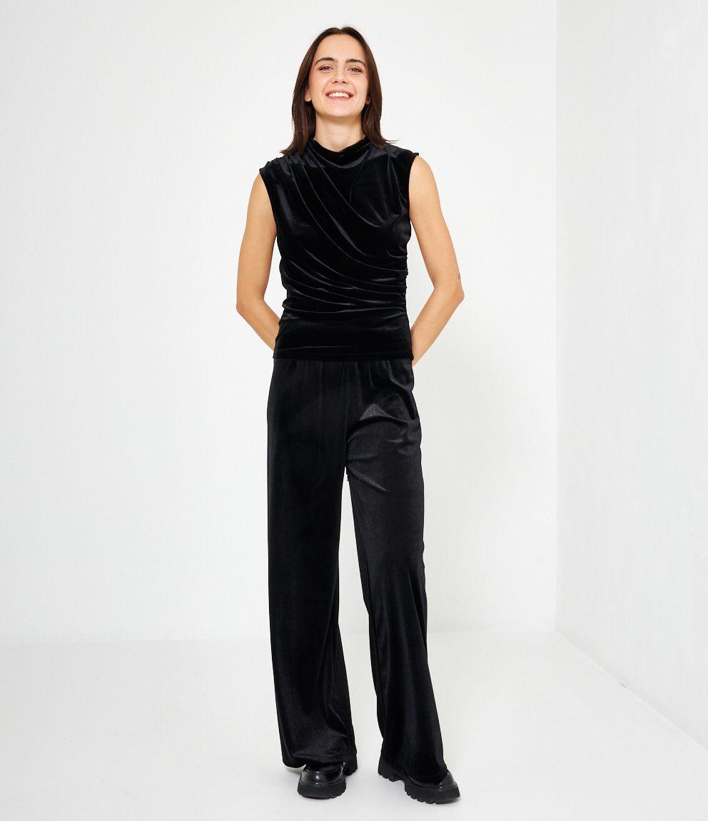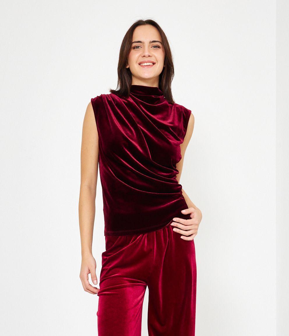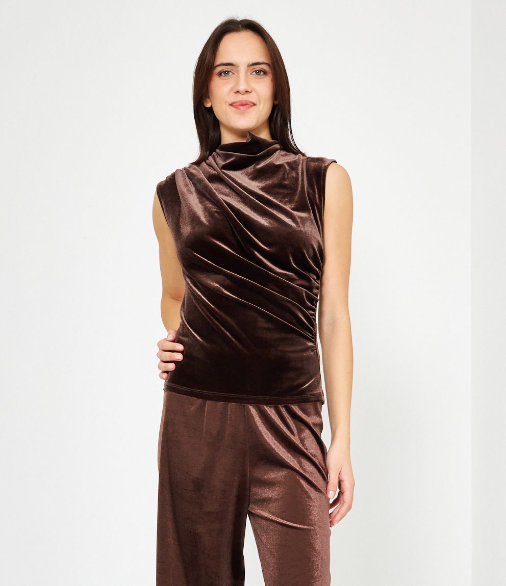 Canotta a mezzo collo in ciniglia con bottoni sul retro.