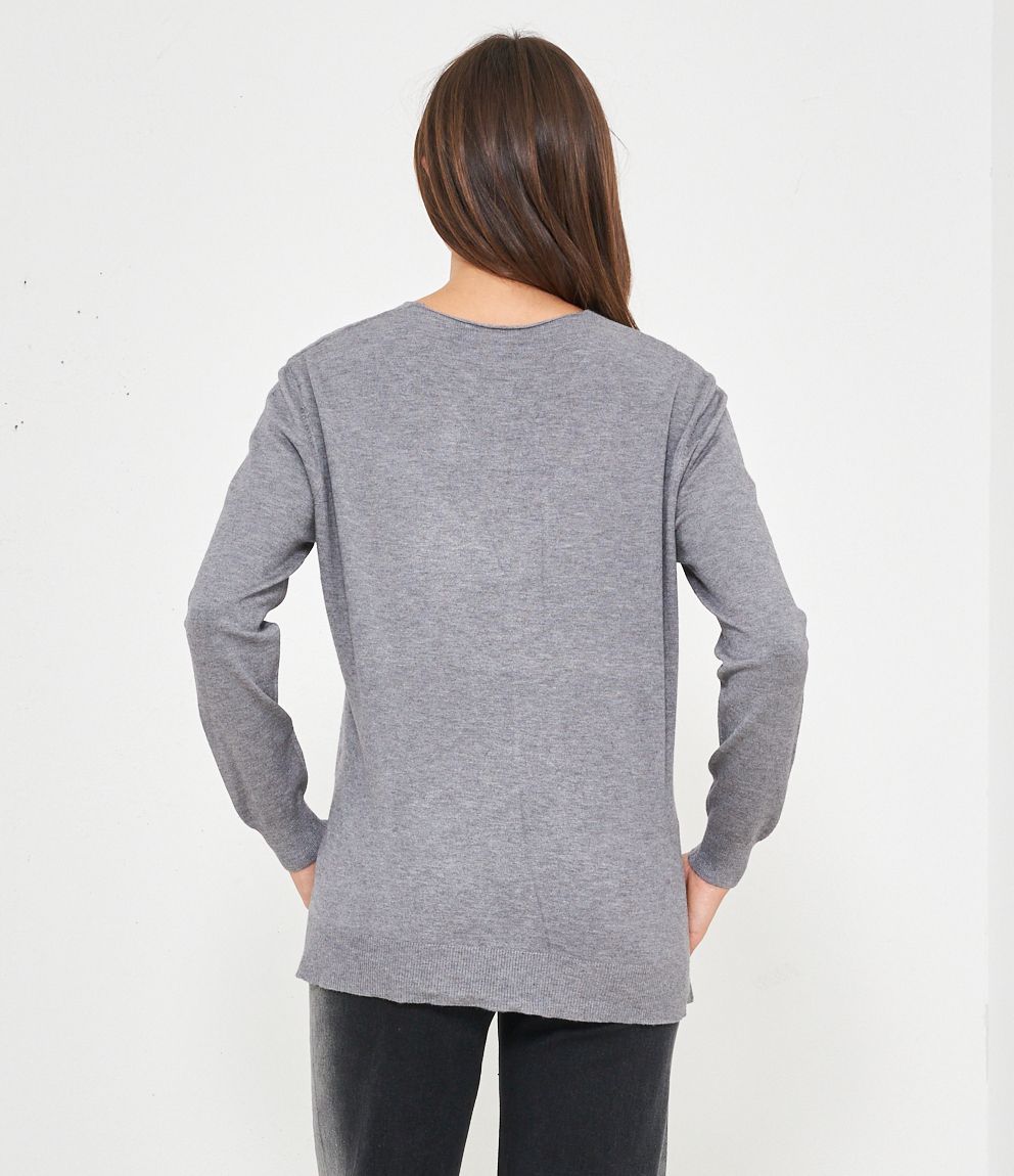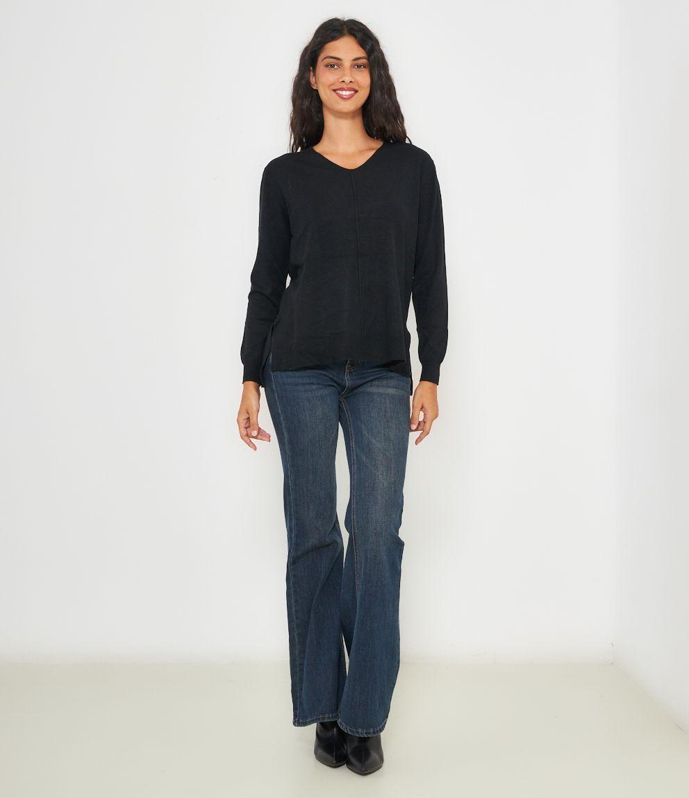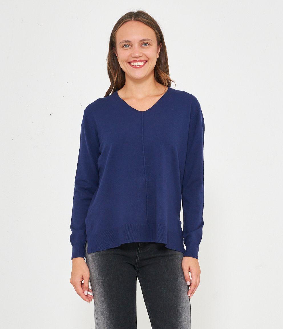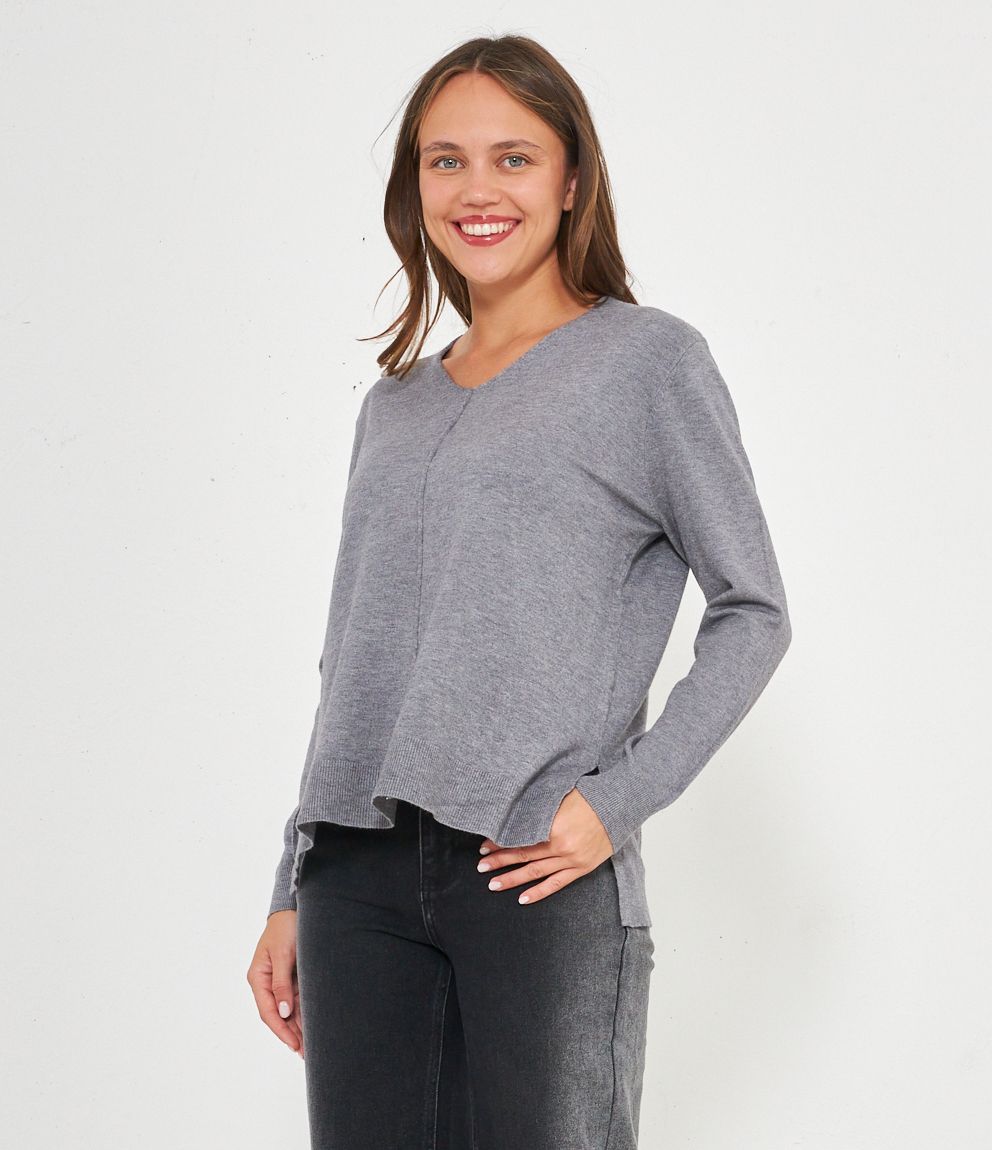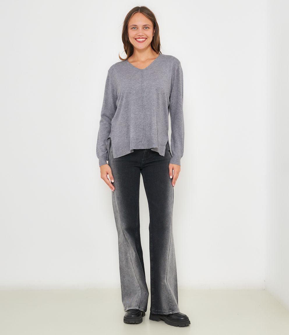 Maglia modello comfy con cucitura a vista, scollo a V e spacchi laterali.