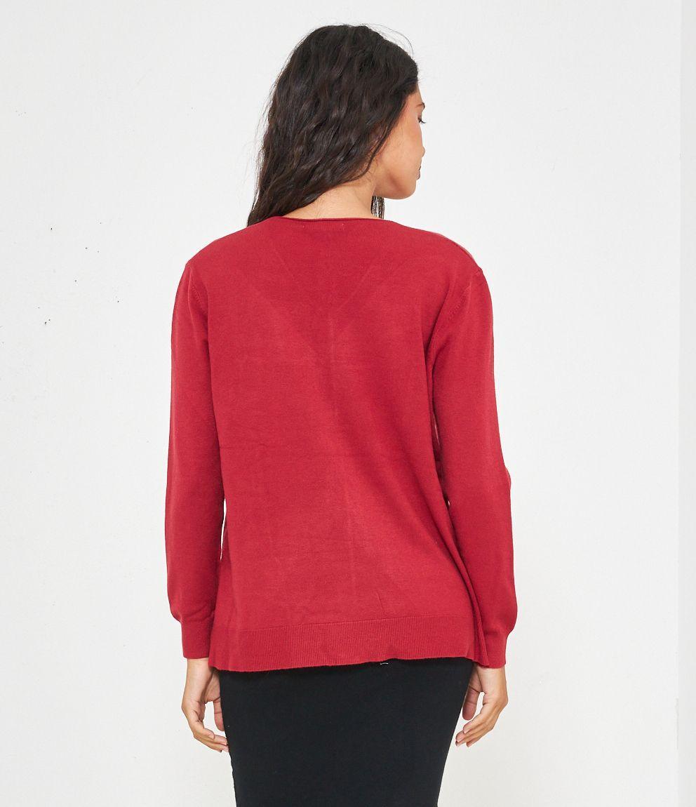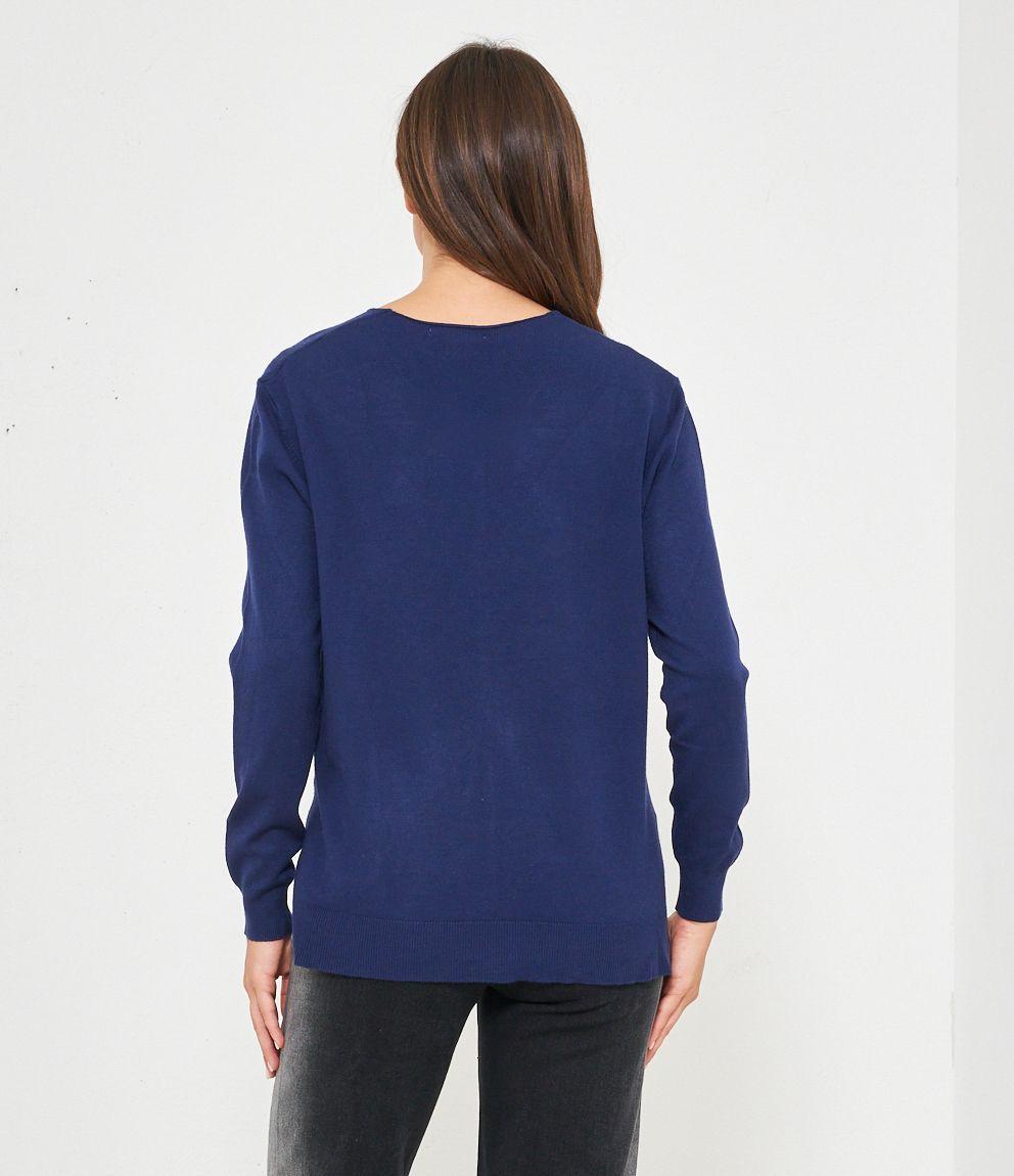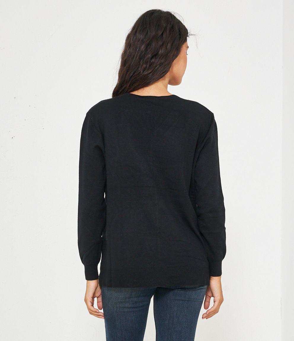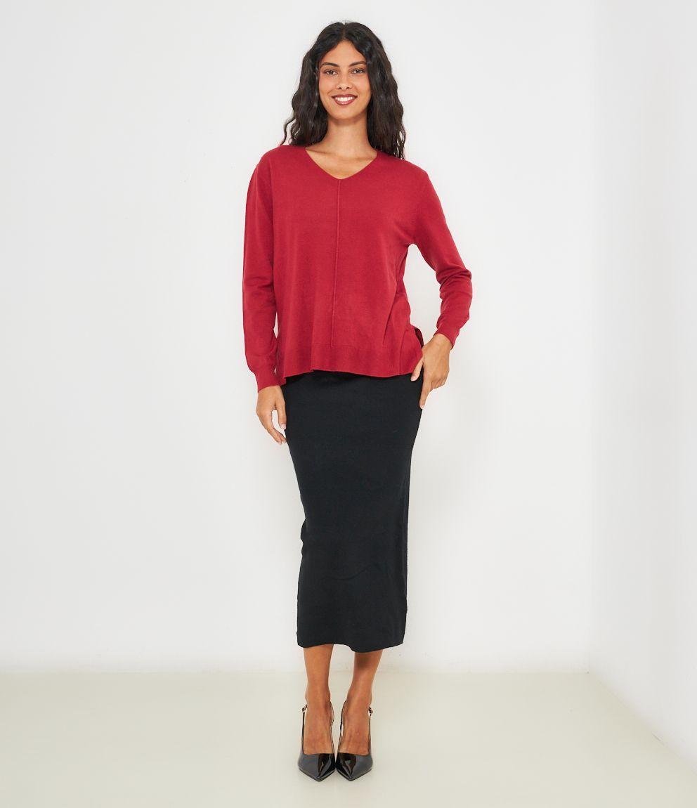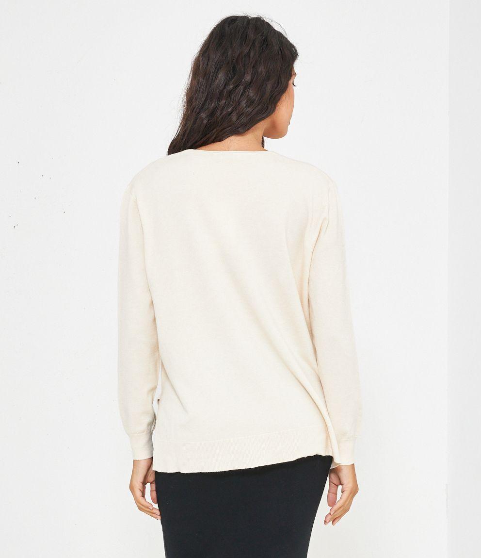 Maglia modello comfy con cucitura a vista, scollo a V e spacchi laterali.