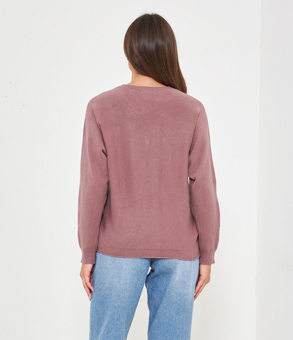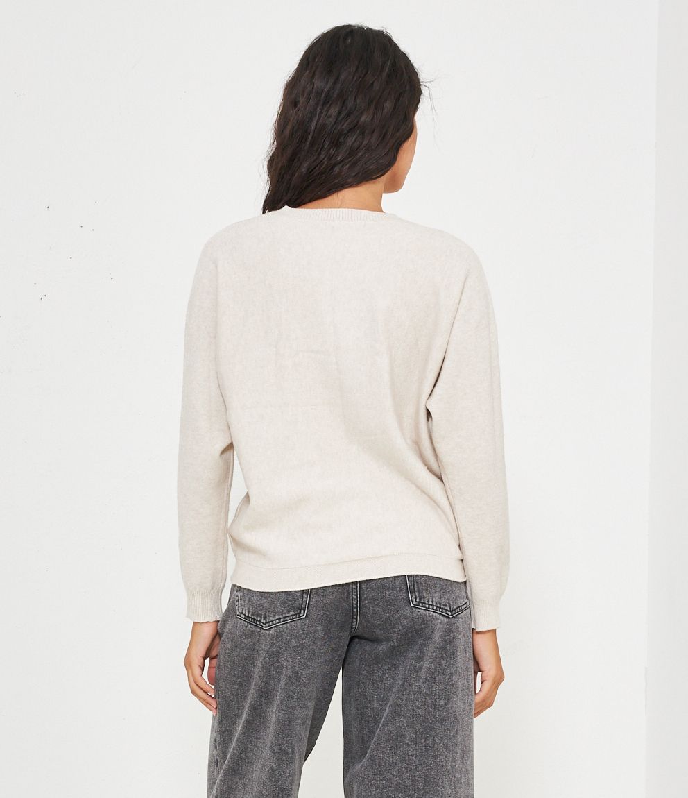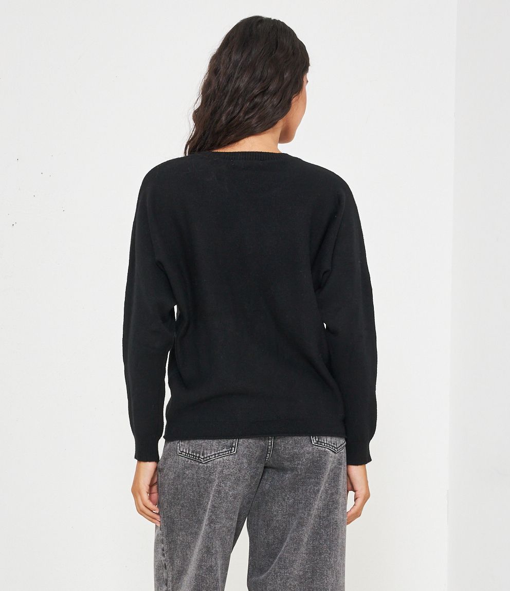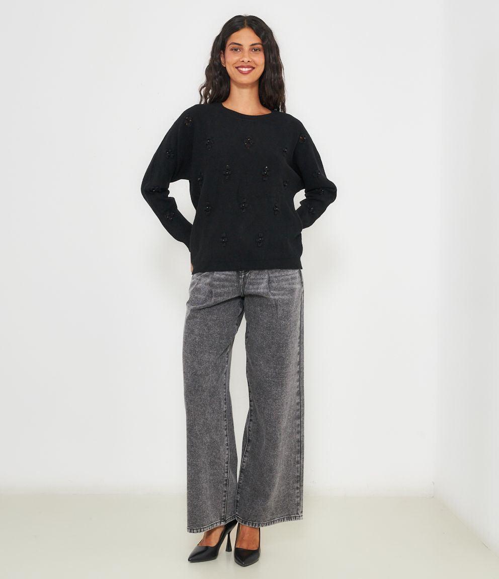 Maglia modello over con ricami a rilievo, girocollo e bordi a costine.