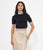 Maglia con drappeggio centrale, coppe preformate e girocollo.