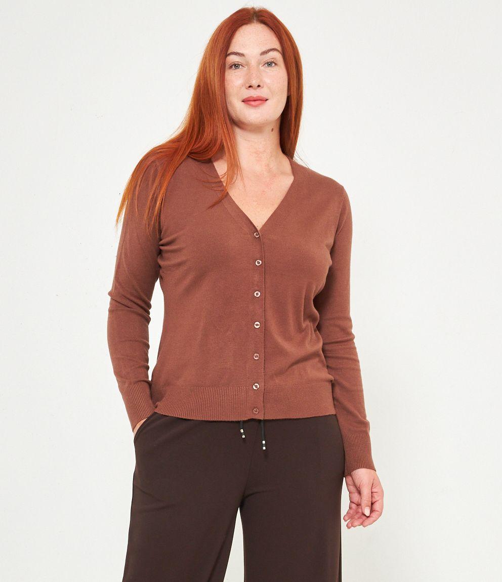 Cardigan in viscosa con scollo a V e bottoni.