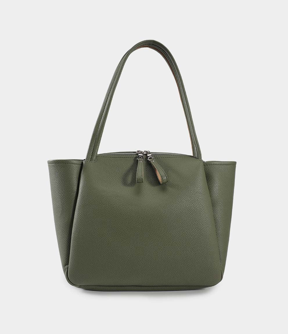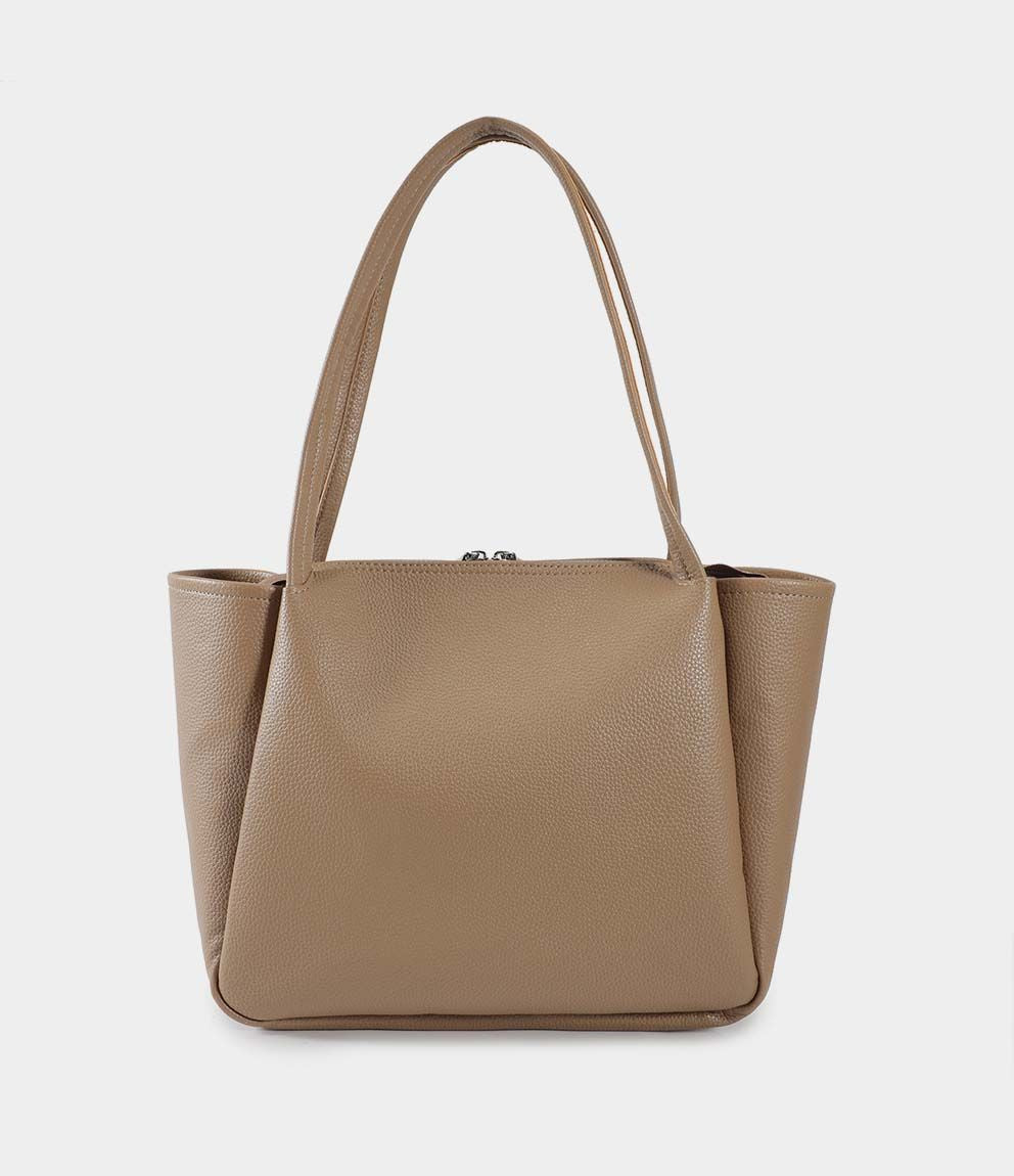 Borsa modello shopper a spalla con manici e chiusura con doppia zip.