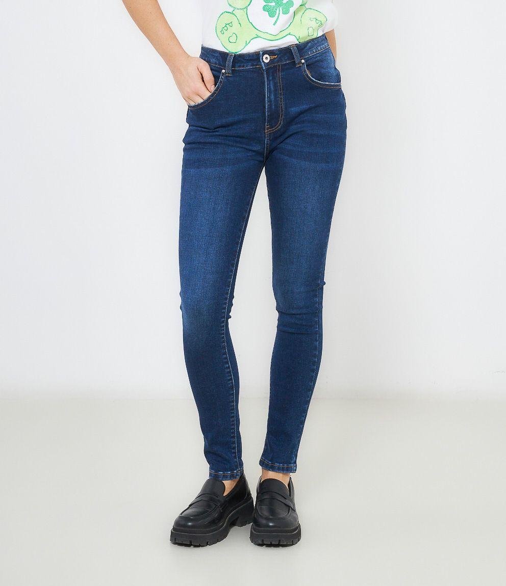 Push-up jeans available in various washes. Features five pockets and a zip and button closure.