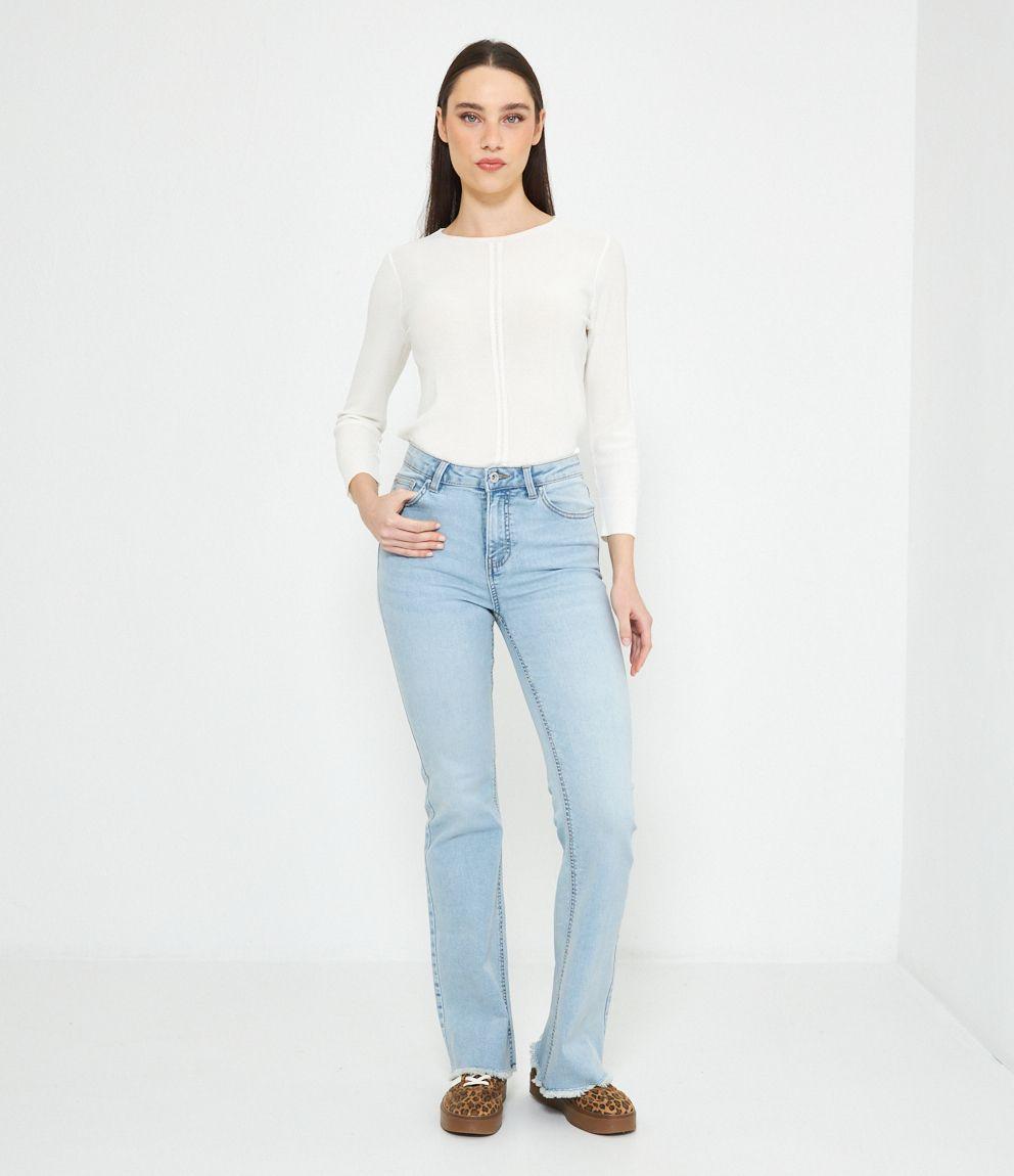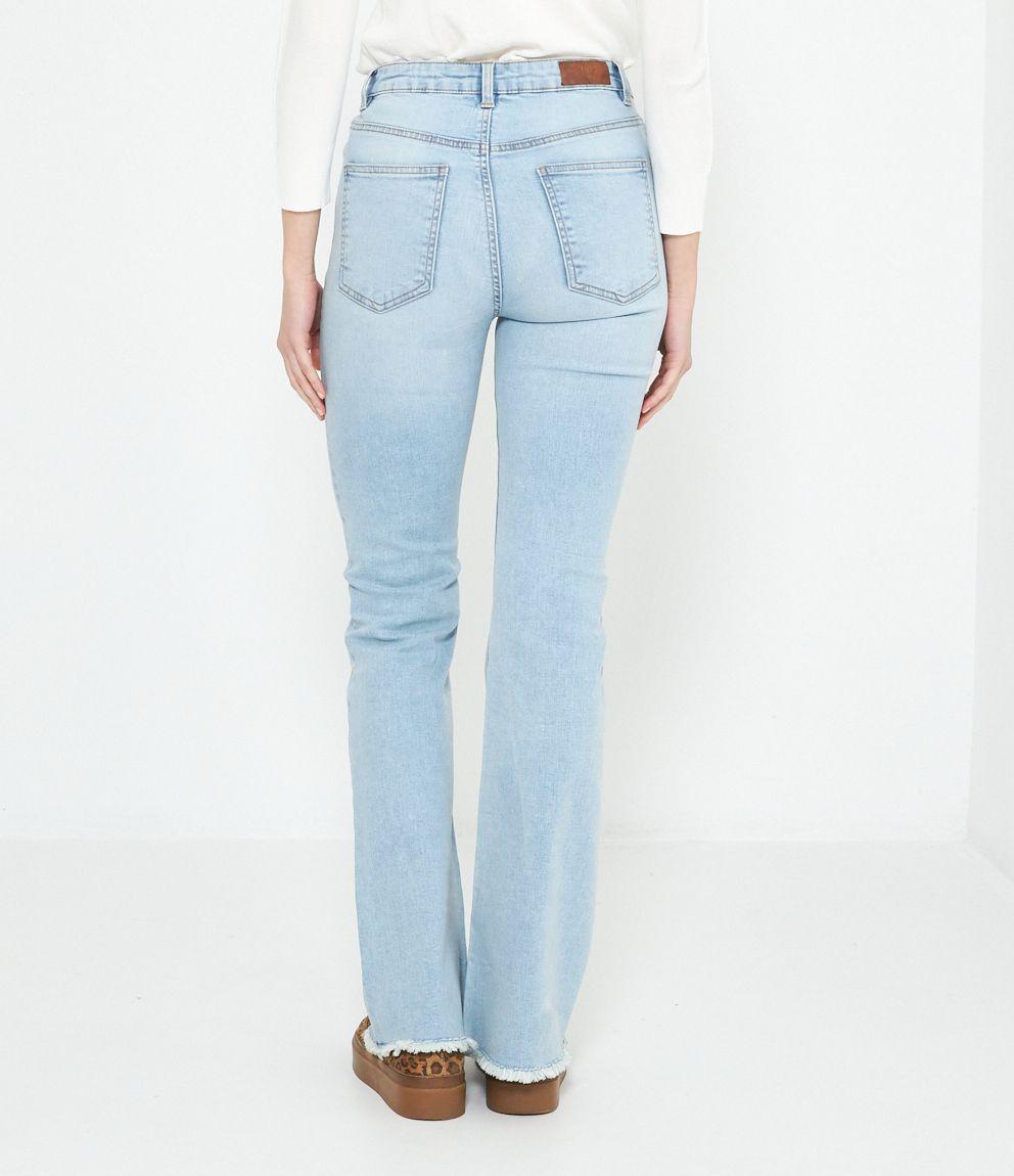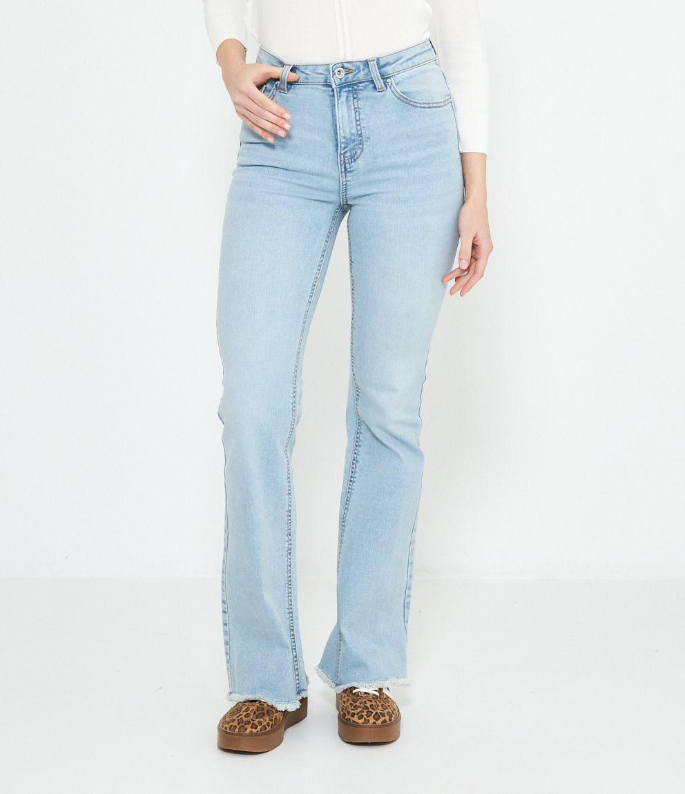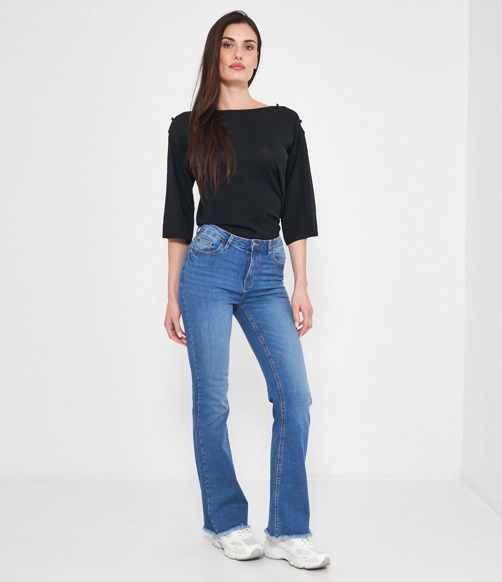 Jeans modello flare con fondo sfrangiato.