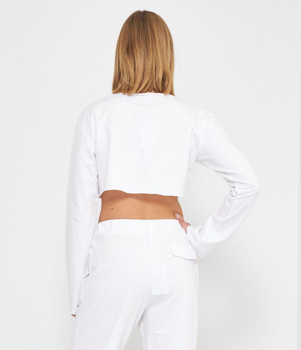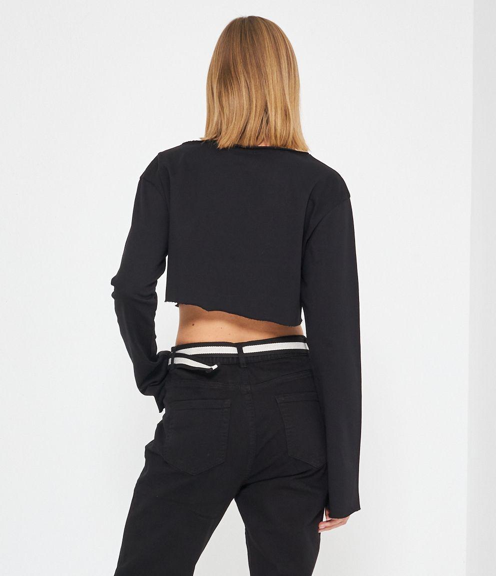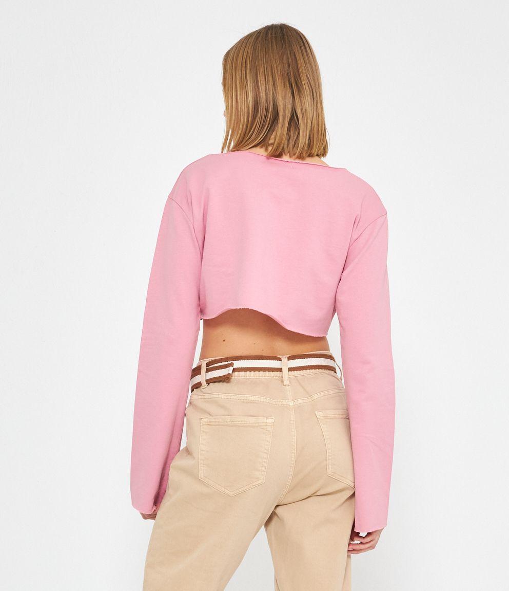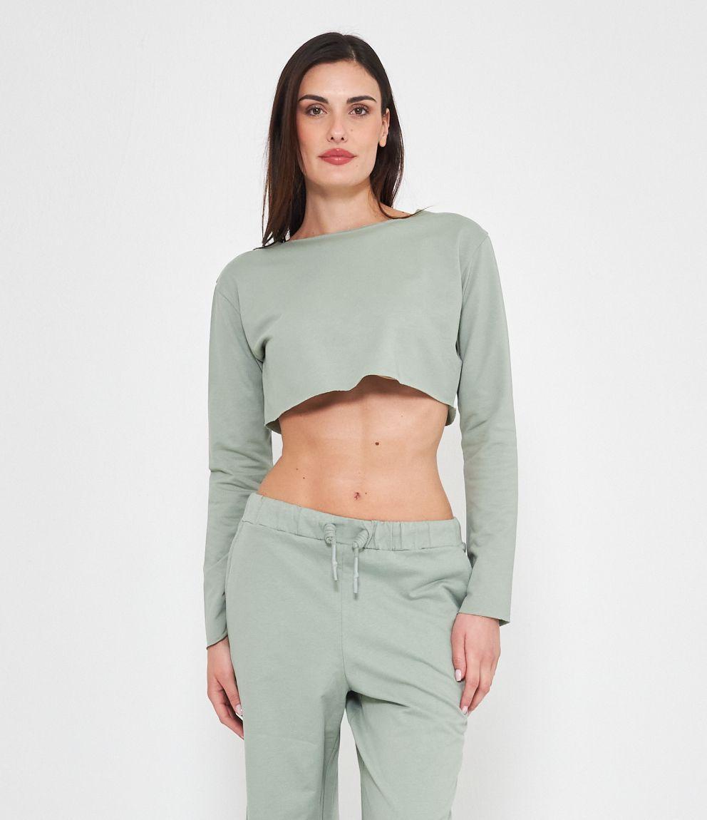 Felpa modello crop a taglio vivo e scollo tondo.