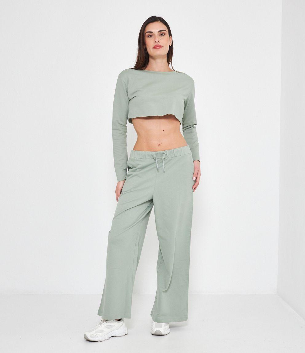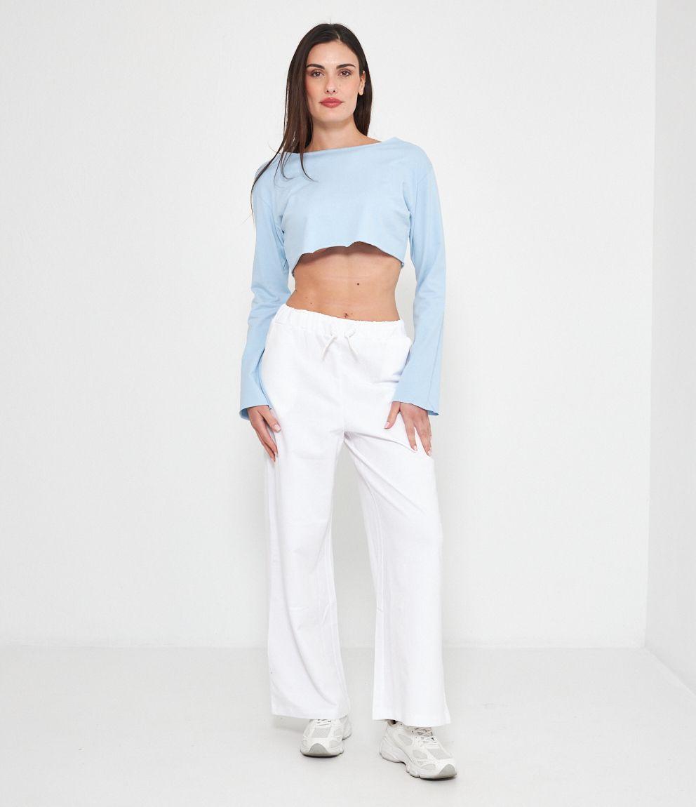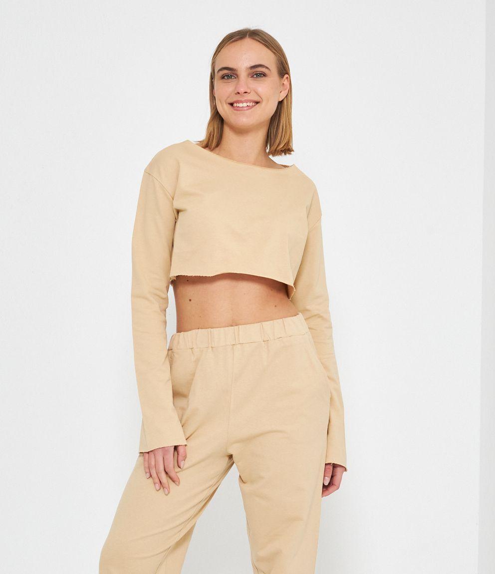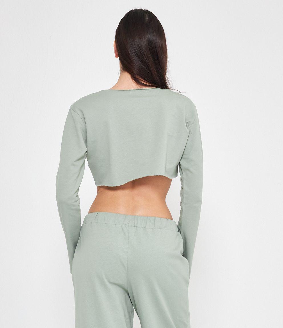 Felpa modello crop a taglio vivo e scollo tondo.