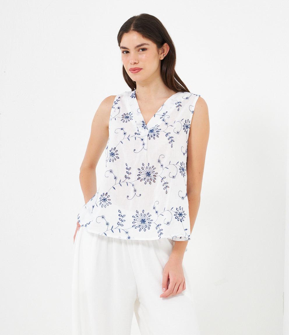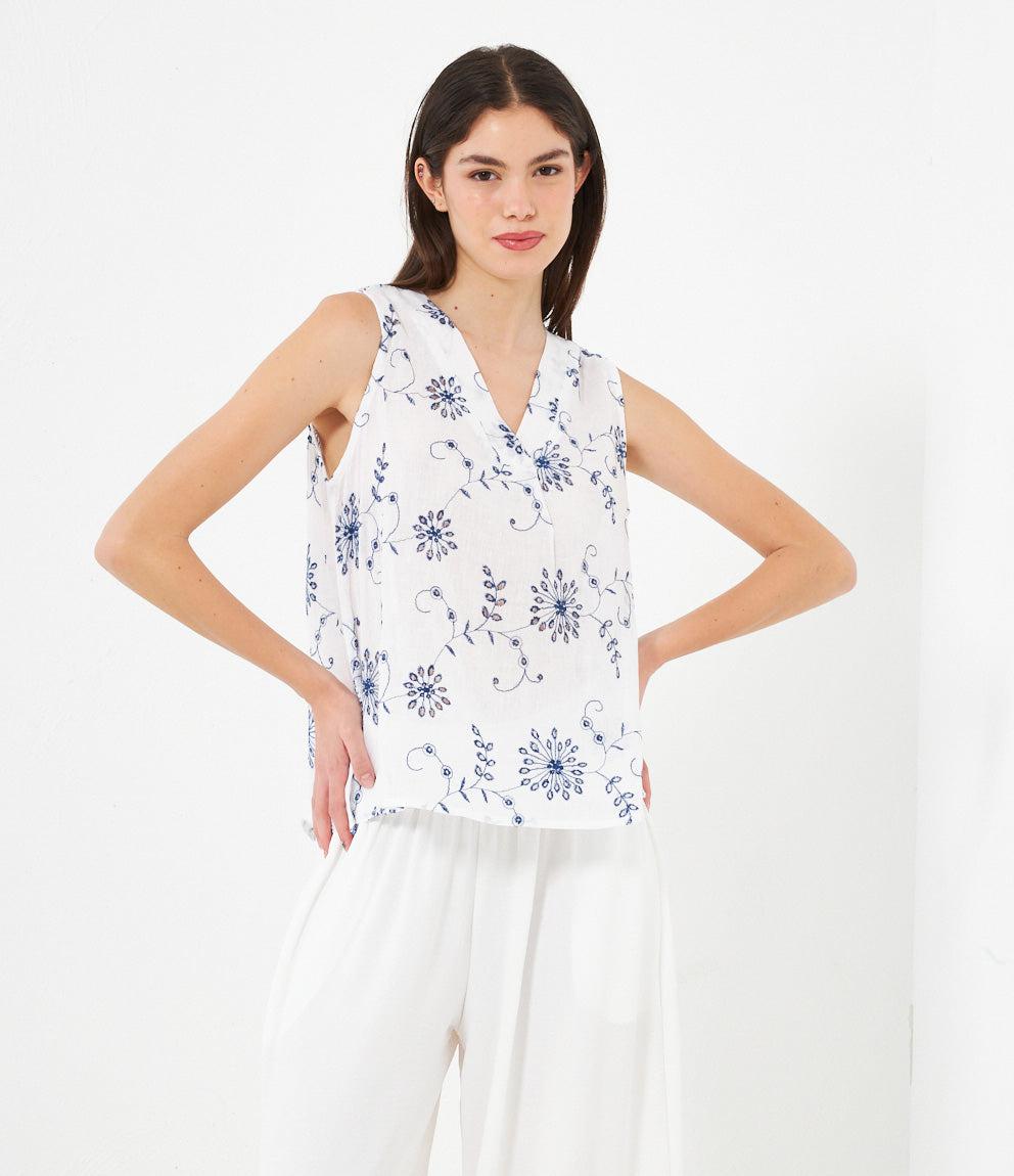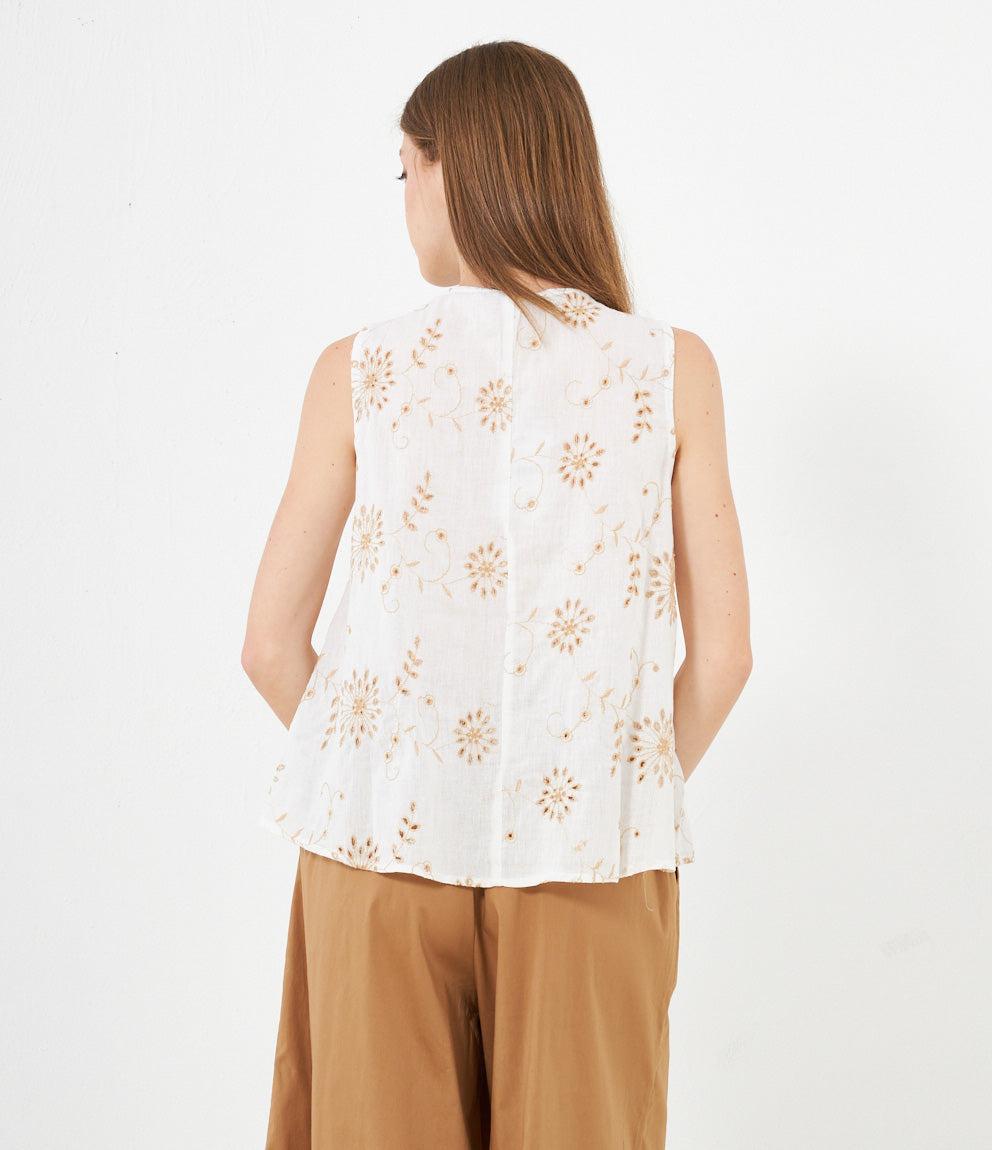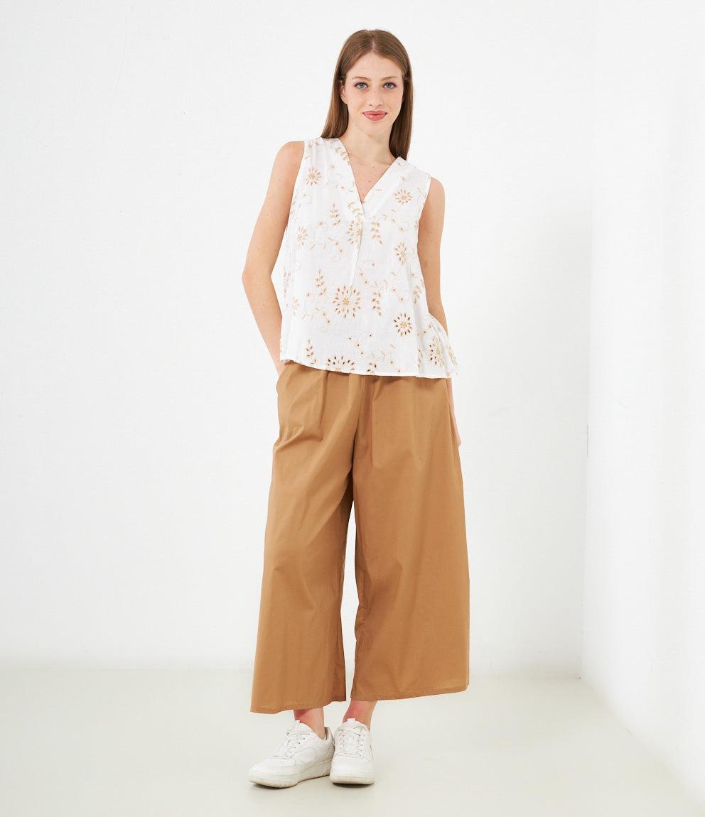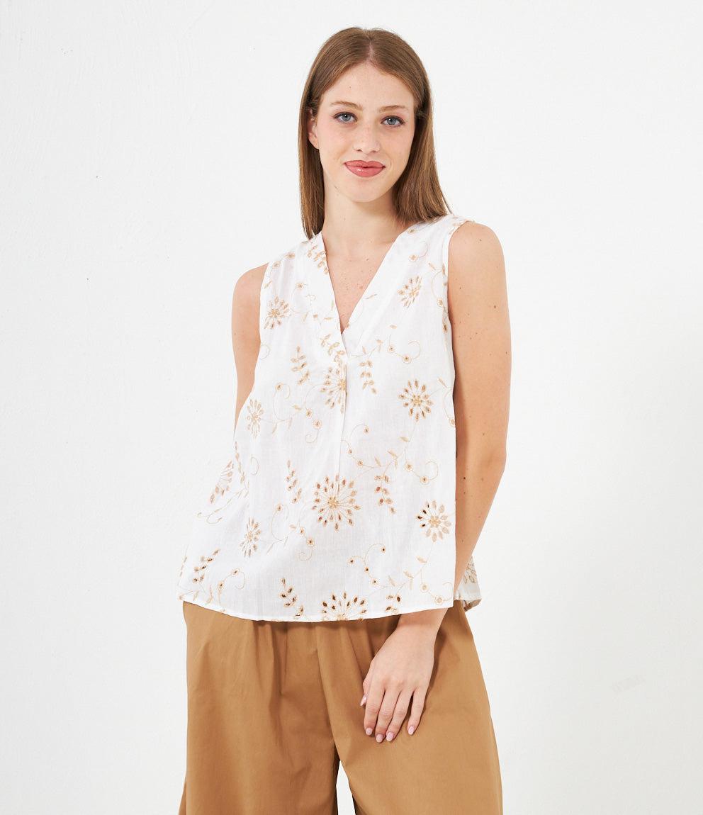 Canotta modello comfy lavorata con scollo a v e giro maniche.