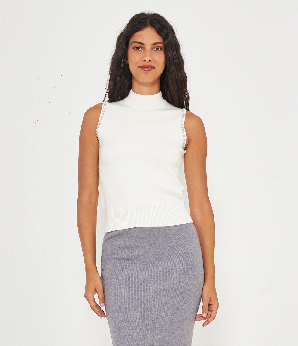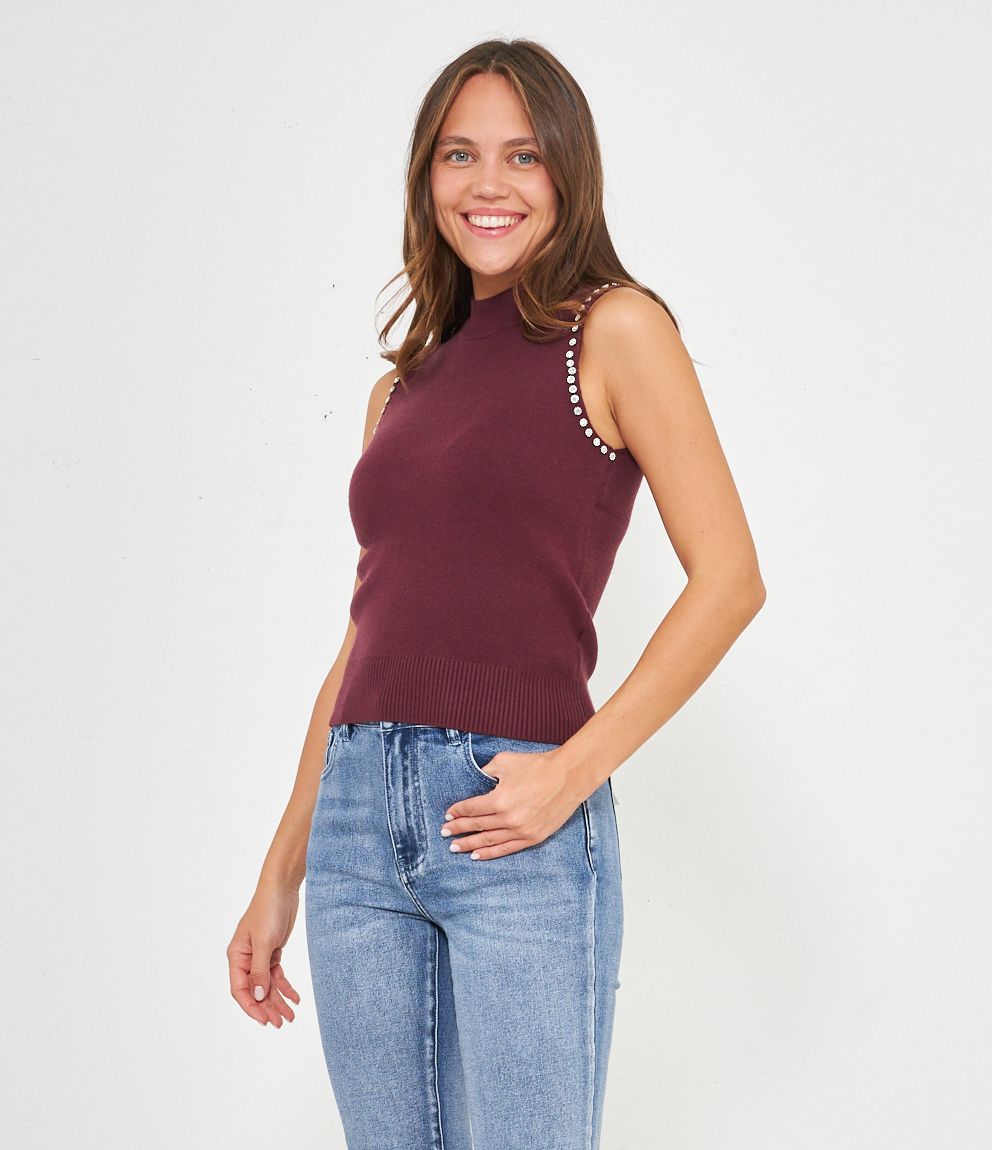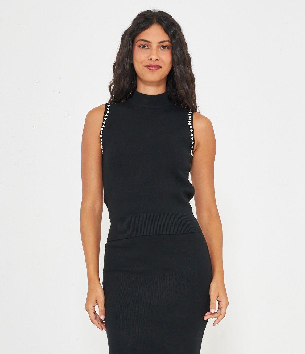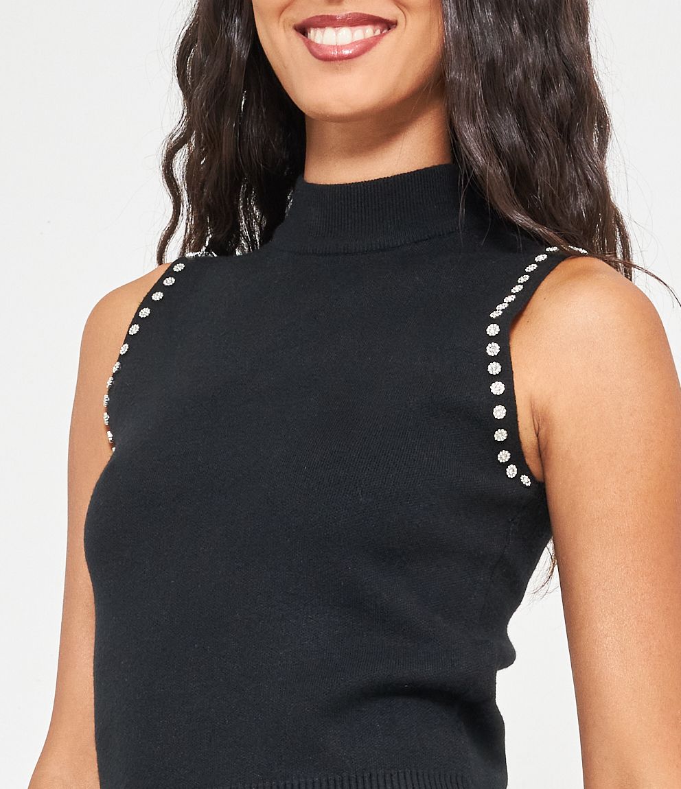 Maglia regular fit a mezzo collo e giro maniche con strass.