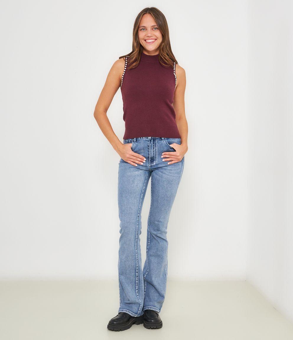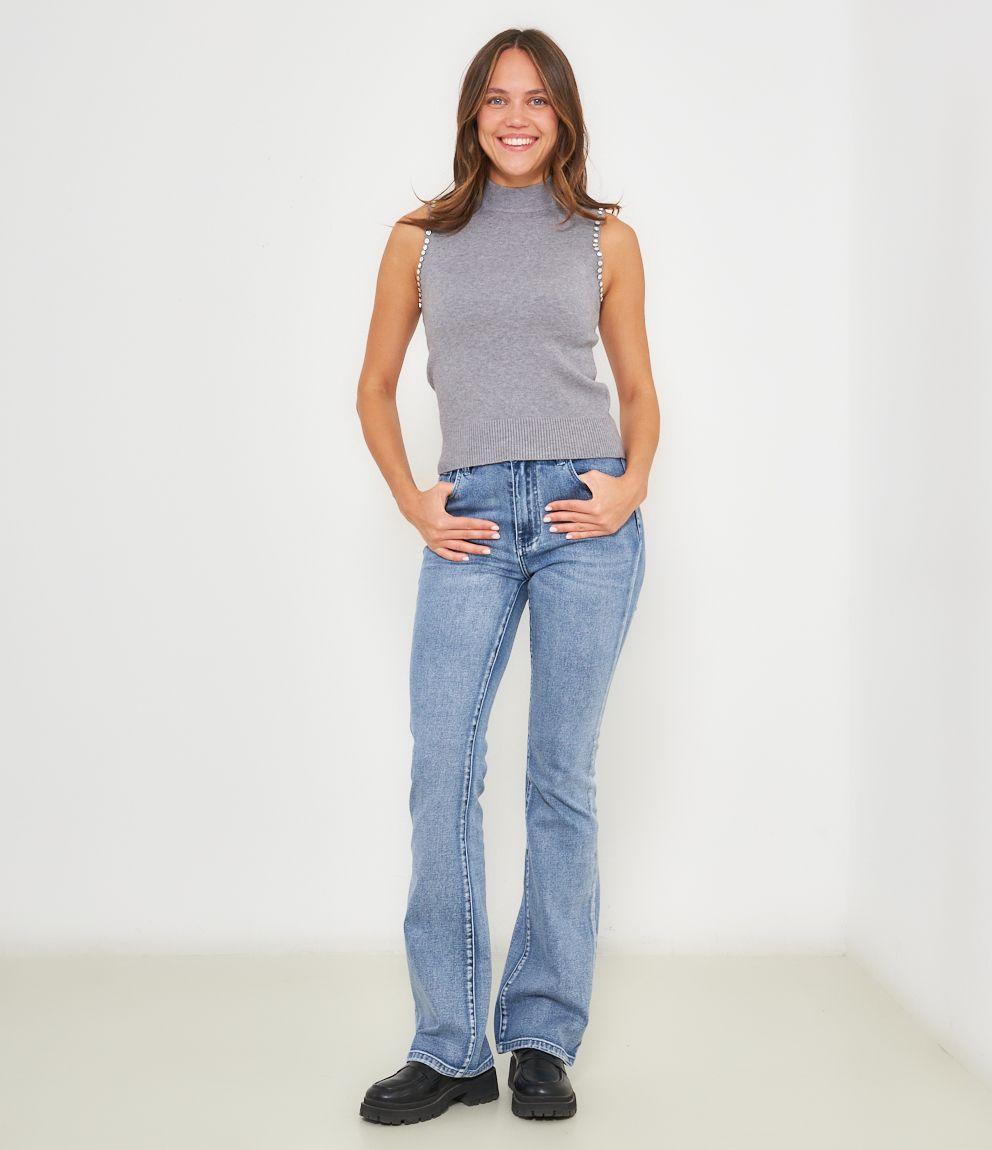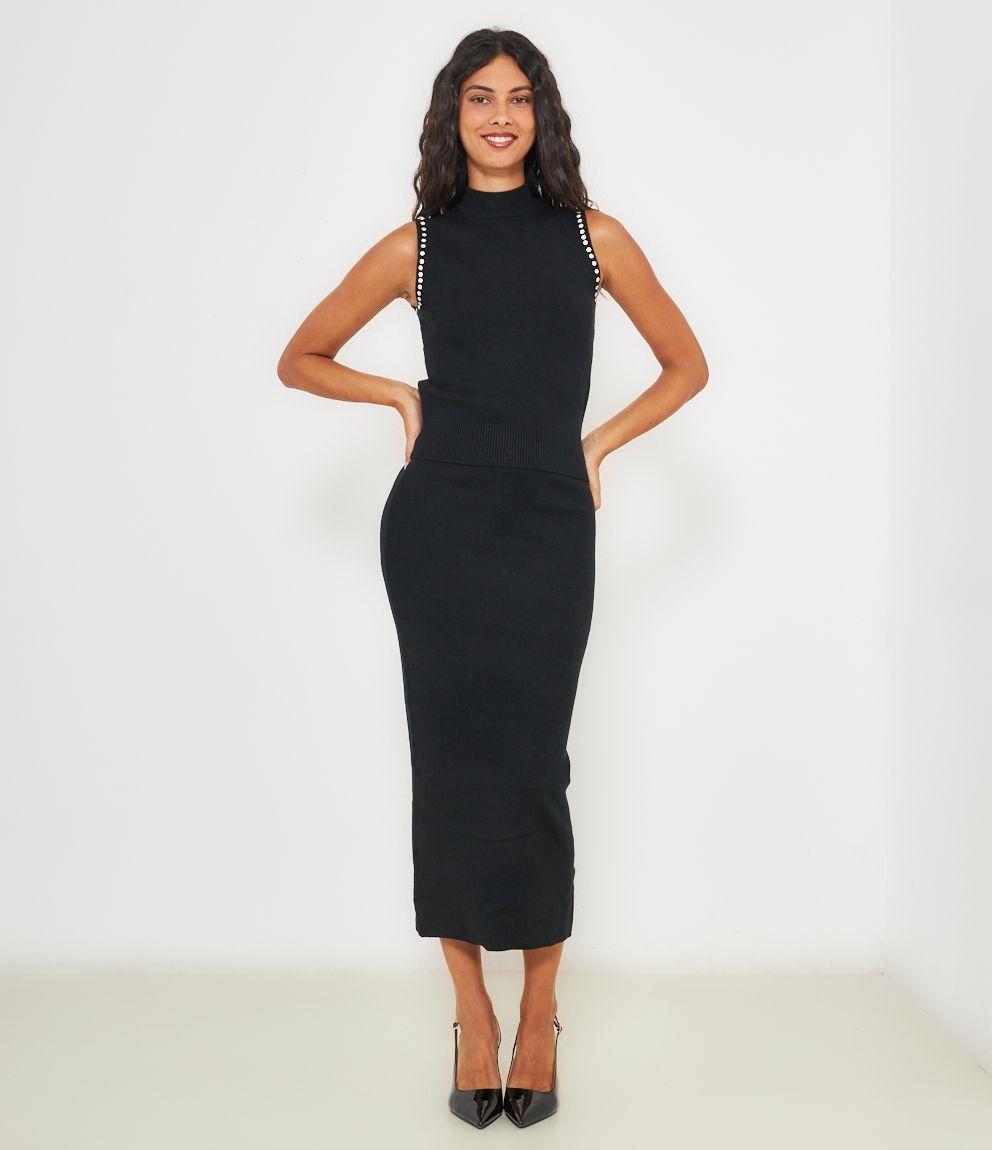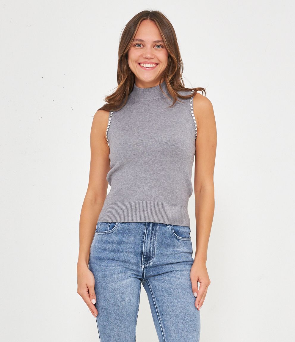 Maglia regular fit a mezzo collo e giro maniche con strass.